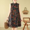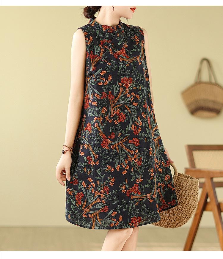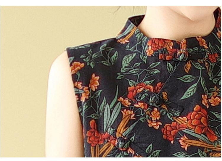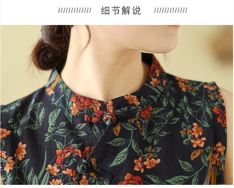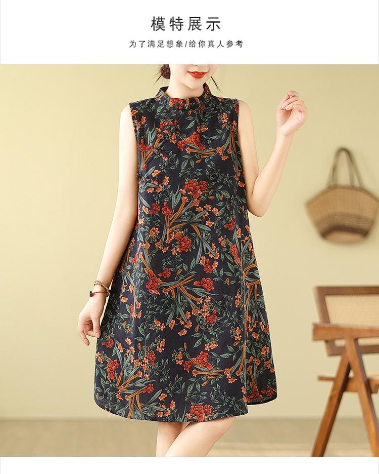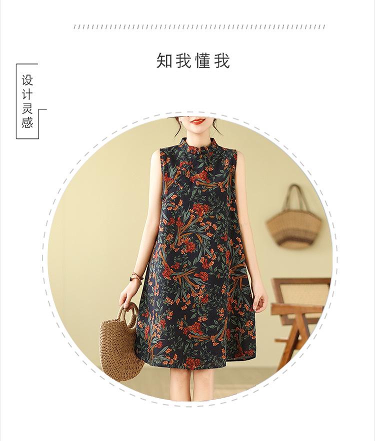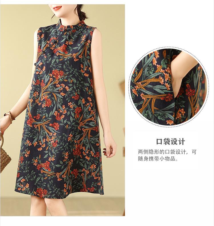 Foto Real de Cheongsam Mejorado de Verano 2025 de Estilo Chino, Vestido Artístico Retro Suelto de Largo Medio para Mujer