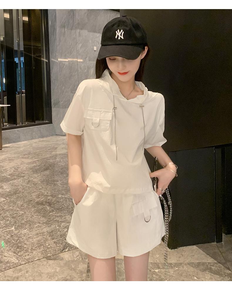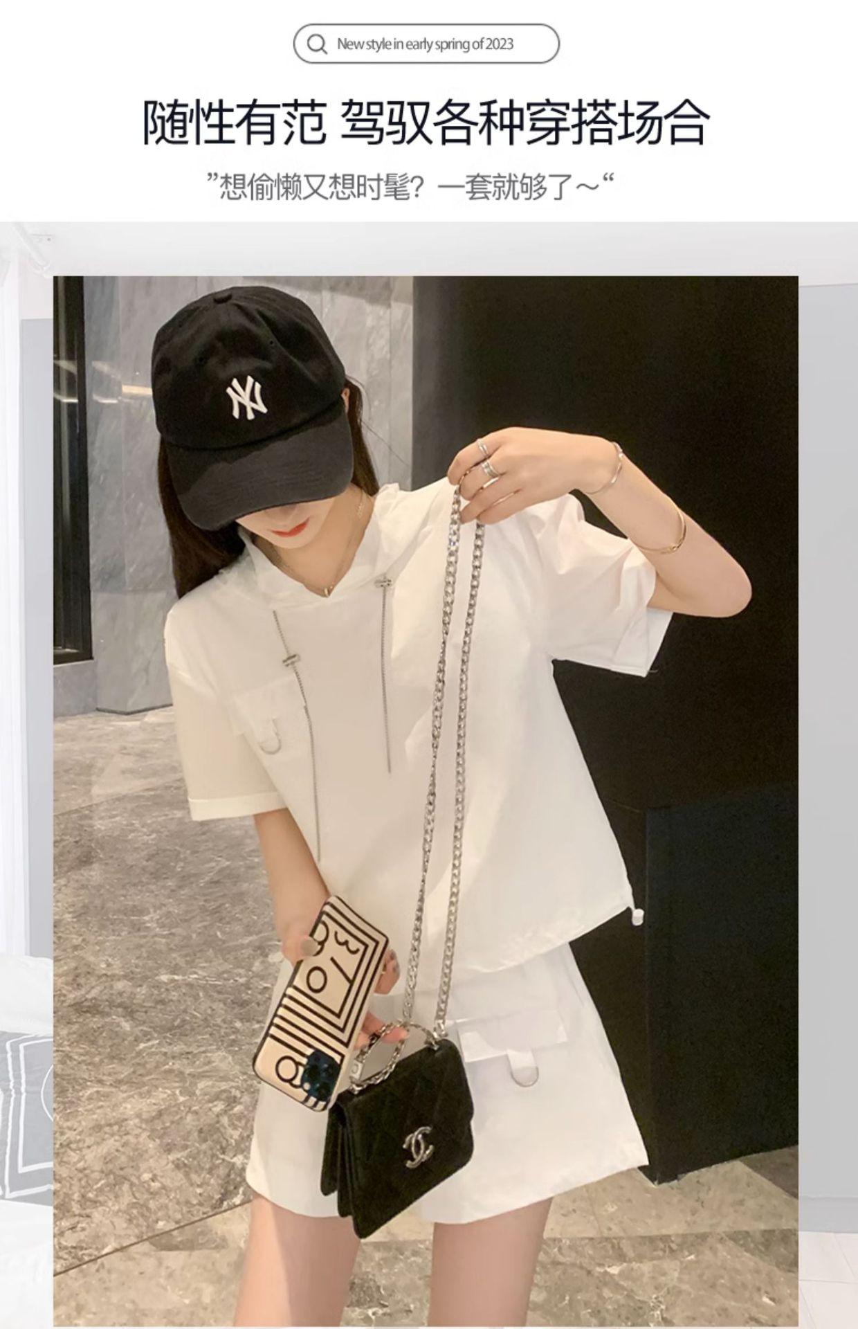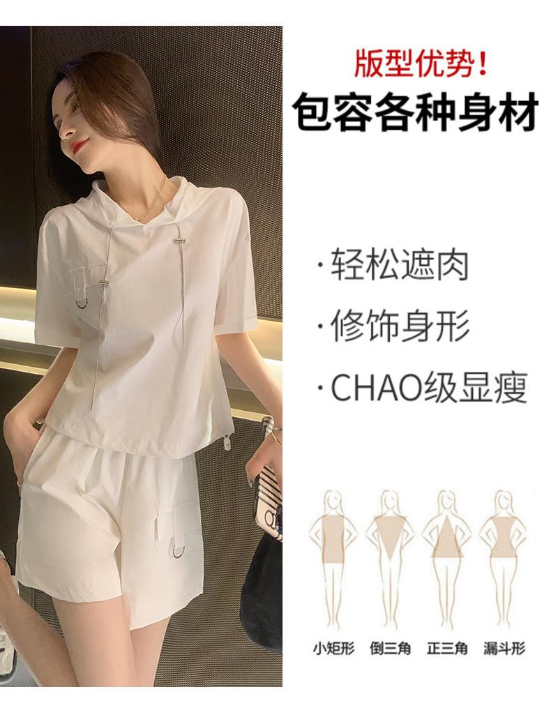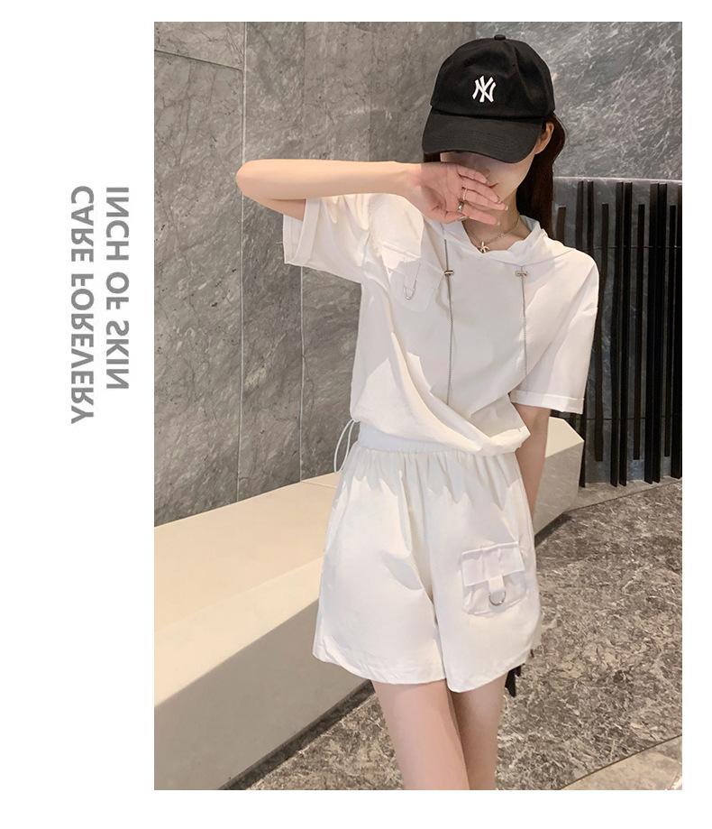 Traje Deportivo Casual para Correr para Mujer Verano Nuevo Celebridad de Internet Adelgazante y Reductor de Edad Moderno Short Blanco Conjunto de Dos Piezas