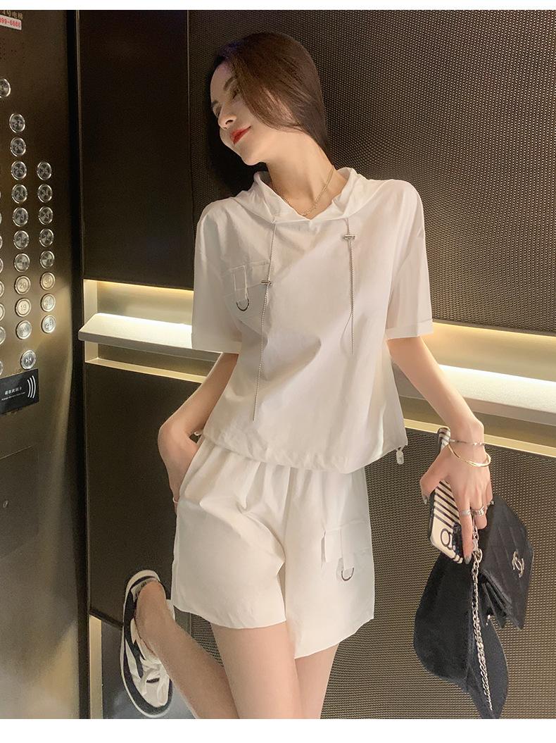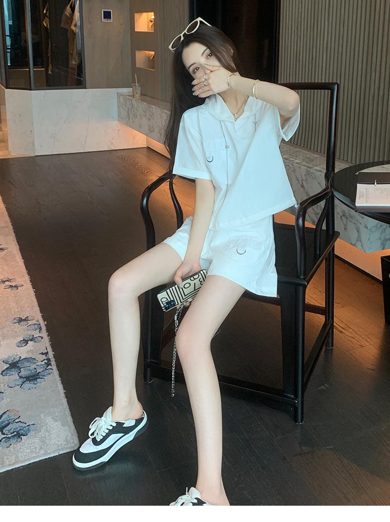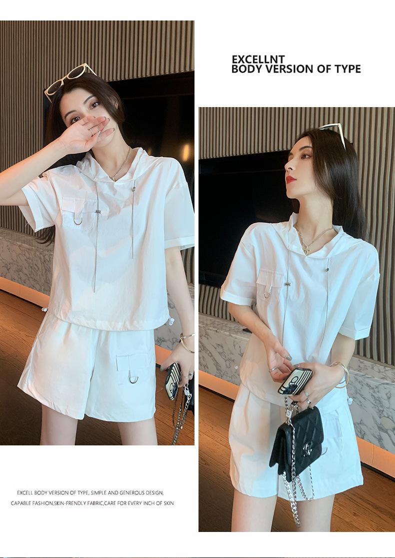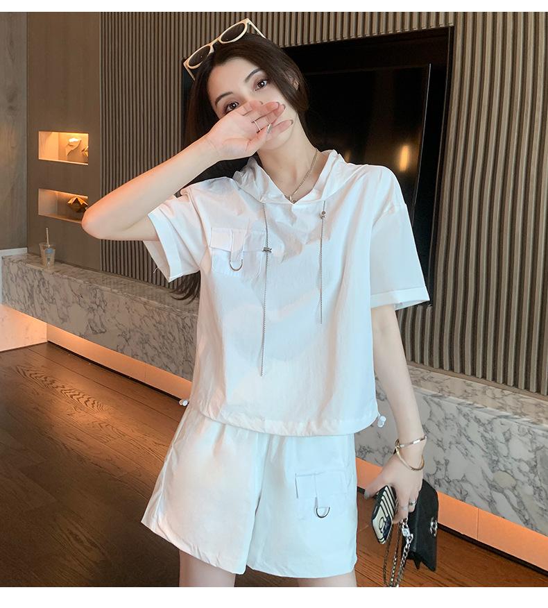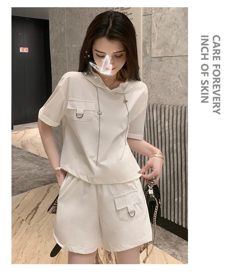 Traje Deportivo Casual para Correr para Mujer Verano Nuevo Celebridad de Internet Adelgazante y Reductor de Edad Moderno Short Blanco Conjunto de Dos Piezas