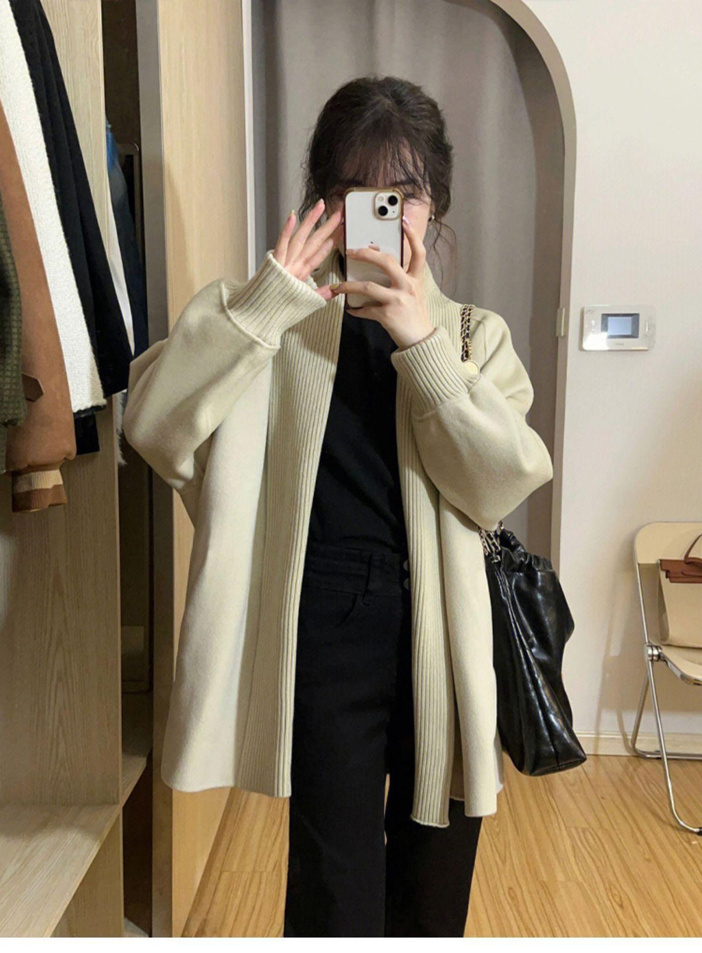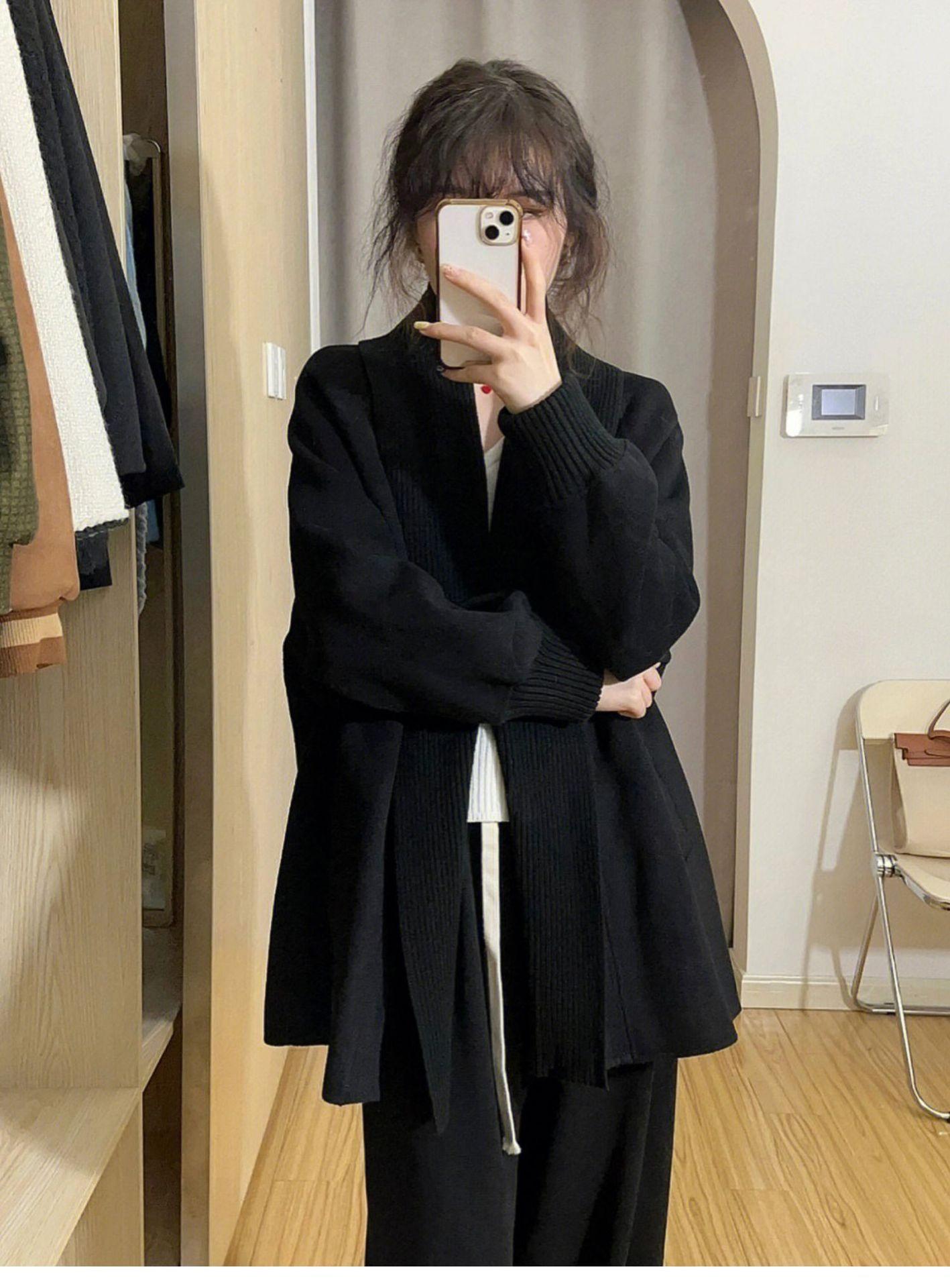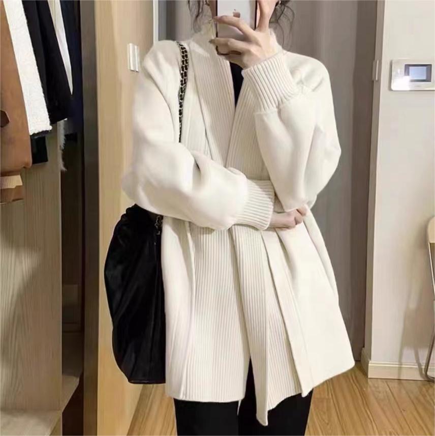 Cárdigan de punto estilo retro coreano para mujer otoño e invierno Nuevo suéter holgado casual de color sólido estilo perezoso de longitud media abrigo de moda