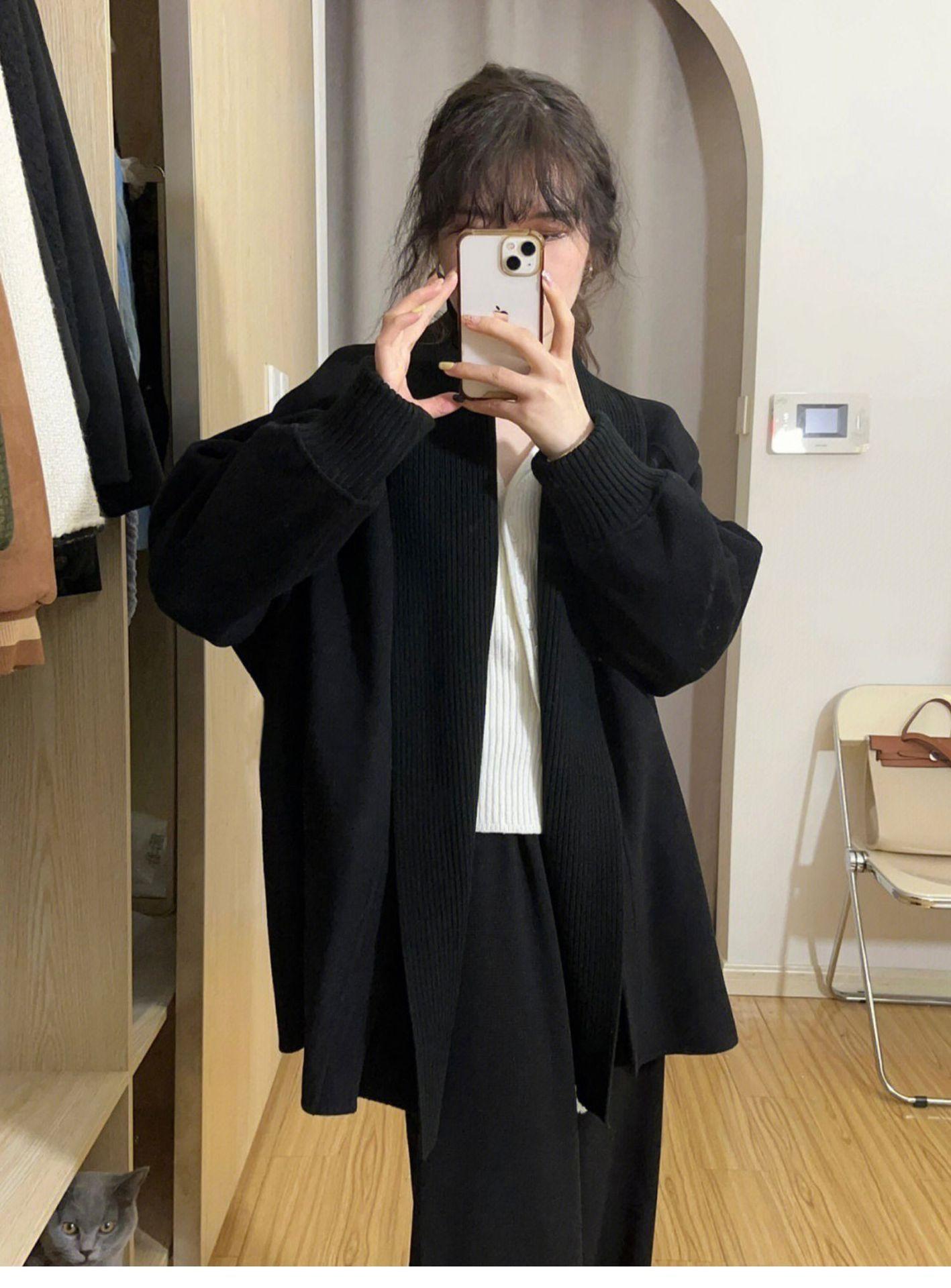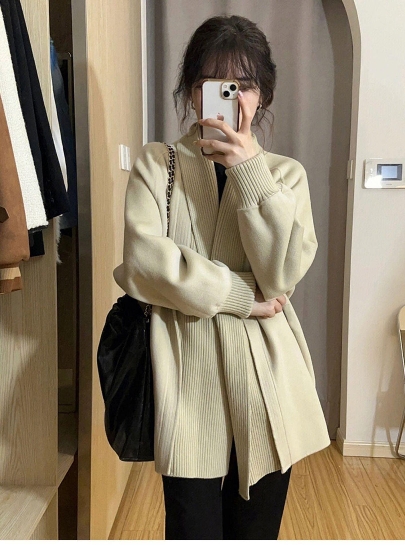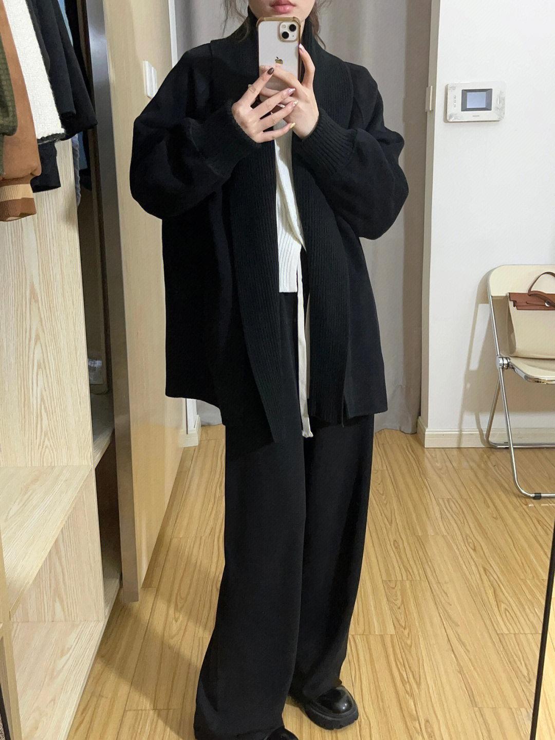 Cárdigan de punto estilo retro coreano para mujer otoño e invierno Nuevo suéter holgado casual de color sólido estilo perezoso de longitud media abrigo de moda
