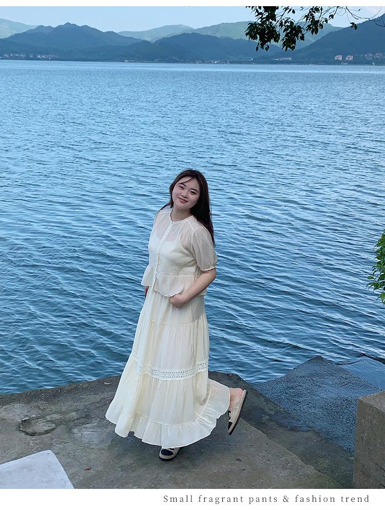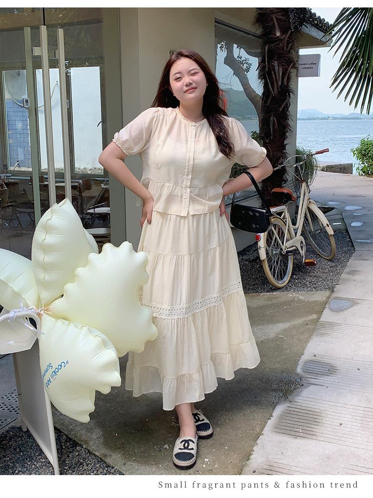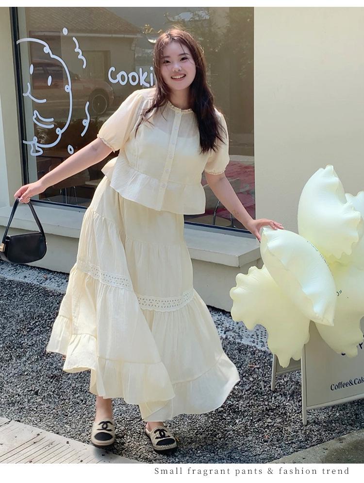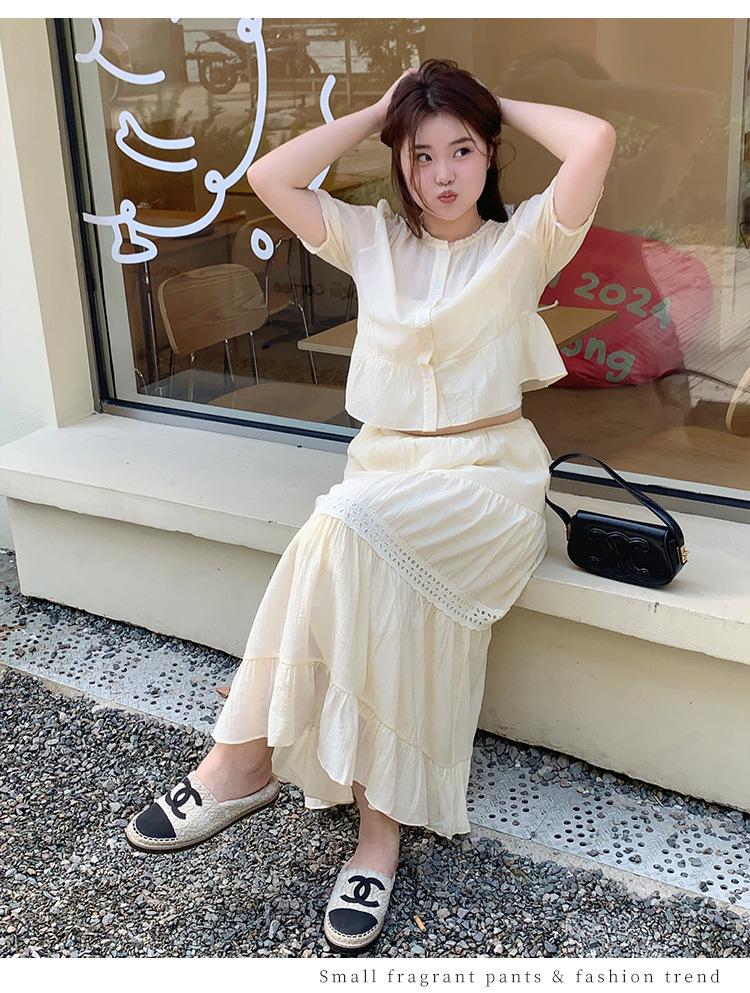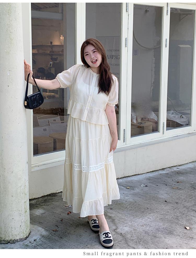 Conjunto de dos piezas de falda acampanada de cintura alta para mujer, elegante y ligero, estilo francés, de talla grande, para verano