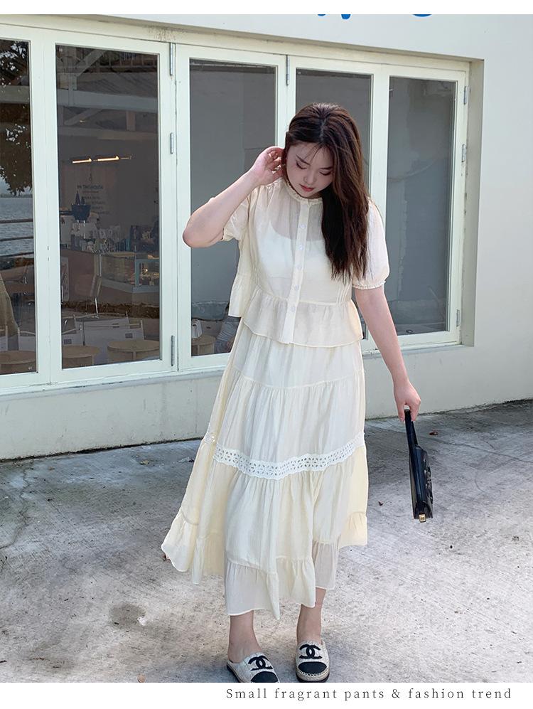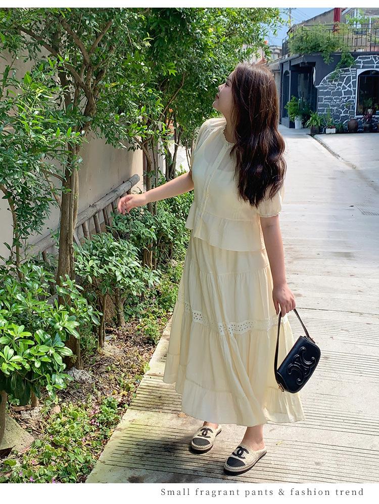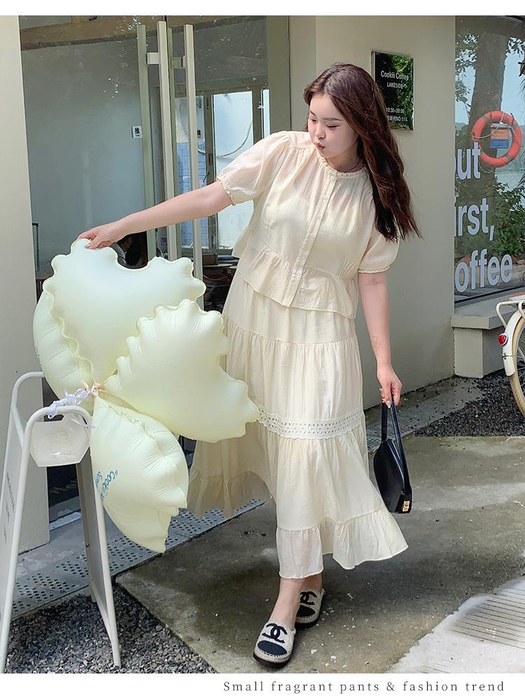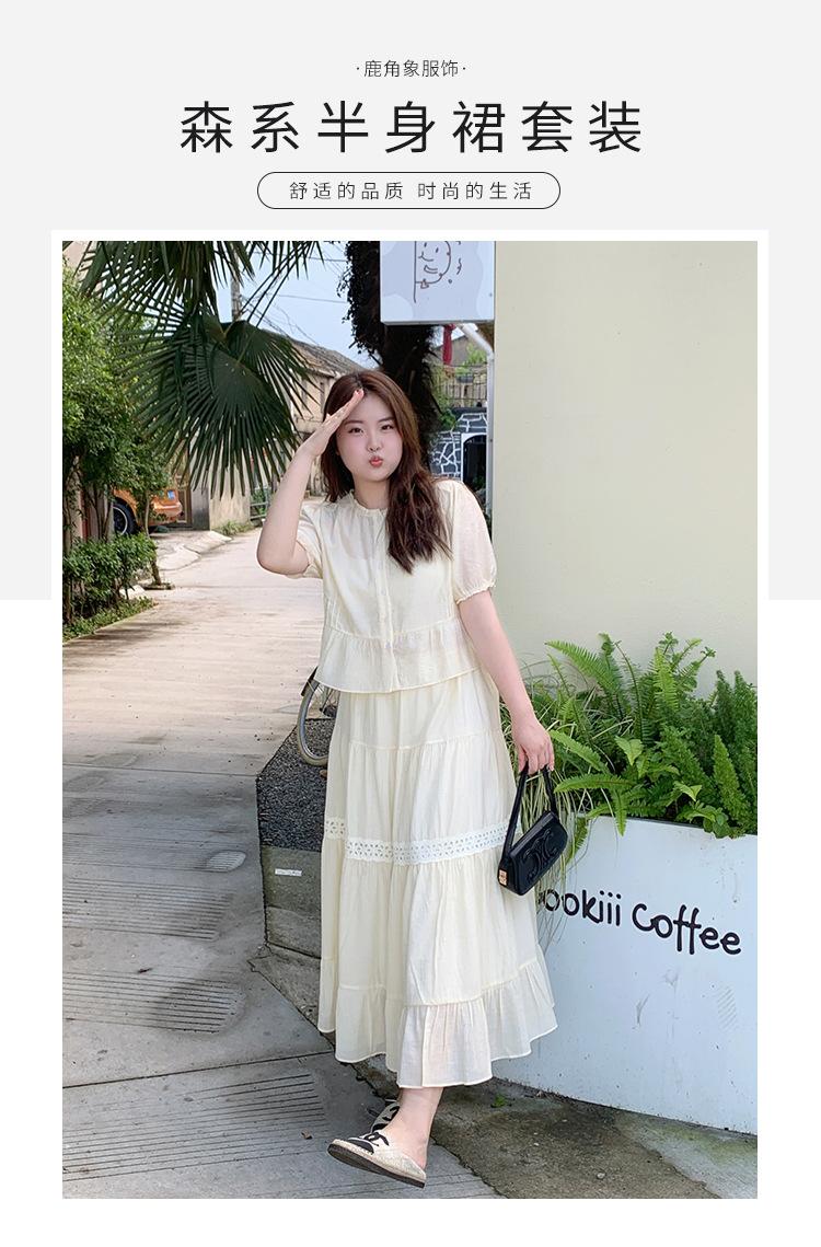 Conjunto de dos piezas de falda acampanada de cintura alta para mujer, elegante y ligero, estilo francés, de talla grande, para verano