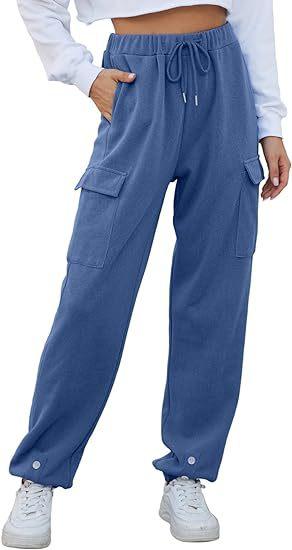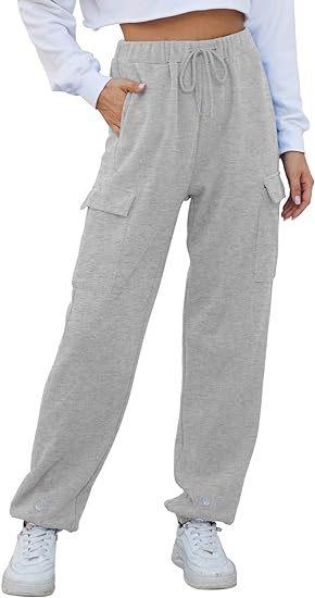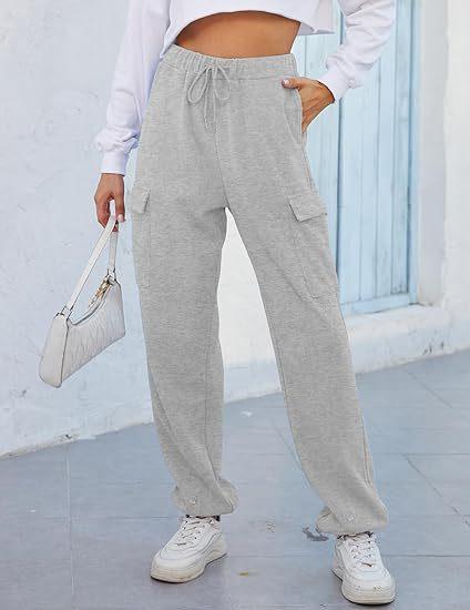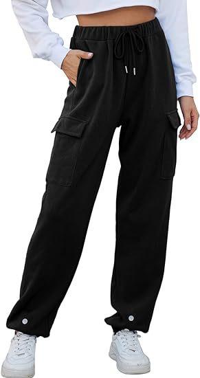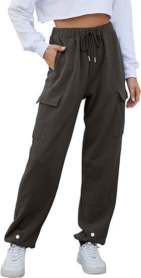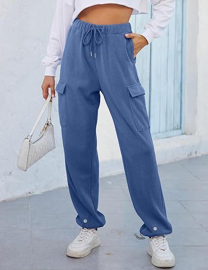 Amazon Transfronterizo Europeo y Americano Otoño Nuevo Pantalón de Sudor para Mujer Holgado para Casa Jogging Botón Bolsillo Simple Versátil