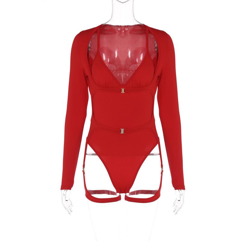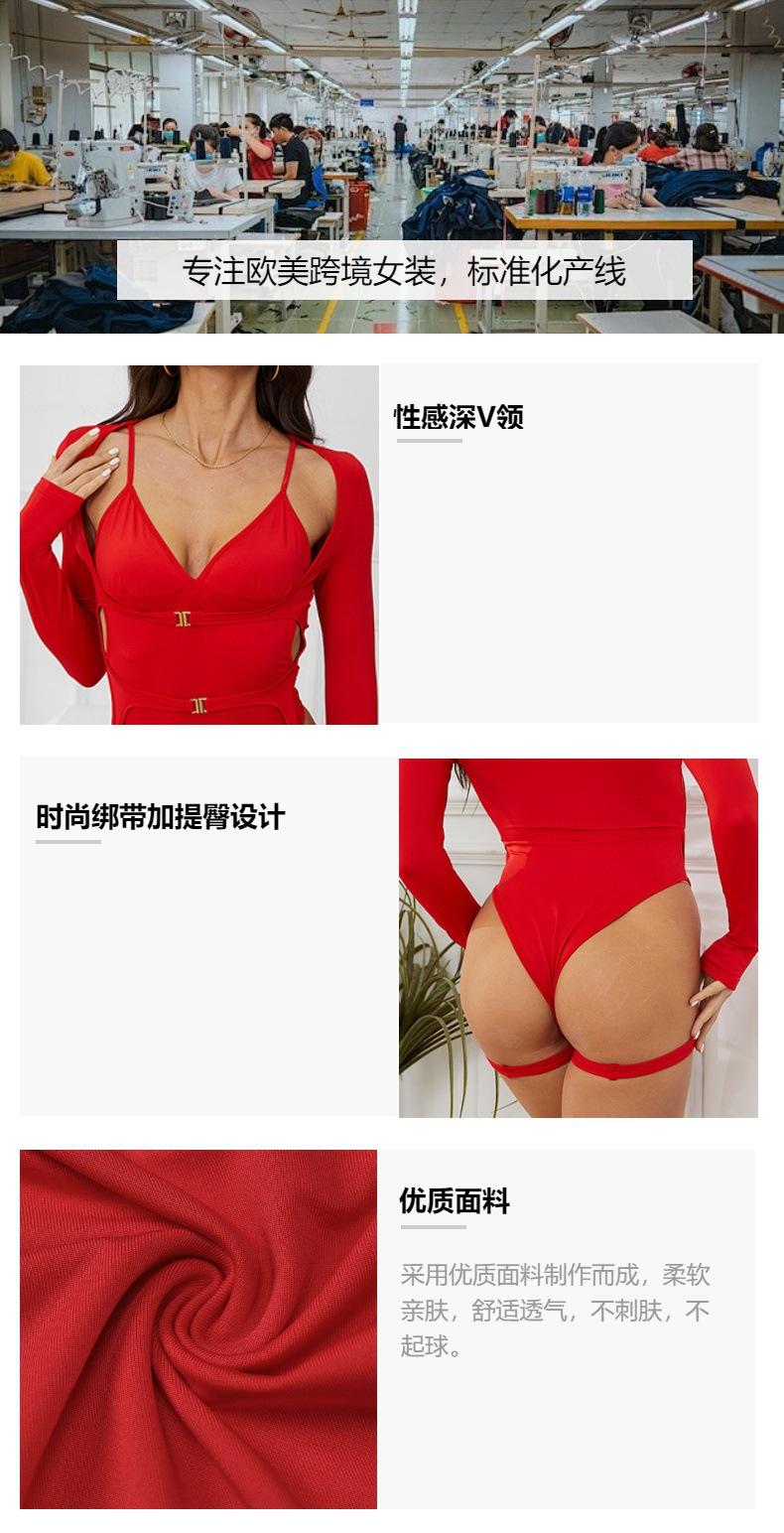 Ropa de Mujer de Exportación Europea y Americana 2024 Verano Nuevo Color Puro Manga Larga Cuello en V Estilo Club Nocturno Sexy Jumpsuit Cut Out al por Mayor