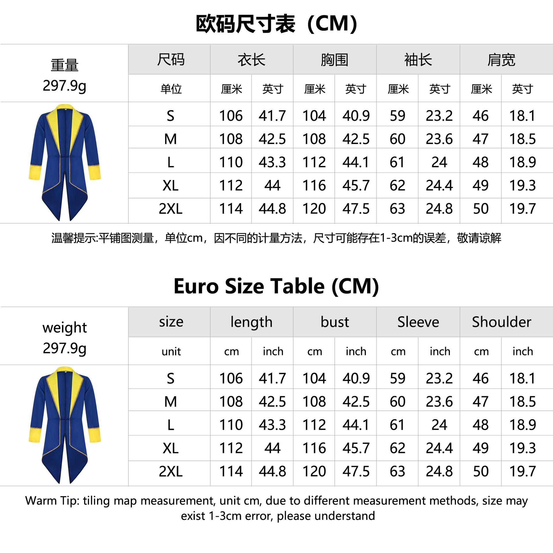 Man Tian Yu Halloween Esmoquin Europeo y Americano Disfraz Retro Medieval Abrigo Punk de Media Longitud para Hombre Disfraz de Fiesta