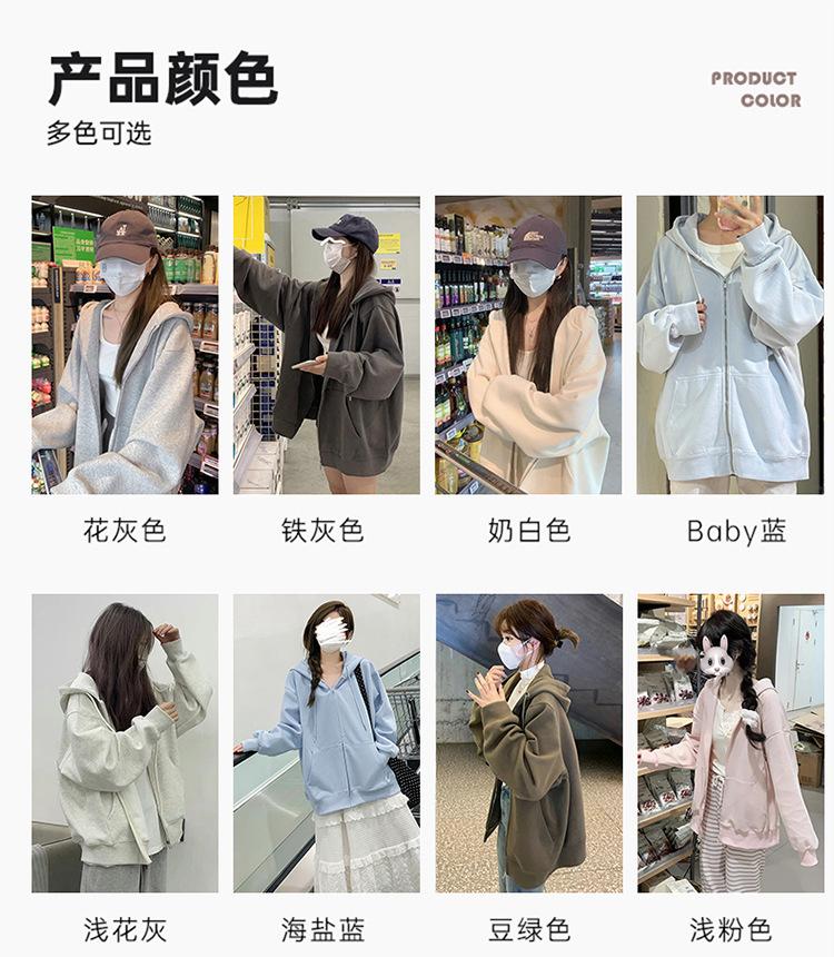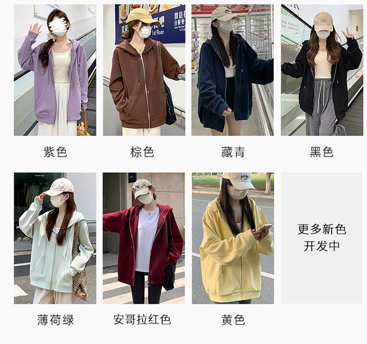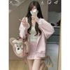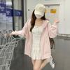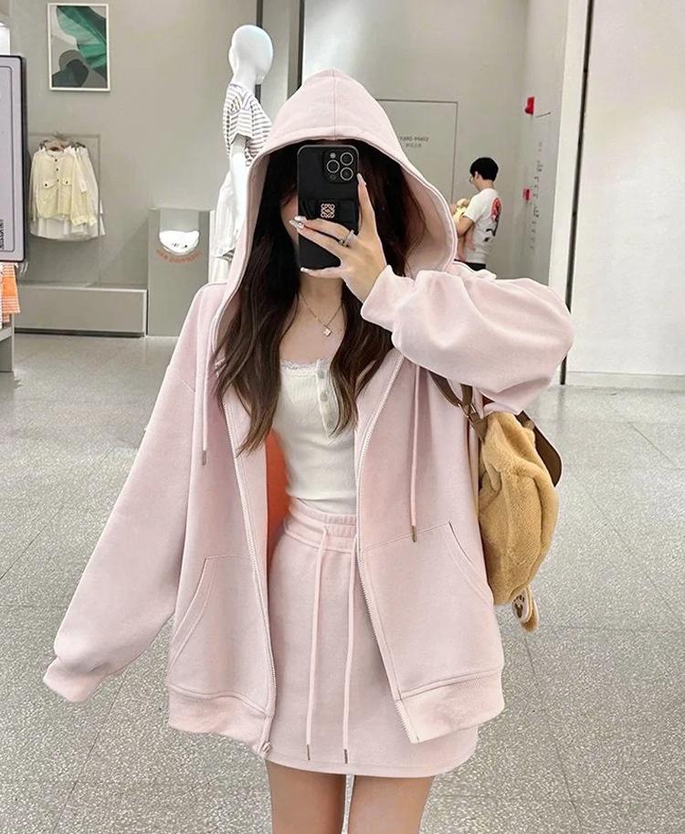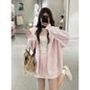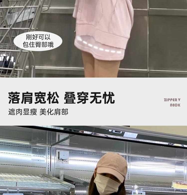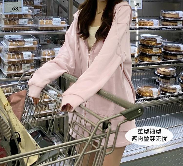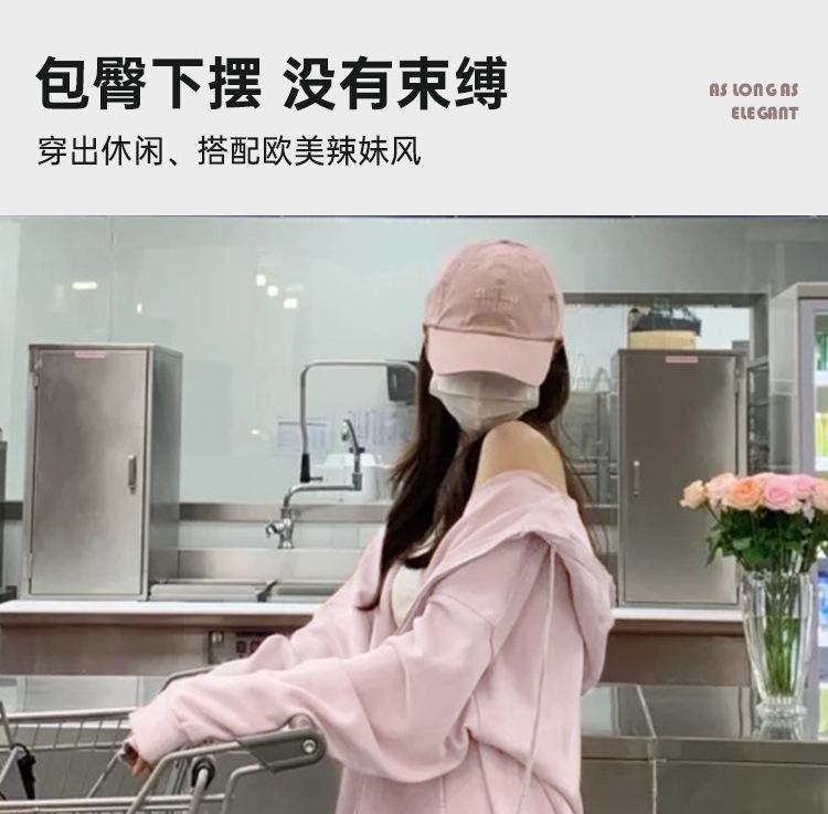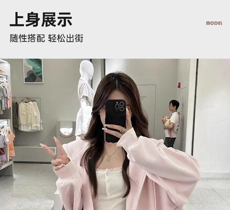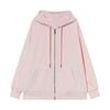 Top Rosa Claro Primavera y Otoño Hombro Plano con Capucha para Mujer Cierre Cremallera Suelto Cárdigan Versátil 2025 Nueva Sudadera