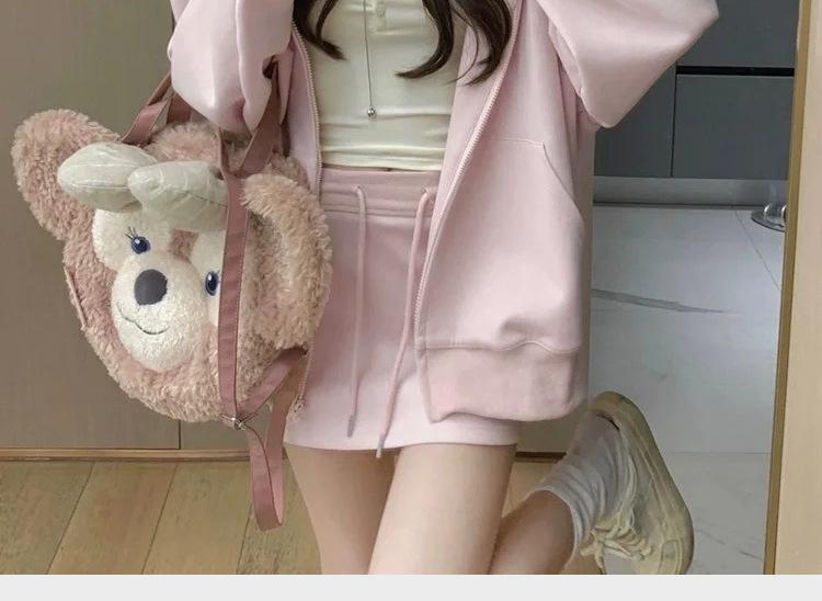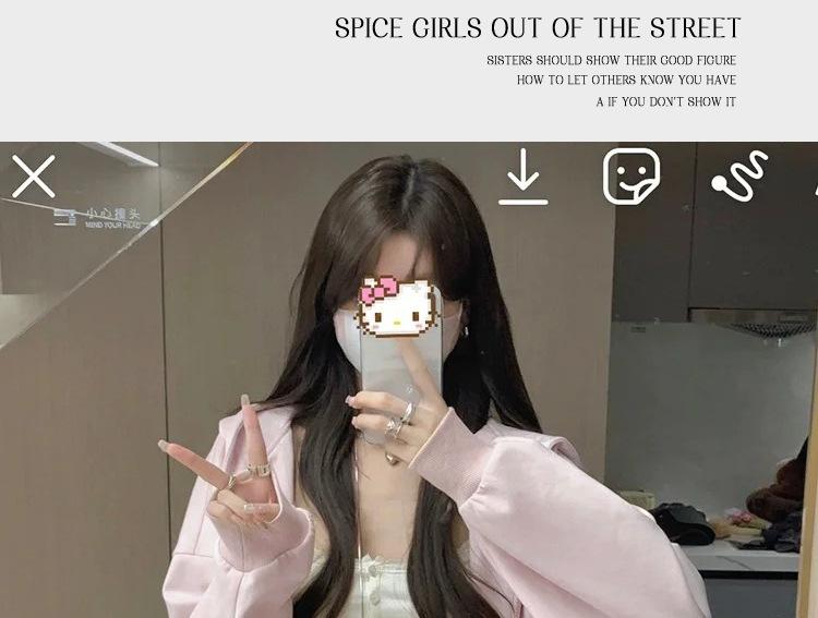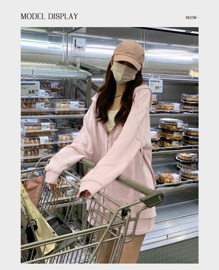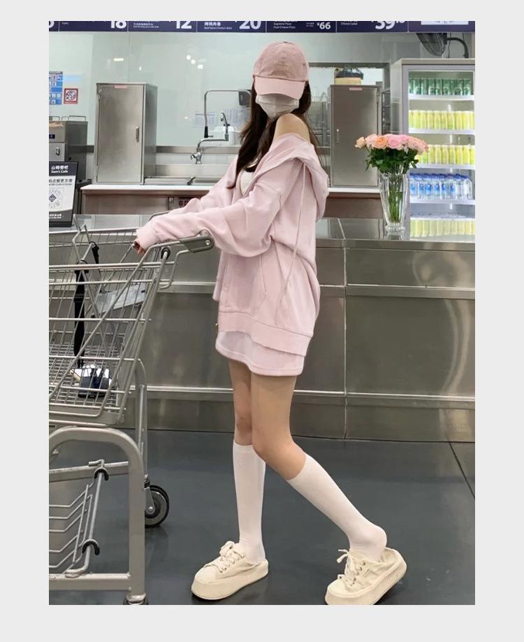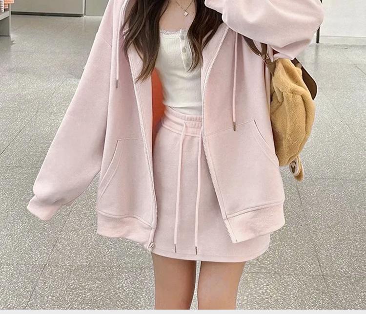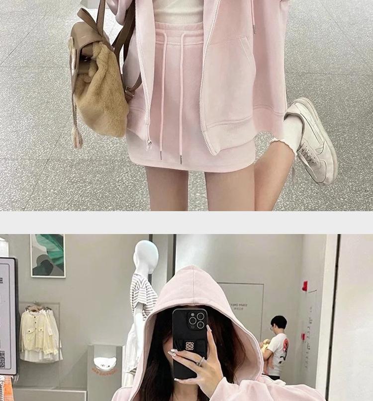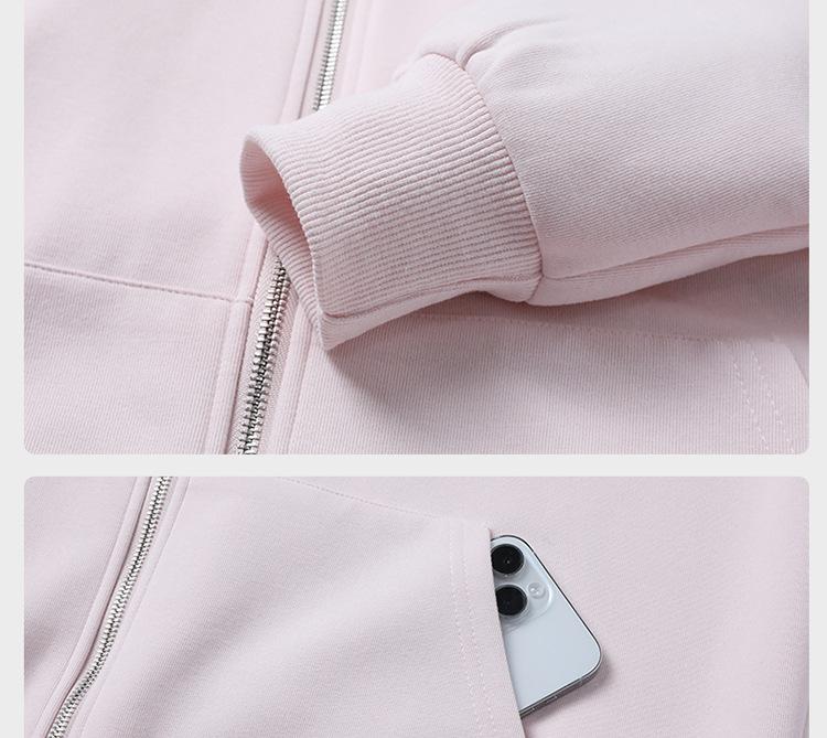 Top Rosa Claro Primavera y Otoño Hombro Plano con Capucha para Mujer Cierre Cremallera Suelto Cárdigan Versátil 2025 Nueva Sudadera
