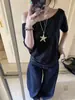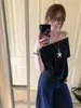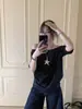 Camiseta de manga corta gris con hombros descubiertos de Niche Design para mujer, estilo informal, holgado y elegante, de verano, color negro