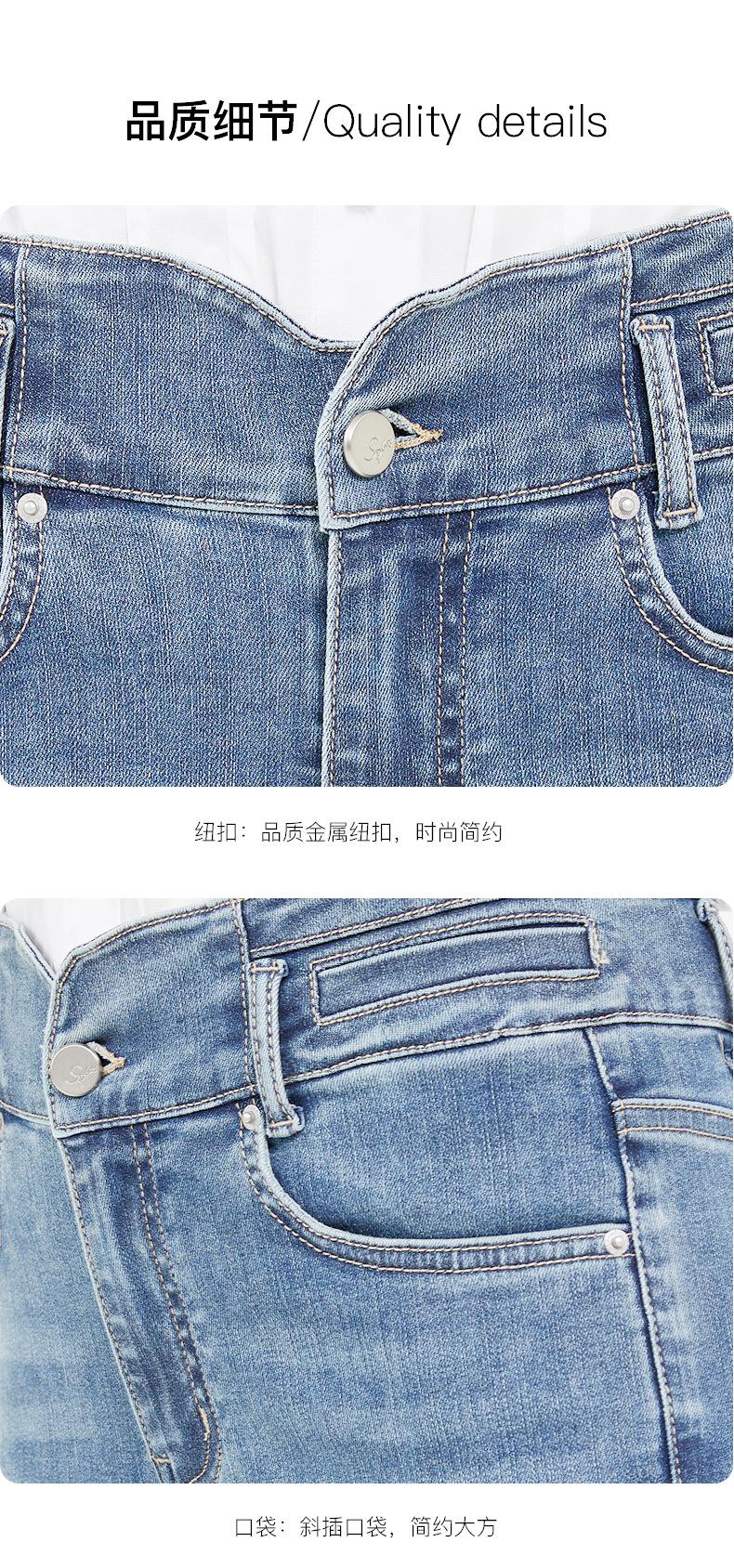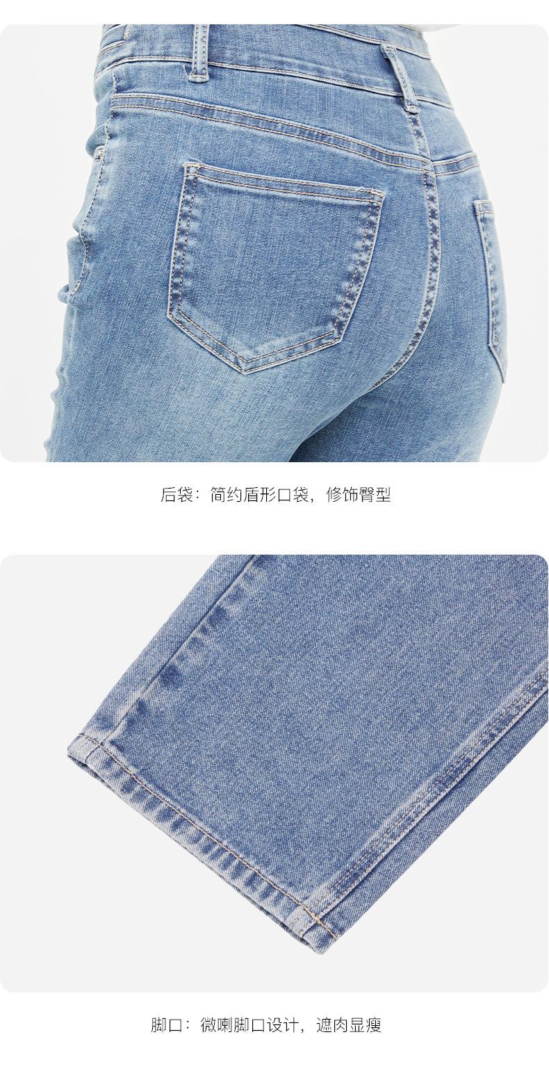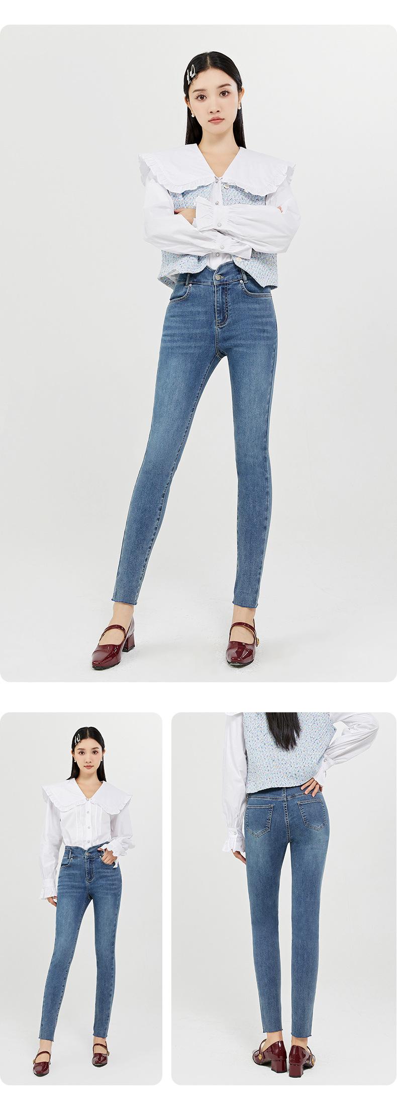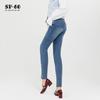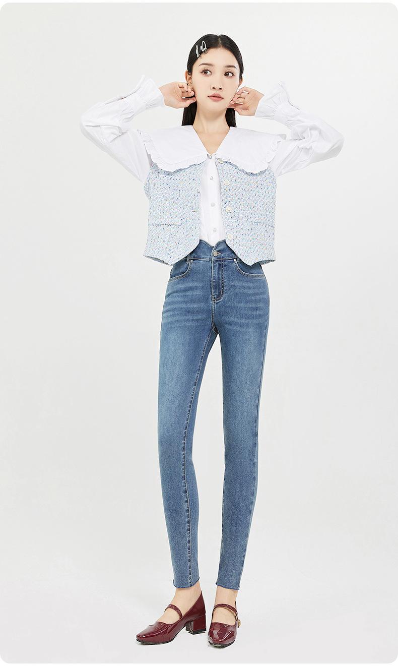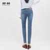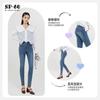 SP68 Otoño Nuevos Vaqueros Ajustados con Estampado de Garra de Gato Elástico Azul Claro de Un Botón K-NZ392