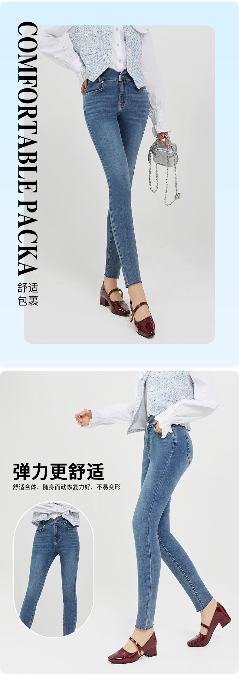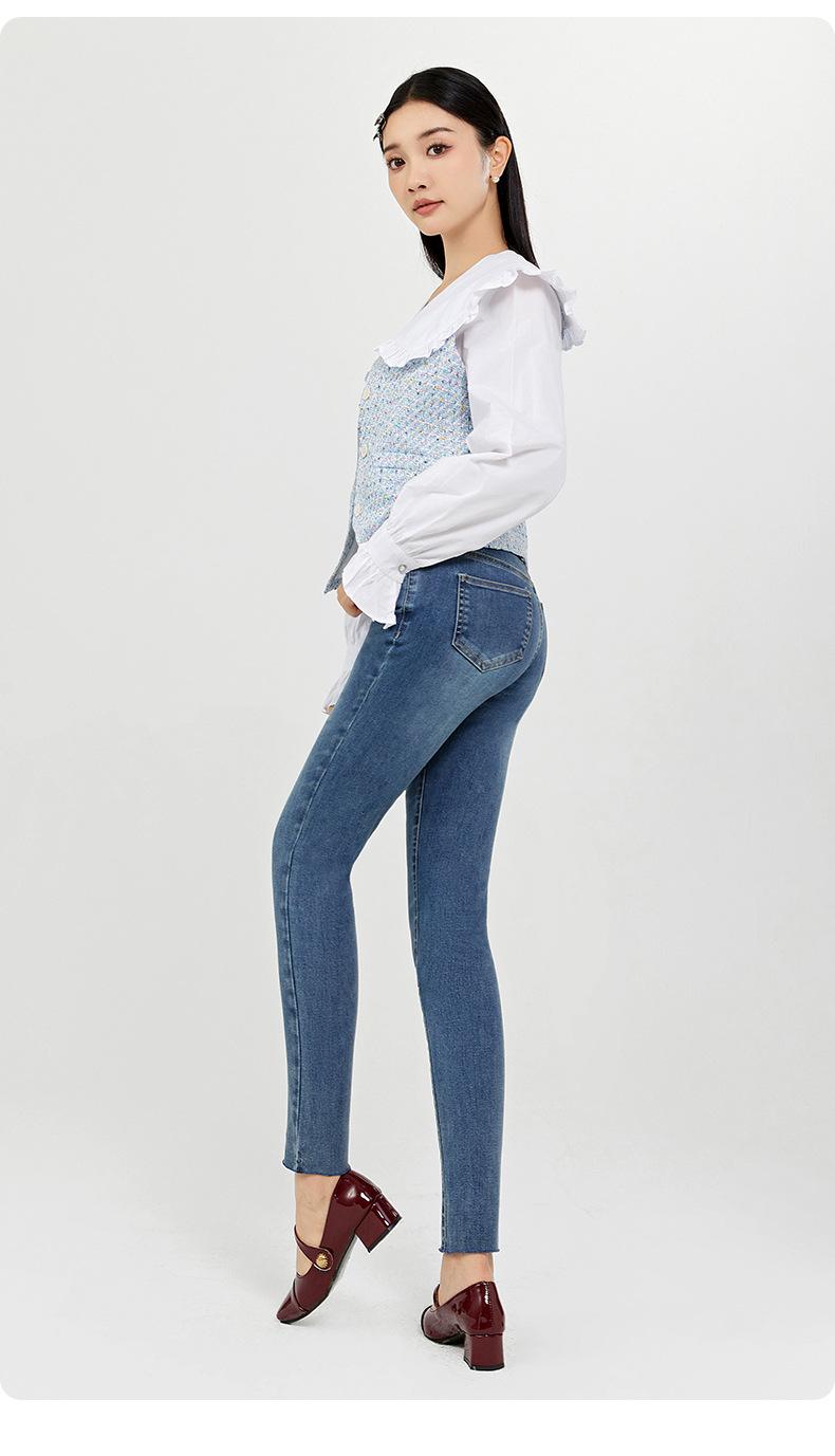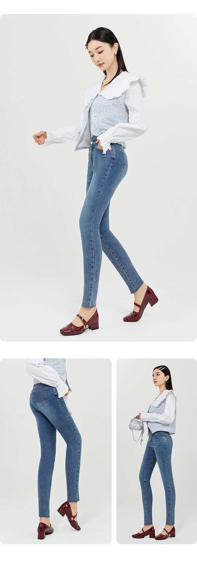 SP68 Otoño Nuevos Vaqueros Ajustados con Estampado de Garra de Gato Elástico Azul Claro de Un Botón K-NZ392