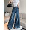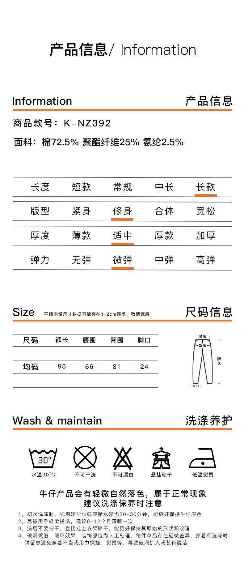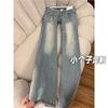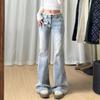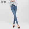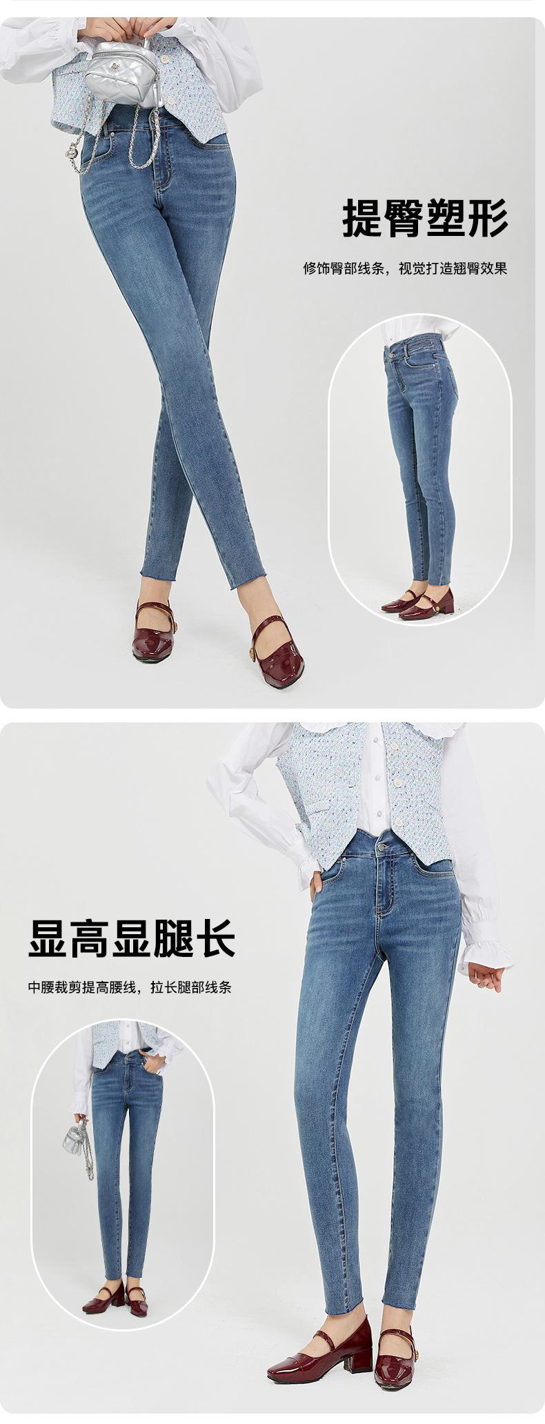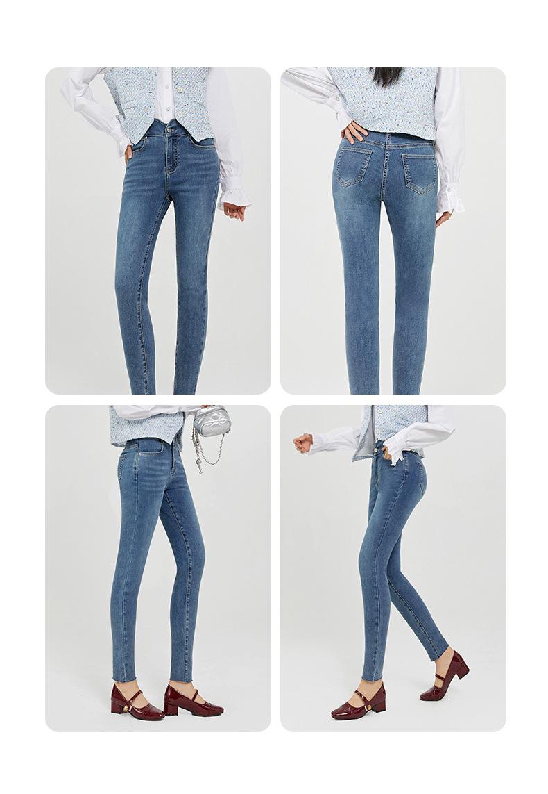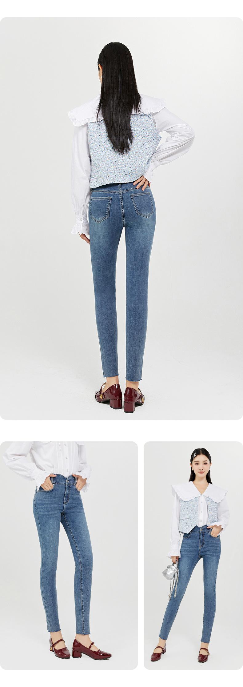 SP68 Otoño Nuevos Vaqueros Ajustados con Estampado de Garra de Gato Elástico Azul Claro de Un Botón K-NZ392