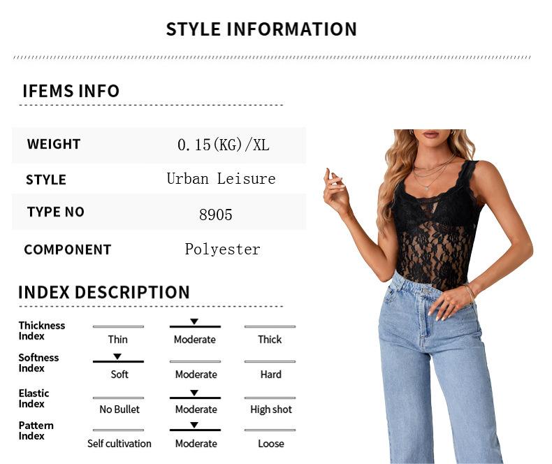 Comercio Exterior Europeo y Americano para Mujer 2024 Encaje Floral Festoneado Tirantes Finos Sin Mangas Transparente Chaleco Top Sling