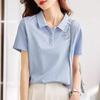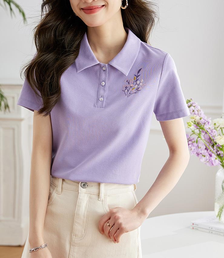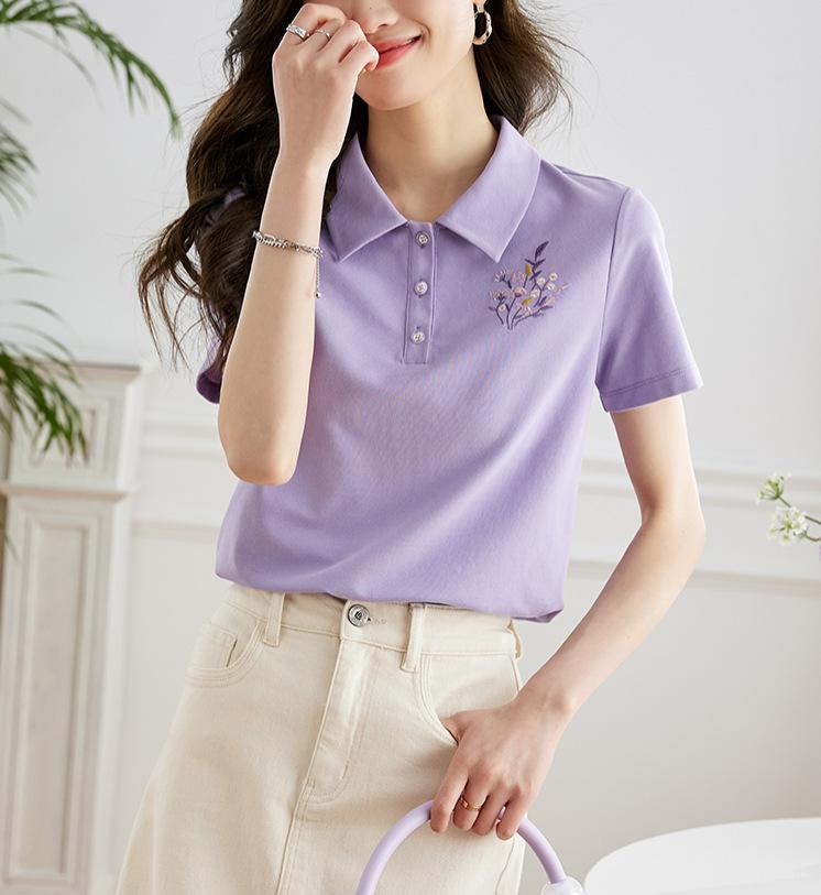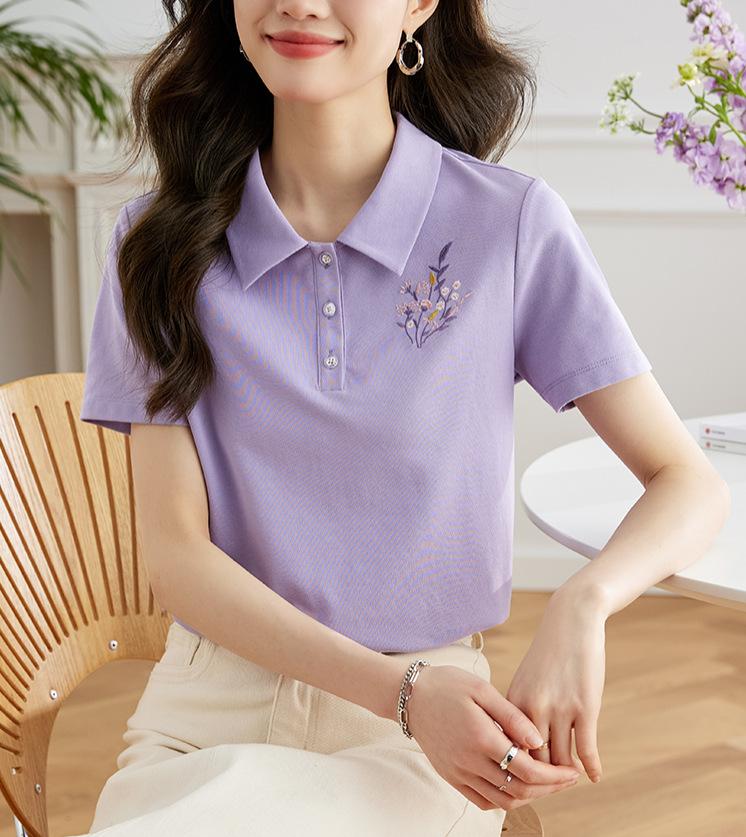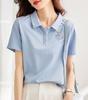 Camiseta de Solapa de Comercio Exterior para Mujer Manga Corta Primavera/Verano 2023 Nuevo Bordado Reductor de Edad Camisa POLO para Ir al Trabajo Casual Top Adelgazante