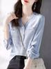 Camisa de gasa con cuello en V estilo francés Chanel, manga larga, para mujer, otoño, nueva, suelta, informal, adelgazante, top de temperamento de nicho