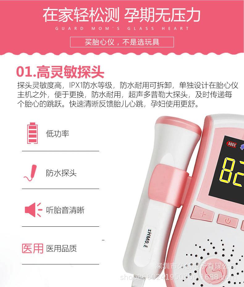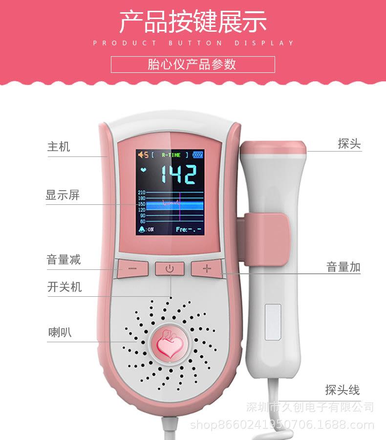 Medidor de Frecuencia Cardíaca Fetal Transfronterizo Doppler Casero Ultrasonido Mujeres Embarazadas Portátil Estetoscopio de Movimiento Fetal Monitor de Frecuencia Cardíaca Fetal Médico