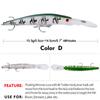 4. Fabricado en plástico ABS, es resistente a caídas y golpes. Las bolas de acero que lo componen han sido probadas con instrumentos de precisión para garantizar la postura de natación de cada señuelo.