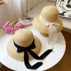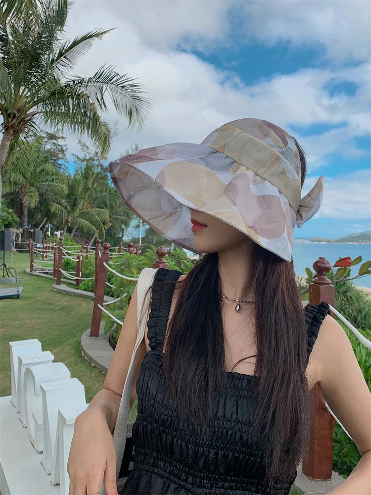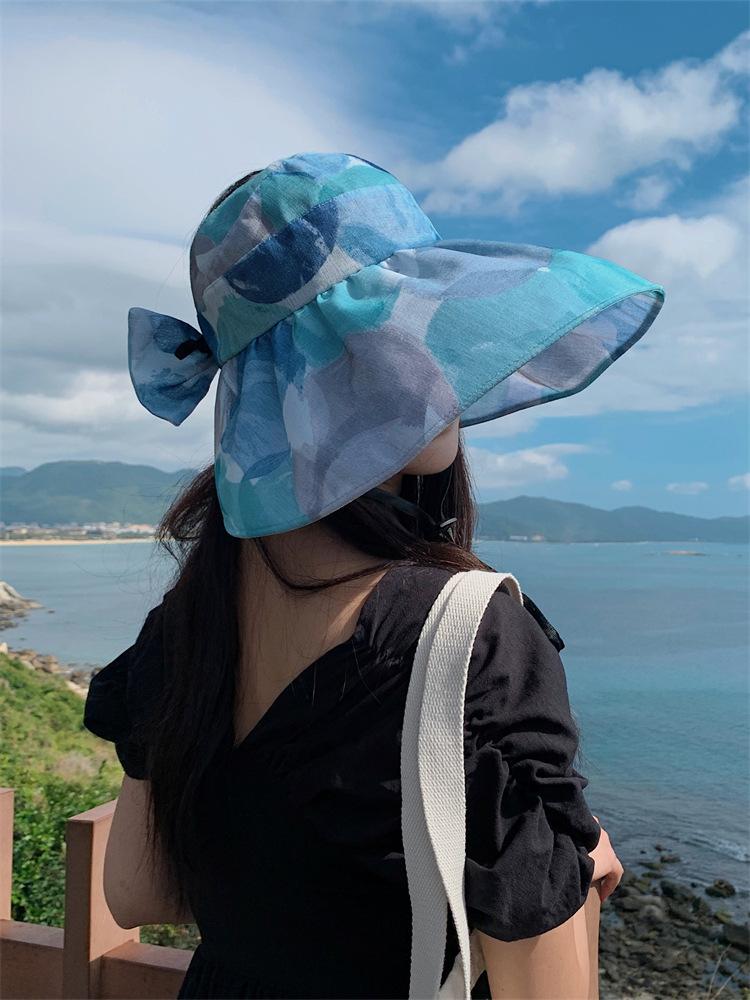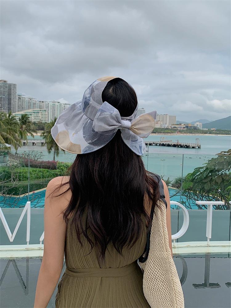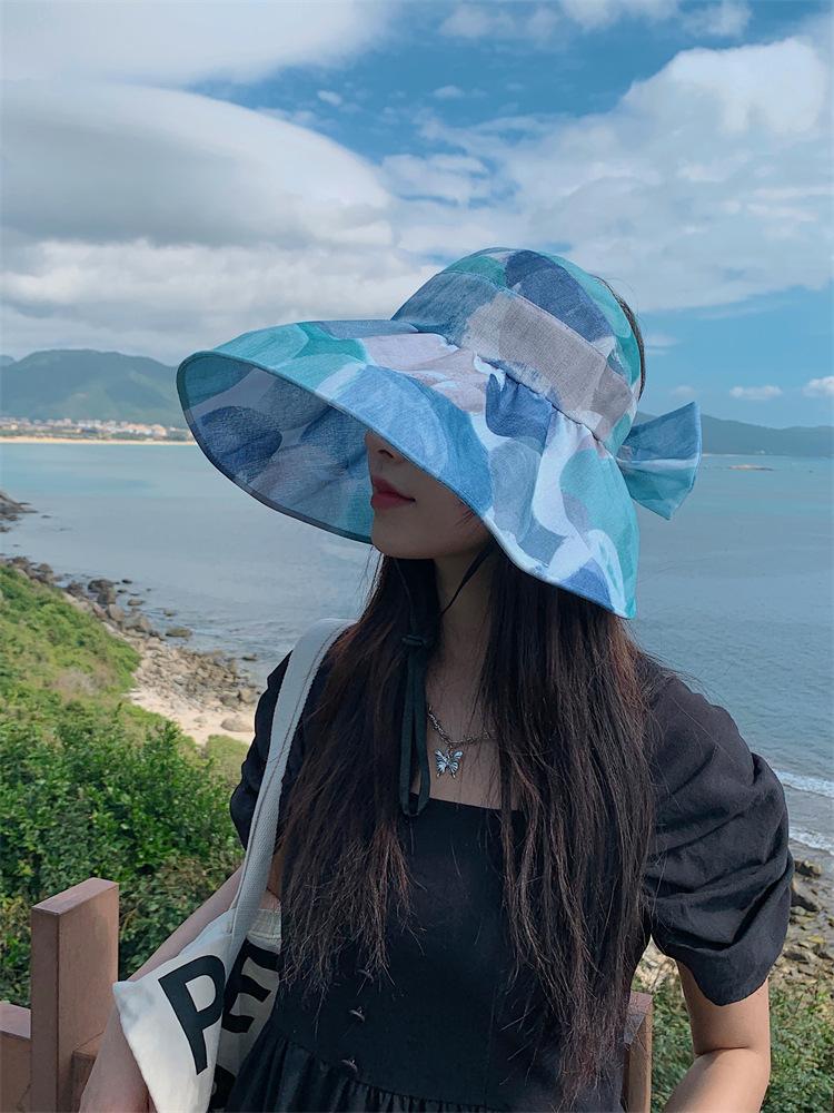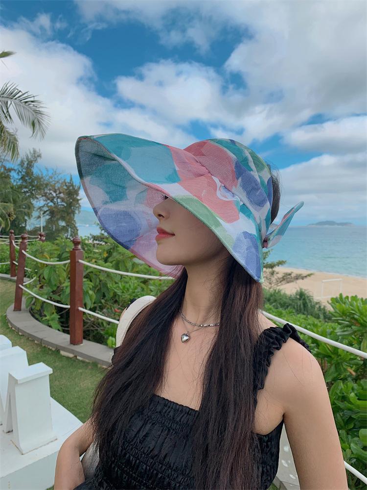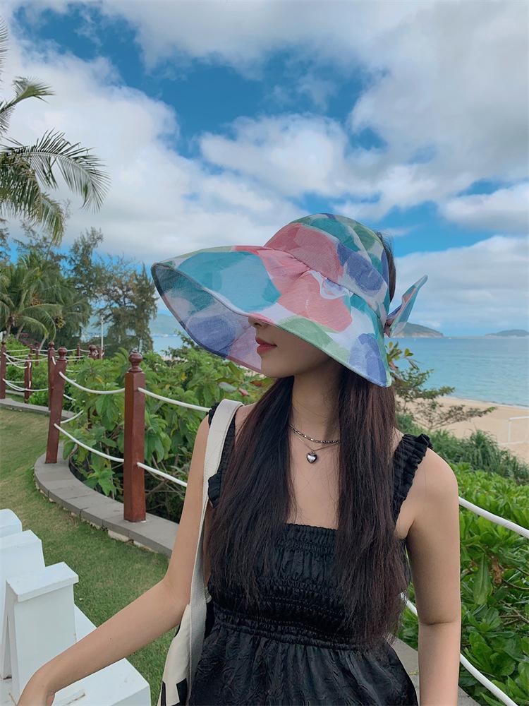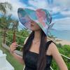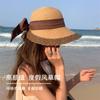 Nuevo Estilo de Protección Solar de Verano Sombrero de Sol Colorido de Media Copa para Mujer con Ala Ancha y Lazo Sombrero de Sol de Moda para Vacaciones en la Playa