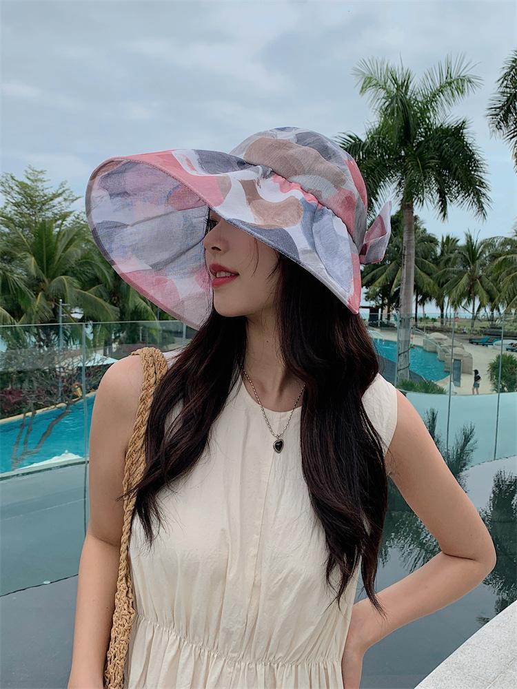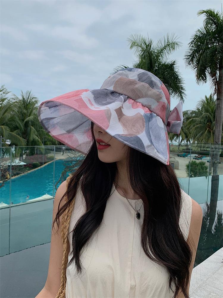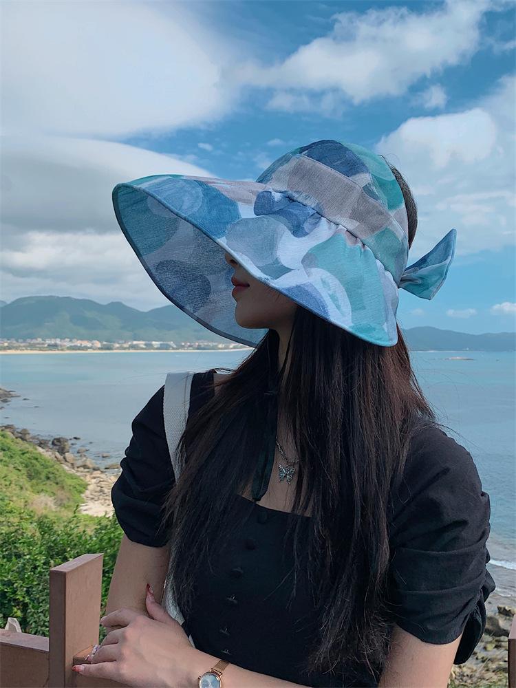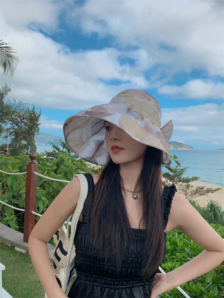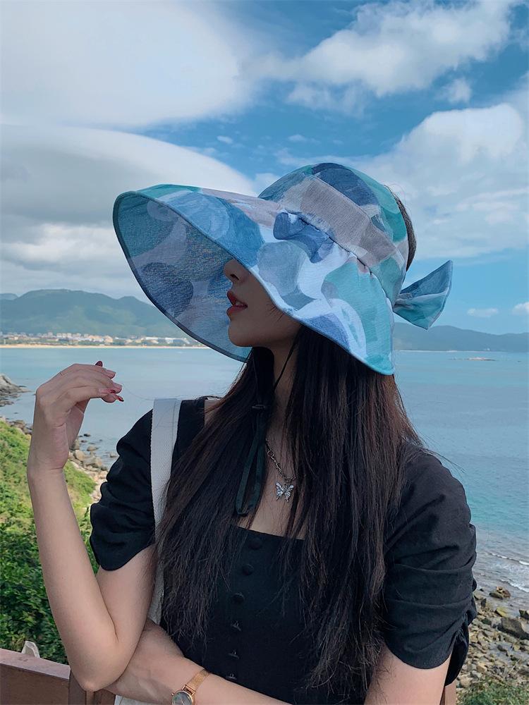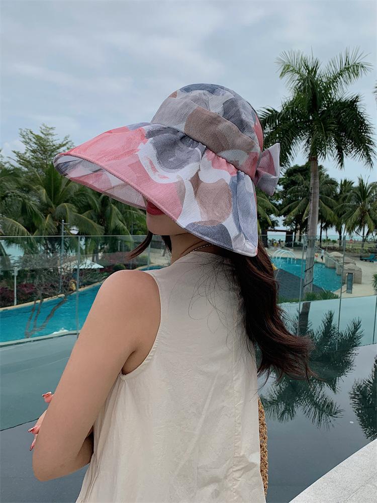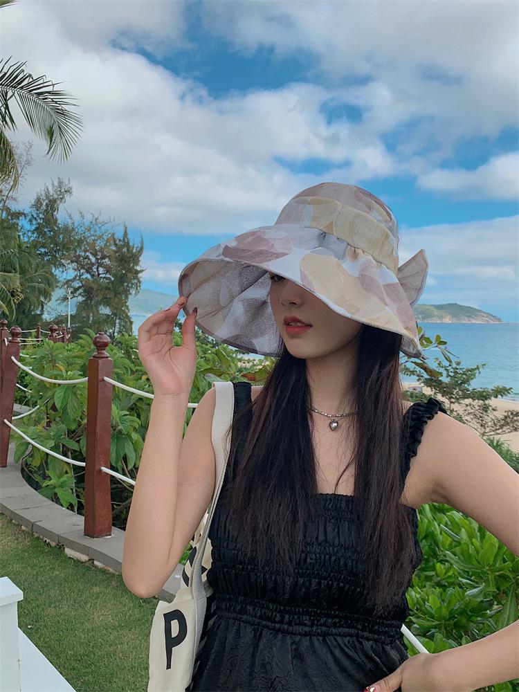 Nuevo Estilo de Protección Solar de Verano Sombrero de Sol Colorido de Media Copa para Mujer con Ala Ancha y Lazo Sombrero de Sol de Moda para Vacaciones en la Playa