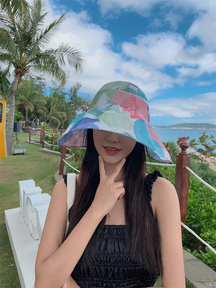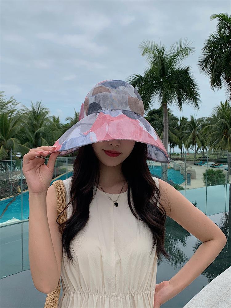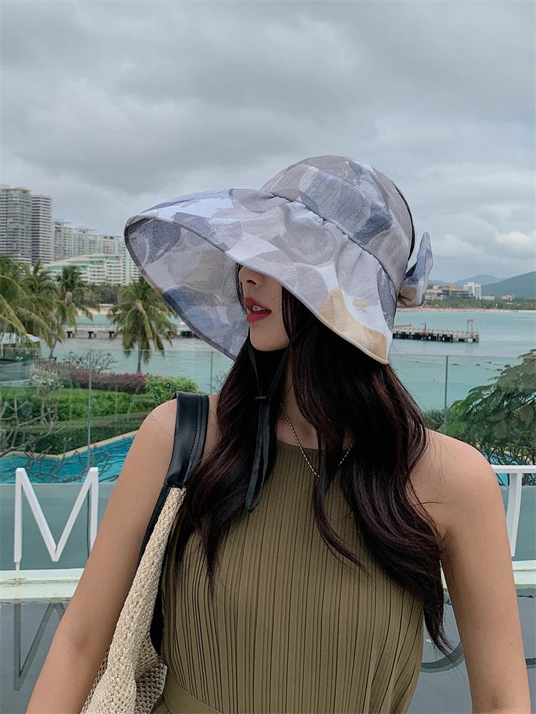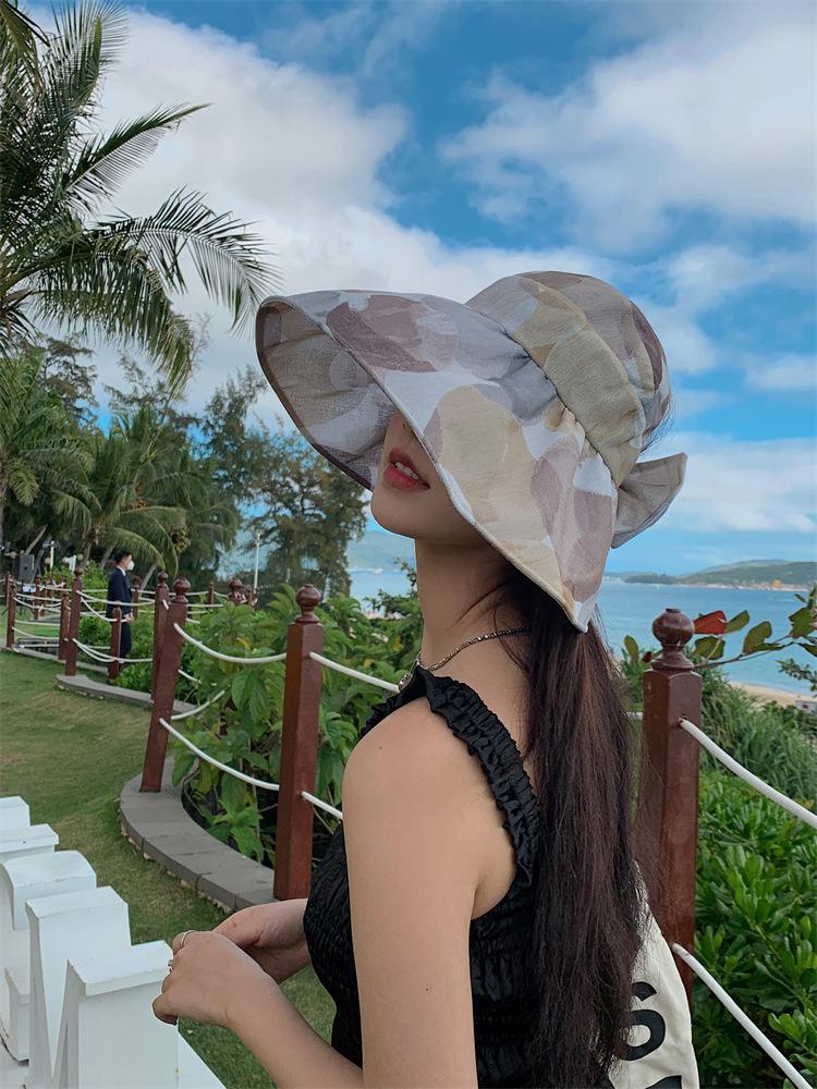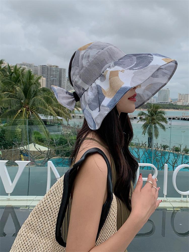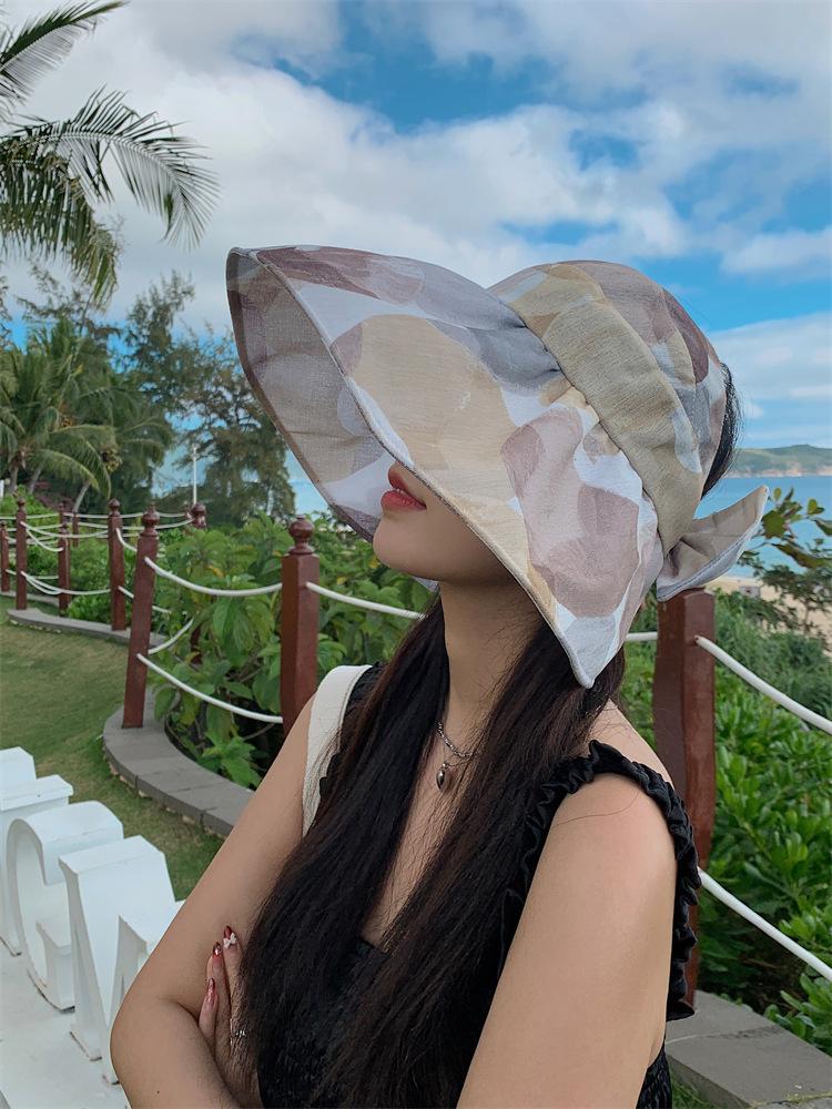 Nuevo Estilo de Protección Solar de Verano Sombrero de Sol Colorido de Media Copa para Mujer con Ala Ancha y Lazo Sombrero de Sol de Moda para Vacaciones en la Playa