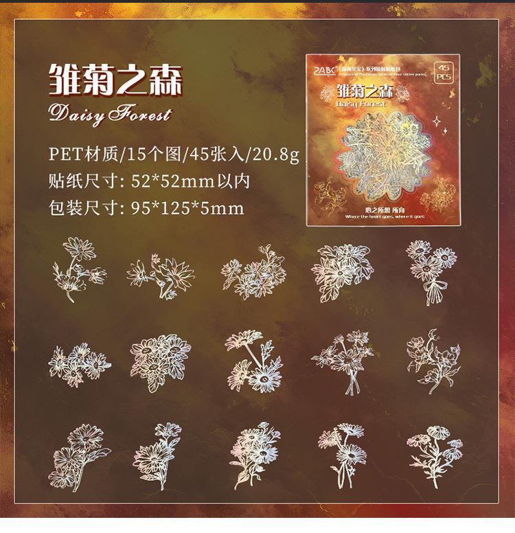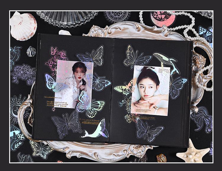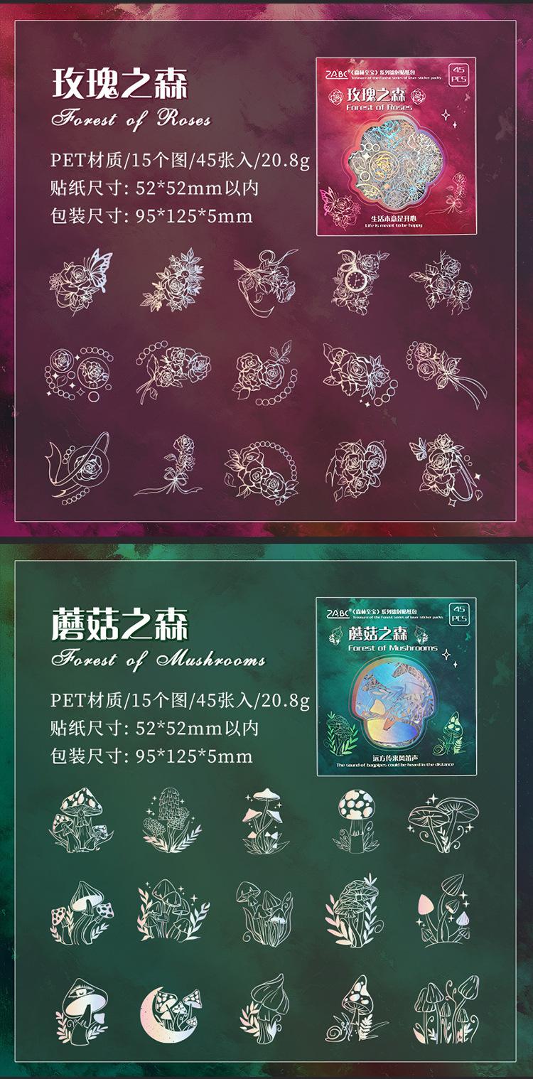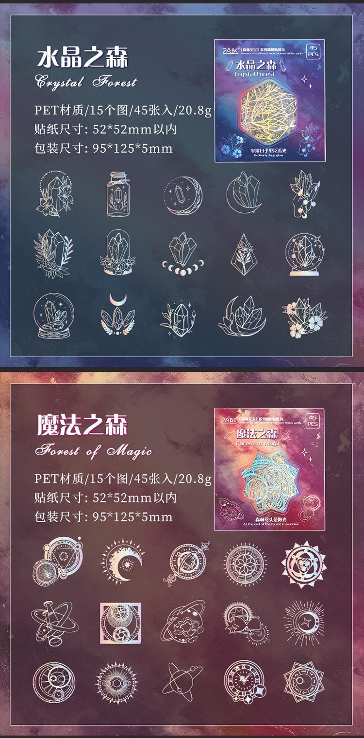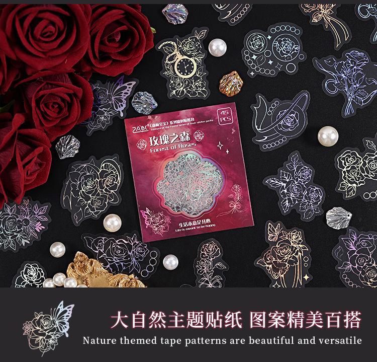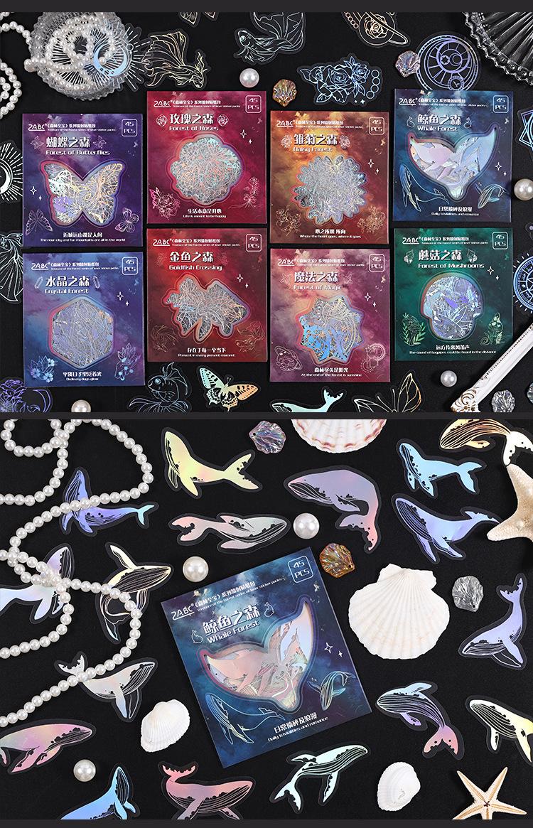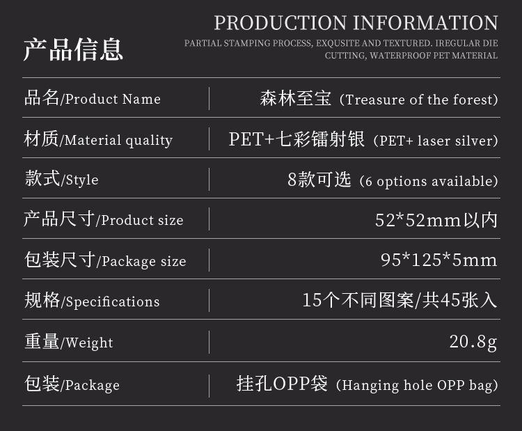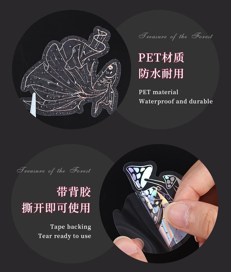 Pegatinas de cuenta de mano con láser de tesoro forestal, bolsa impermeable, material de cuenta de mano para mascotas, pegatinas creativas