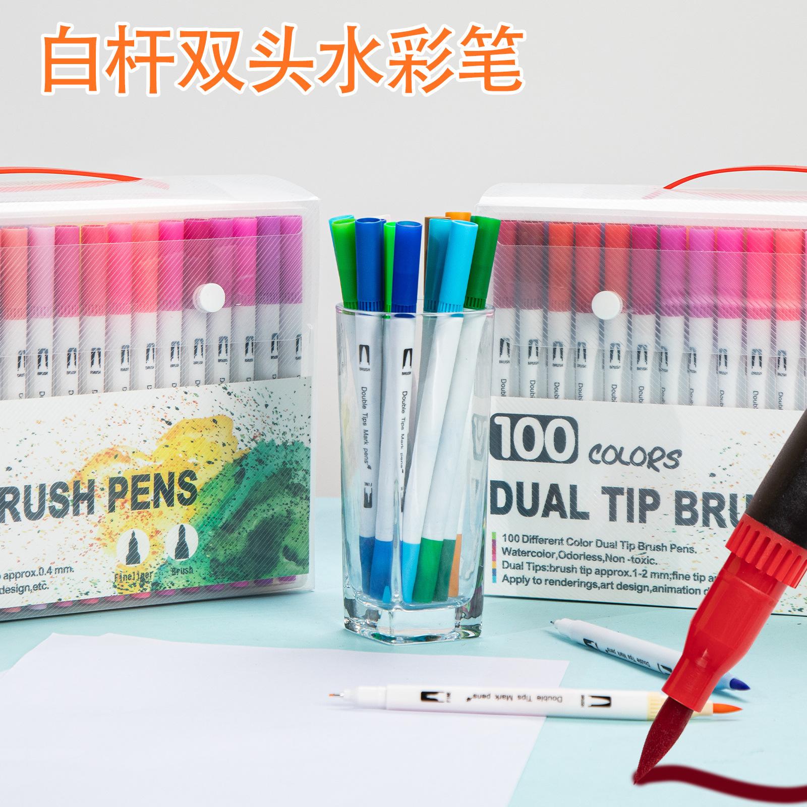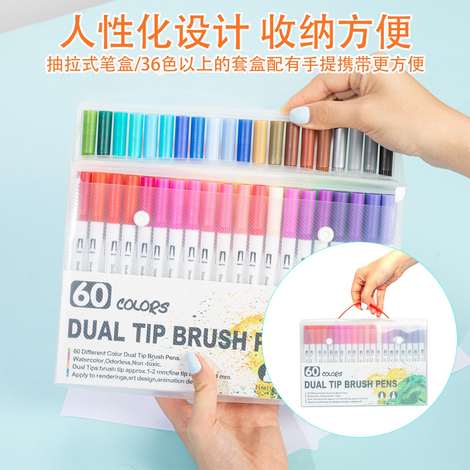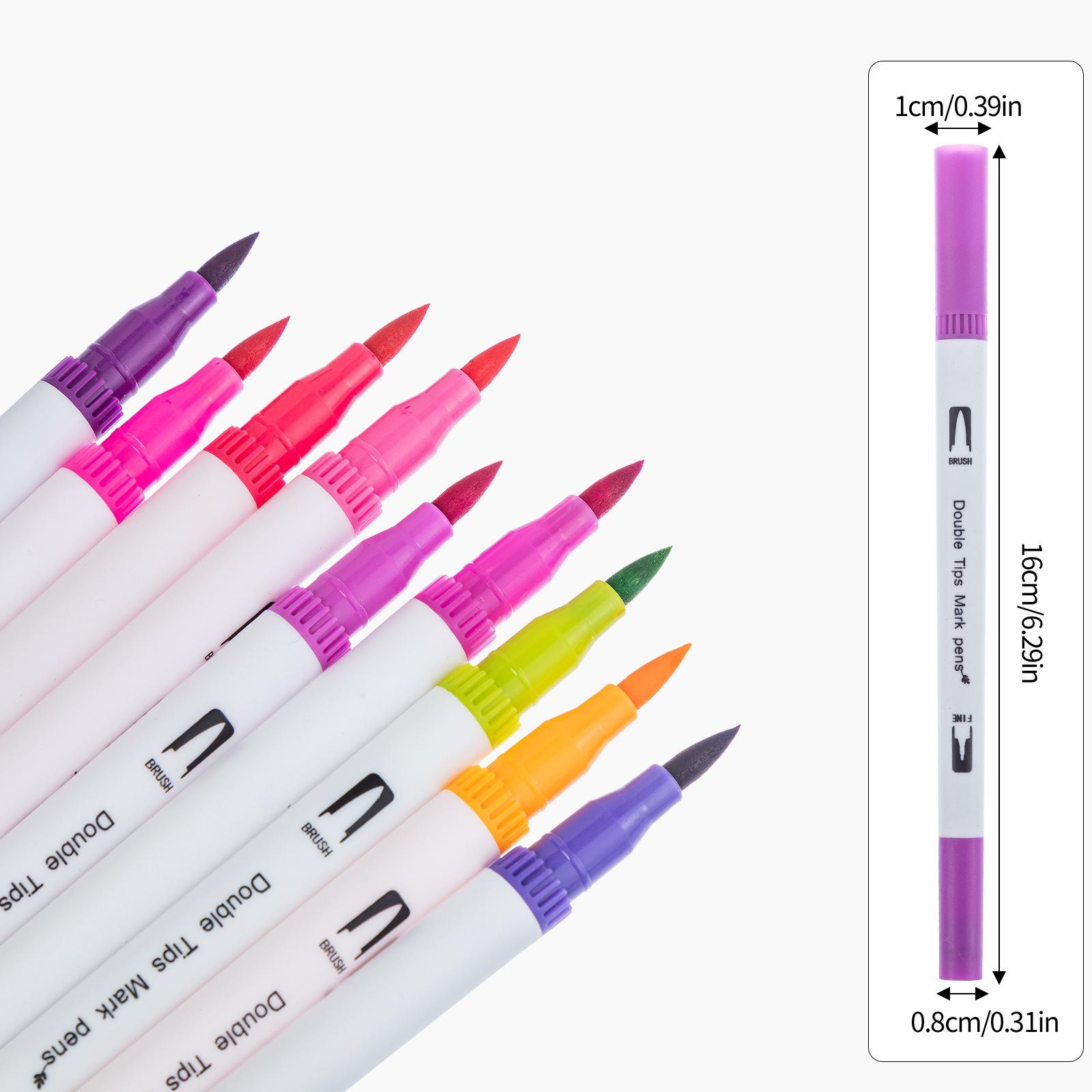 Pluma Acuarelable de Doble Punta con Punta Suave, Cuerpo Blanco, Caja de PVC, Marcador, Set de Plumas de Gancho Coloridas para Pintura Artística Infantil