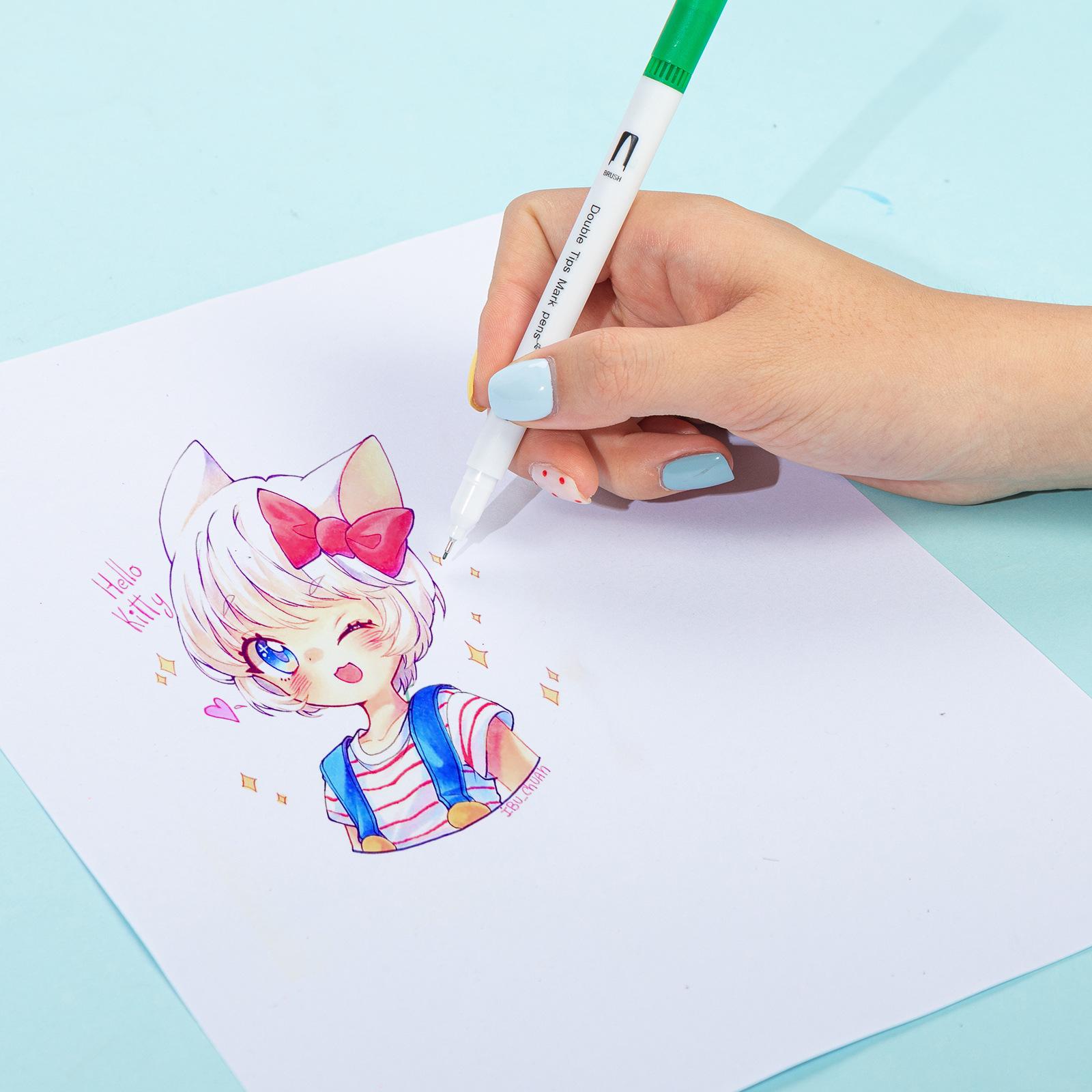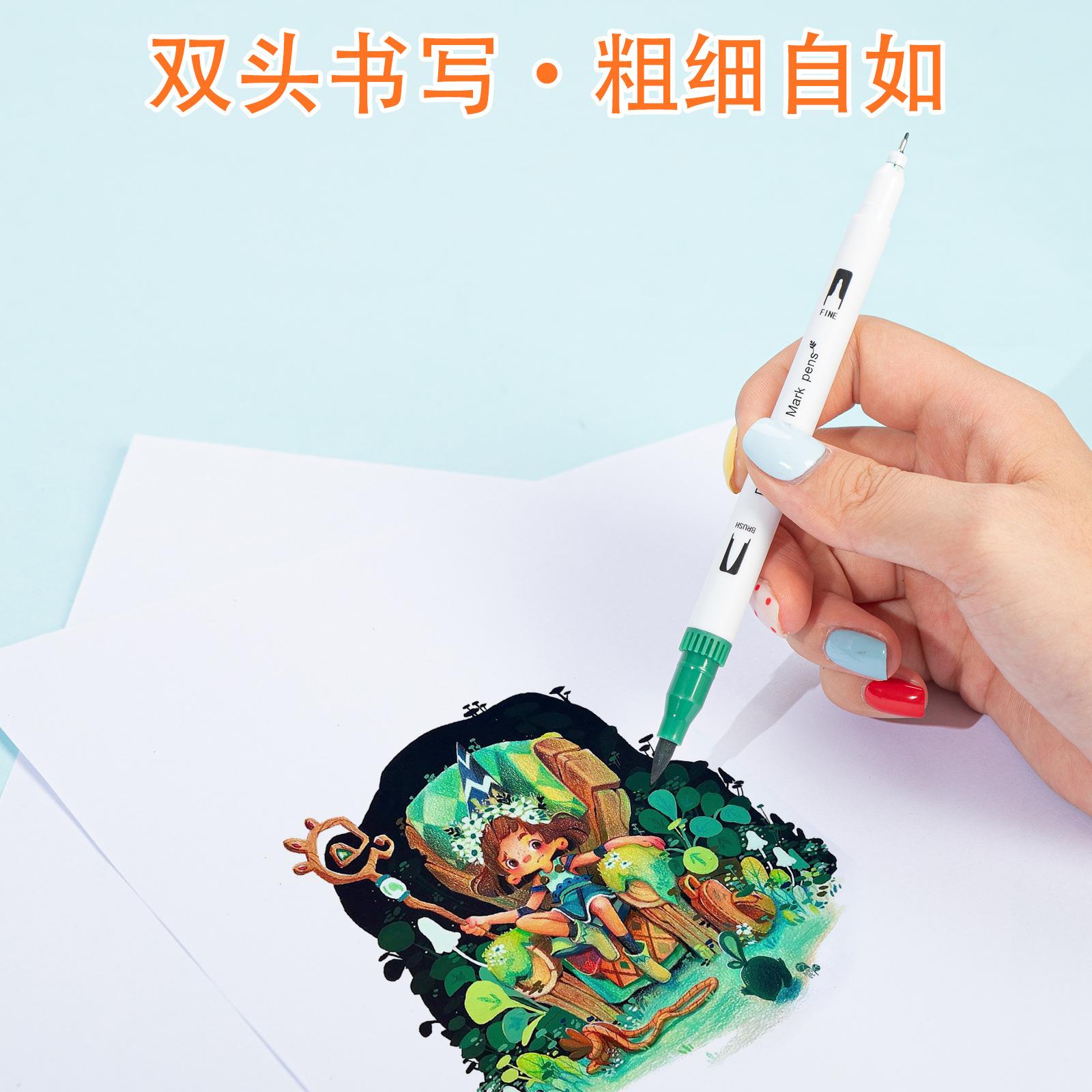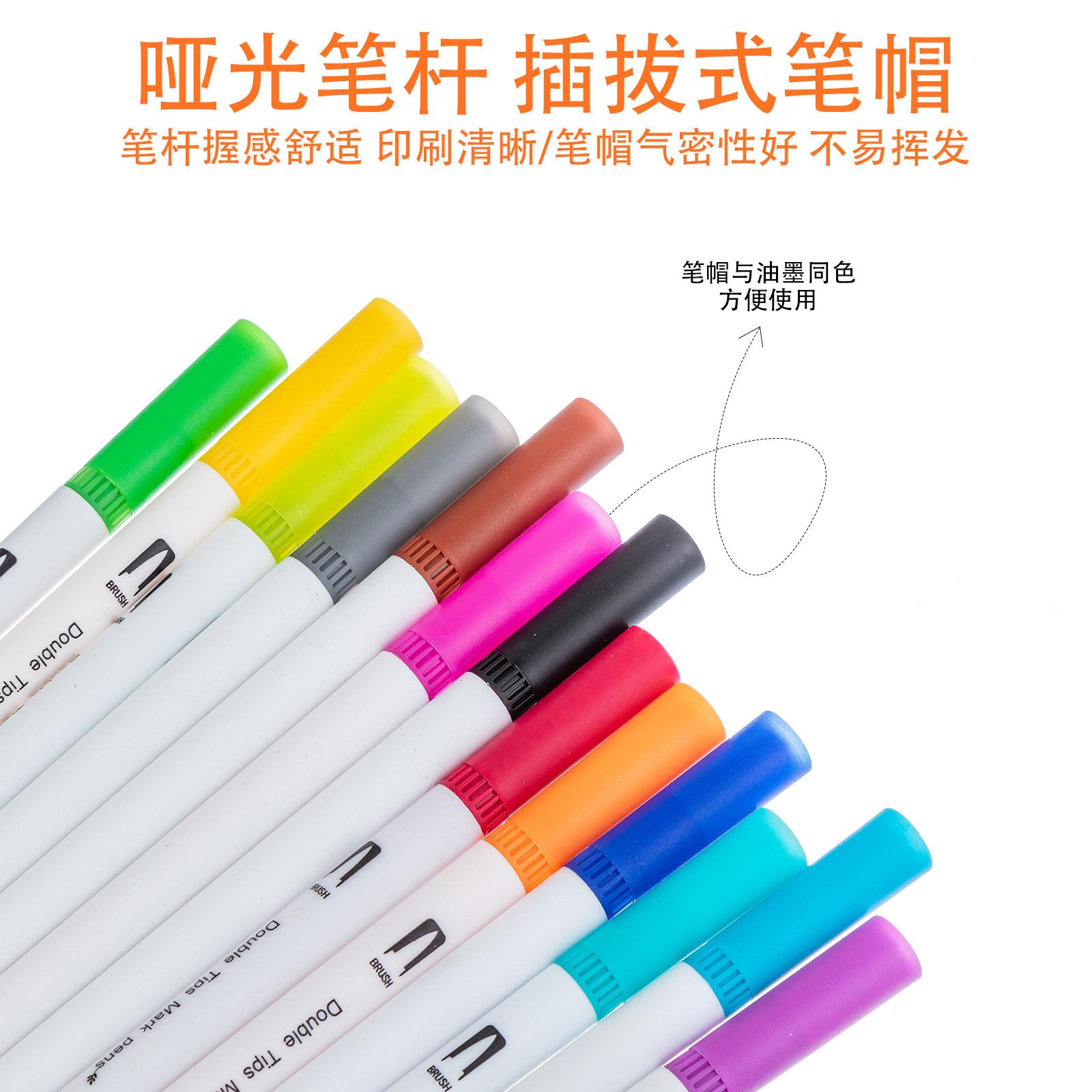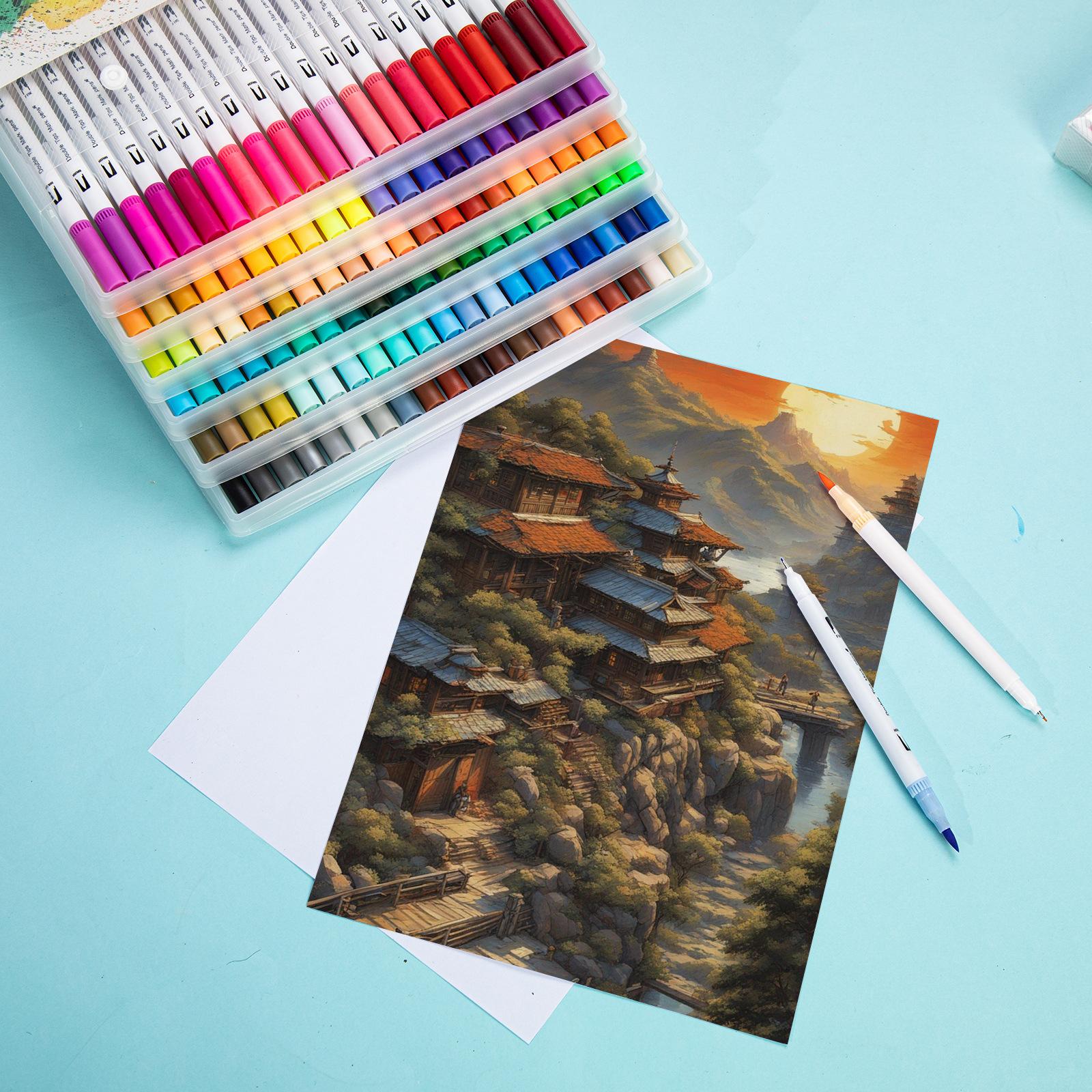Pluma Acuarelable de Doble Punta con Punta Suave, Cuerpo Blanco, Caja de PVC, Marcador, Set de Plumas de Gancho Coloridas para Pintura Artística Infantil