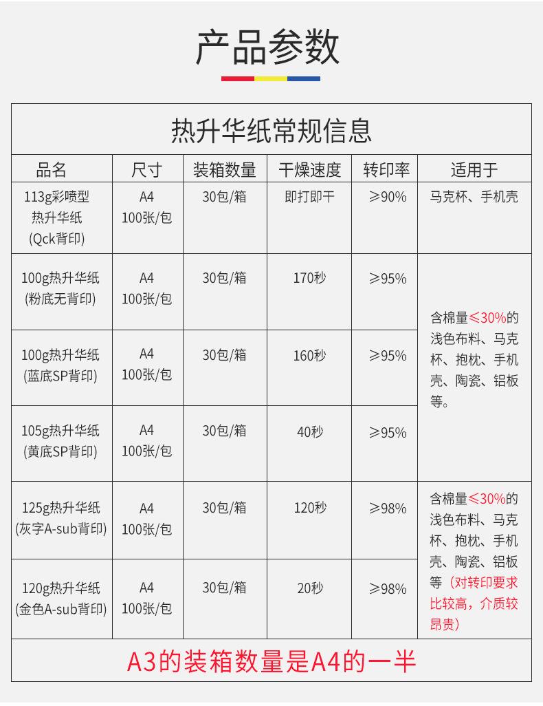 Papel de transferencia térmica A4/A3, papel de sublimación, papel de secado rápido, papel de transferencia de sublimación para tazas recubiertas, papel especial modal