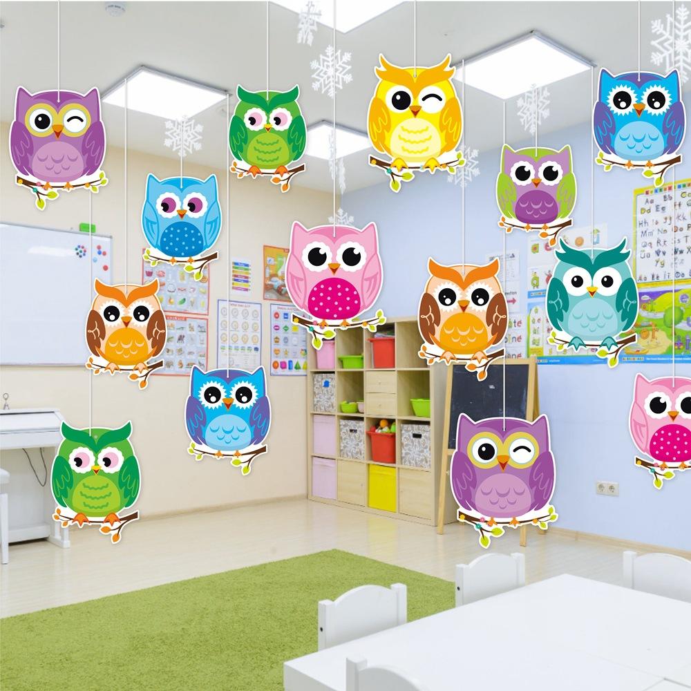 Adornos colgantes para fiesta de regreso a clases de jardín de infantes de escuela primaria transfronteriza, fondo de aula, adornos colgantes de búho