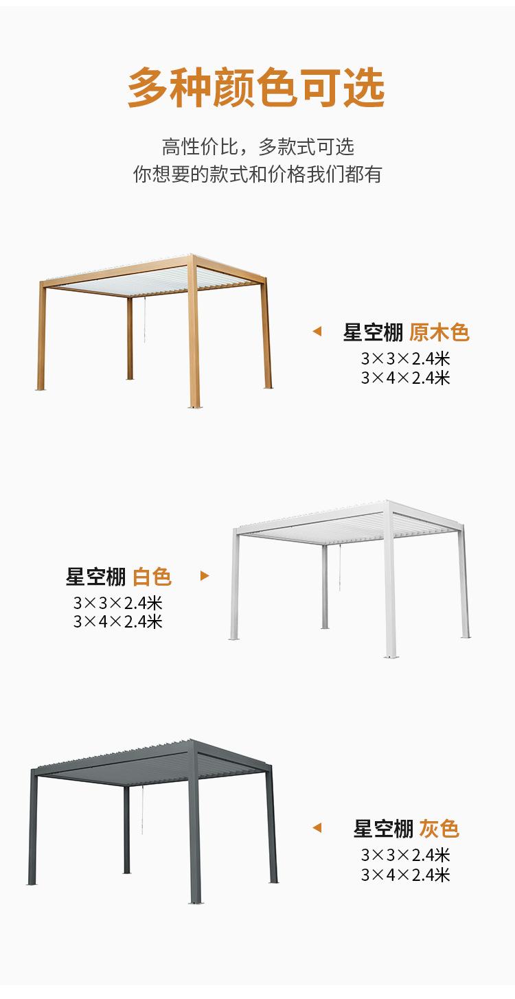 Cenador de exterior gris cielo estrellado cobertizo simple ocio exterior villa jardín cenador parasol pabellón de aleación de aluminio