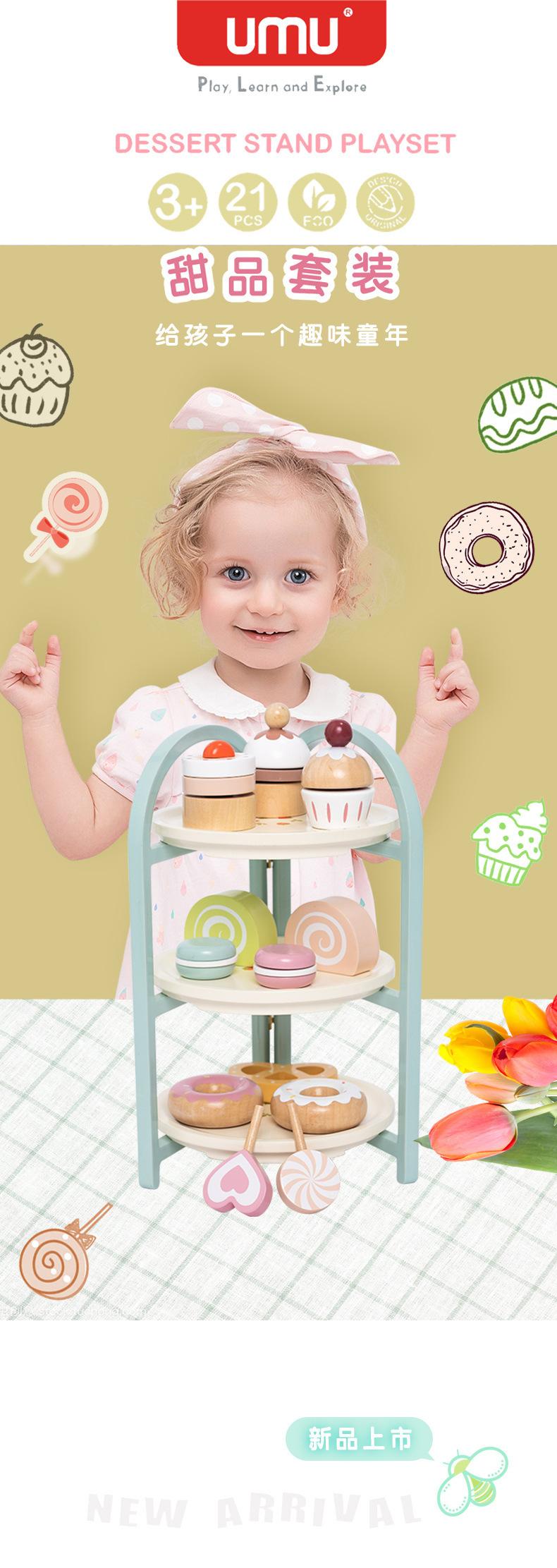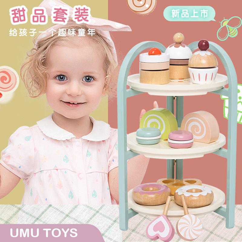 Casa de juegos de té de la tarde transfronteriza, simulación de estante de postres de tres capas educativo para niños, juguetes interactivos para padres e hijos para jardín de infantes
