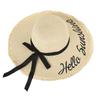 Sombrero de Paja para Mujer con Lazo Sombrero de Ala Ancha de Cúpula Protector Solar Playa Orilla del Mar al Aire Libre Letras Inglesas Sombrero para Sombreado de Cara