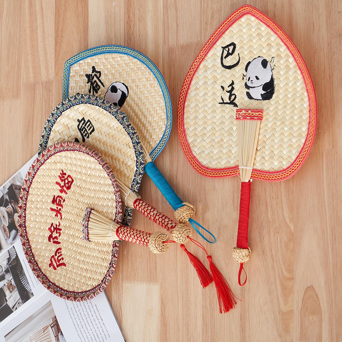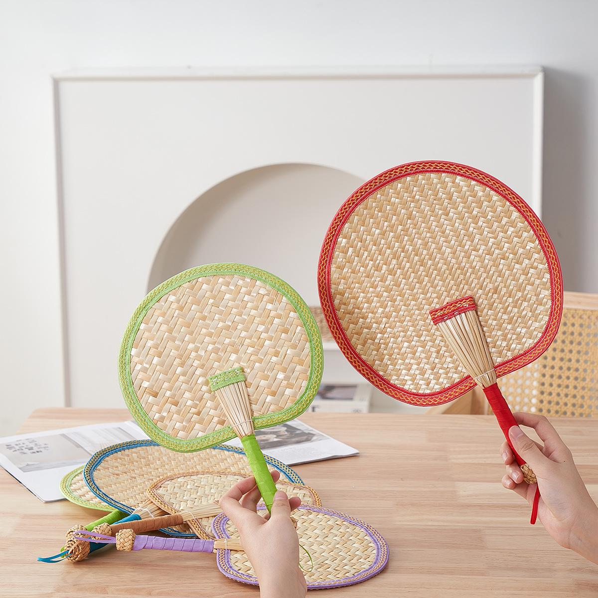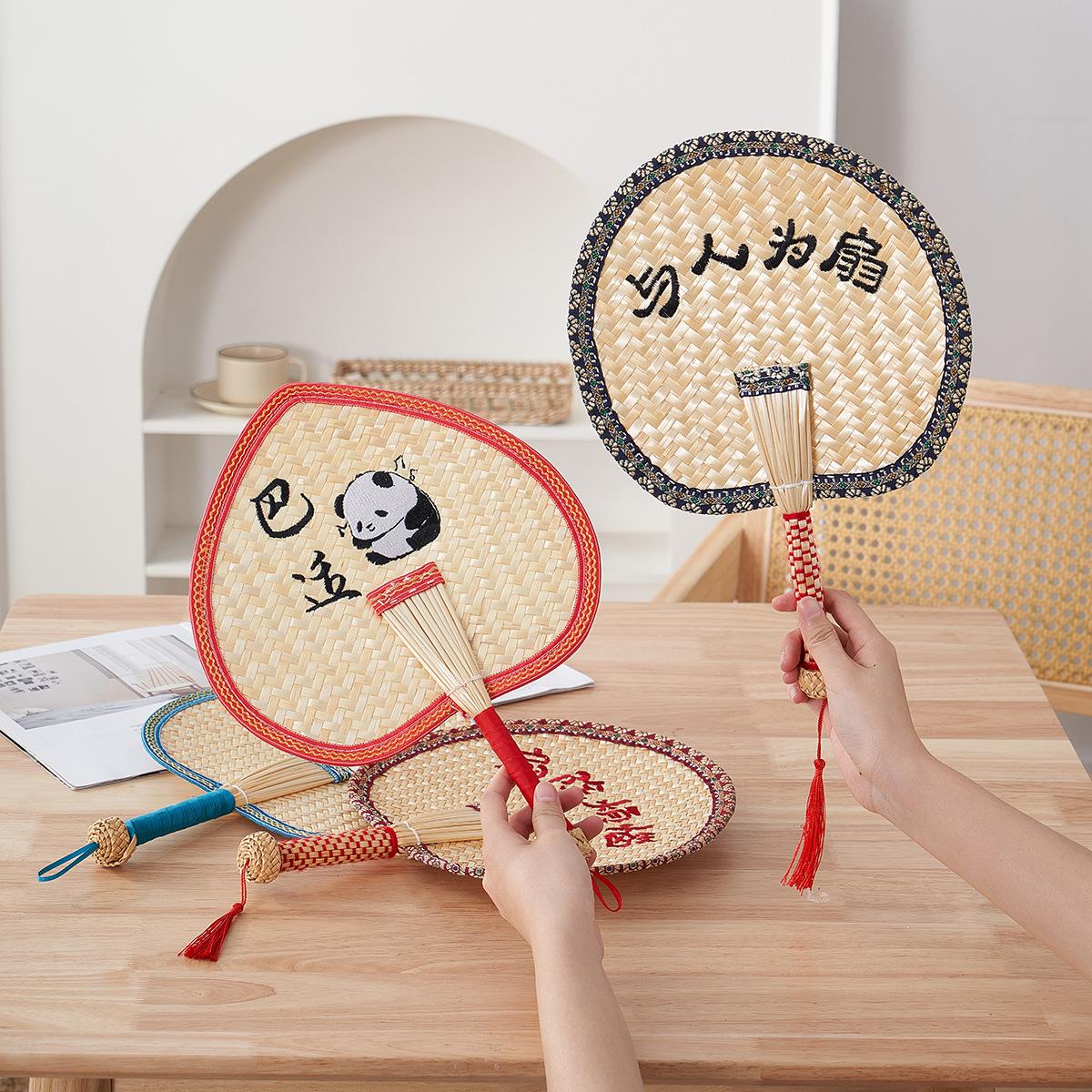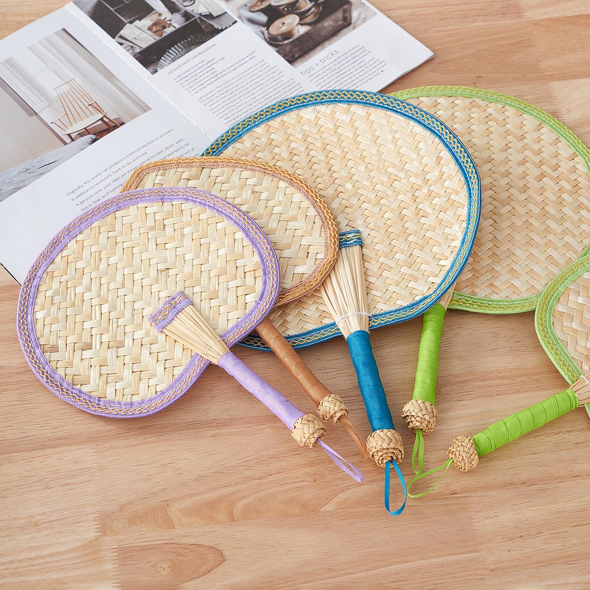 Abanico de paja de trigo tejido a mano puro verano hogar niños estilo chino abanico de paja de trigo portátil tejido abanico de plátano venta al por mayor