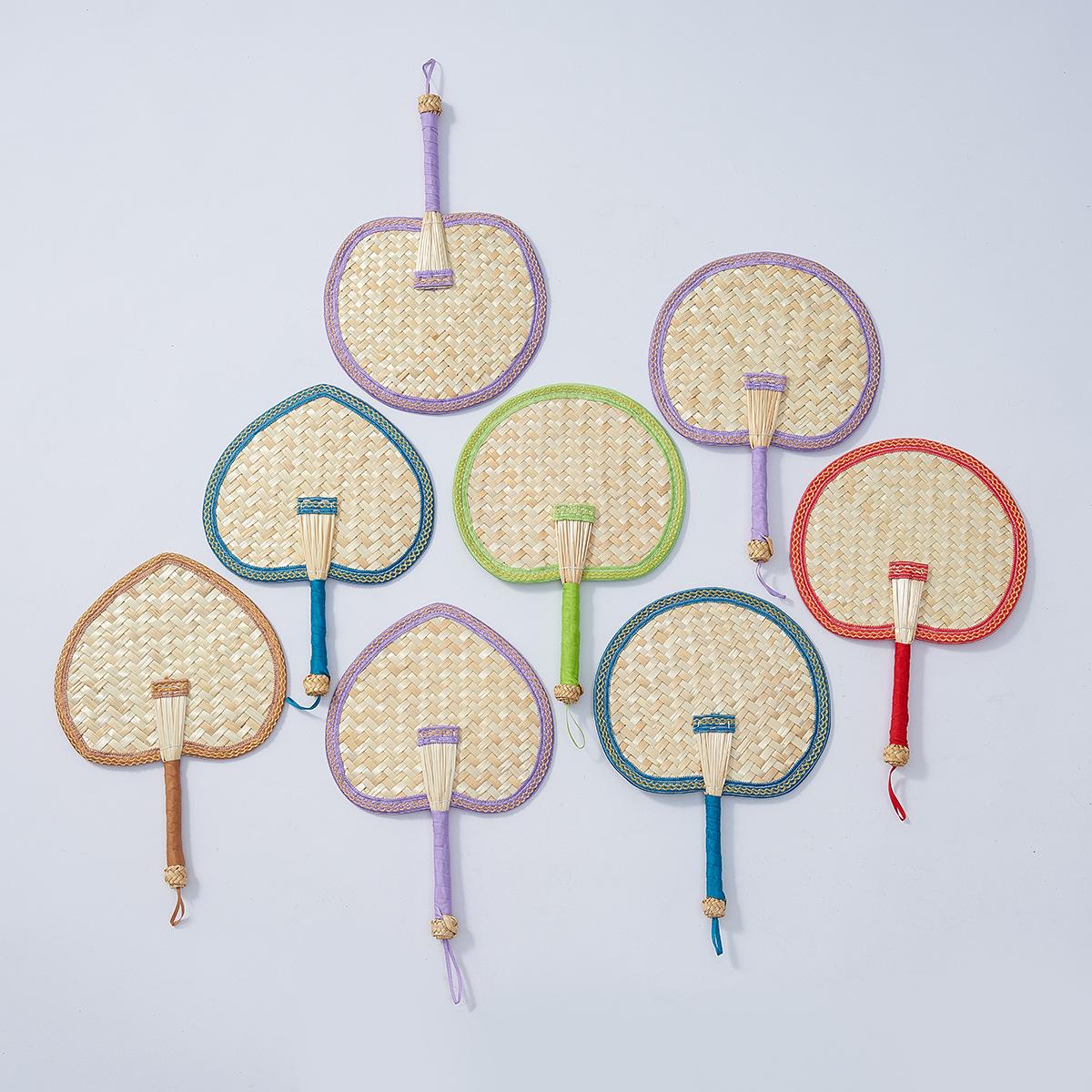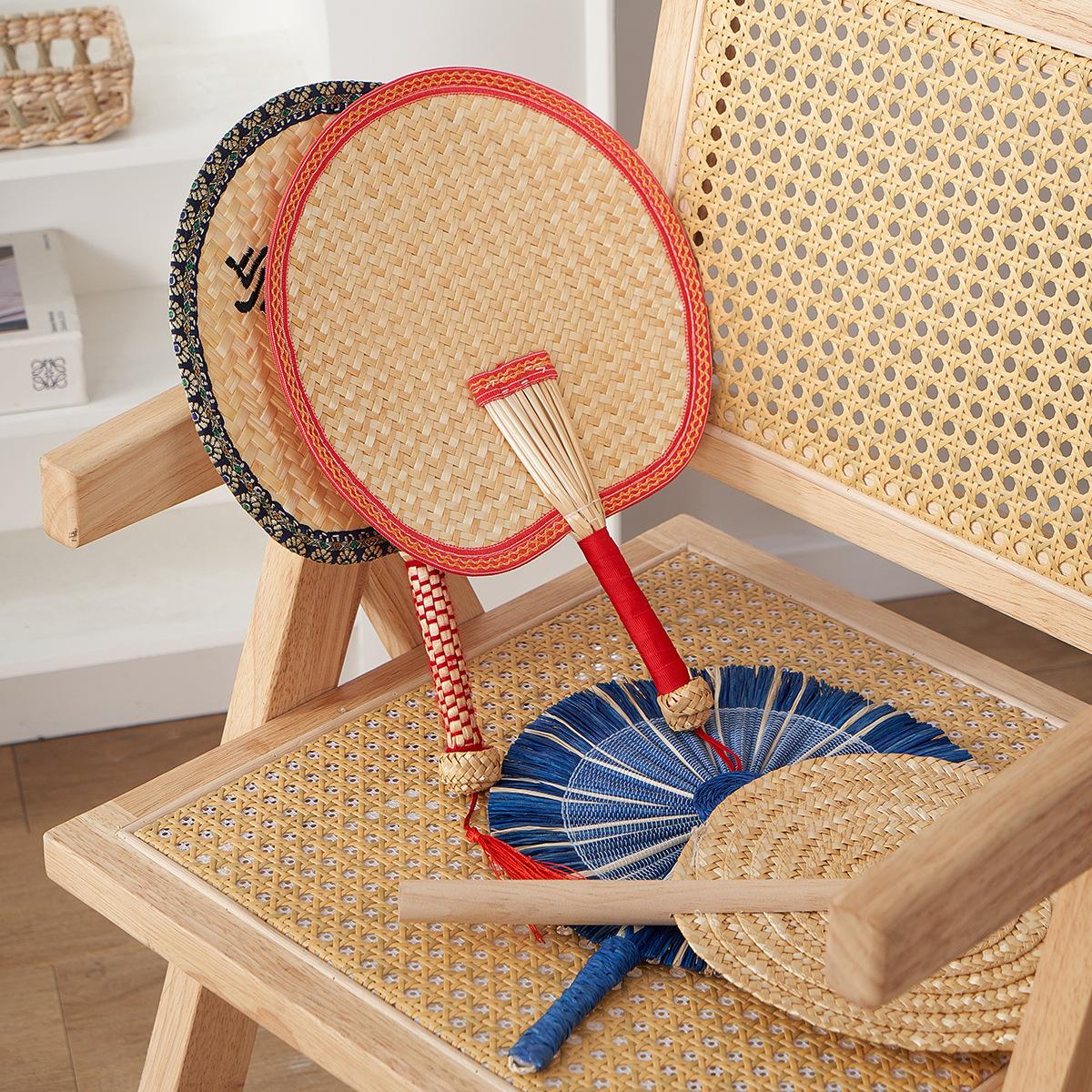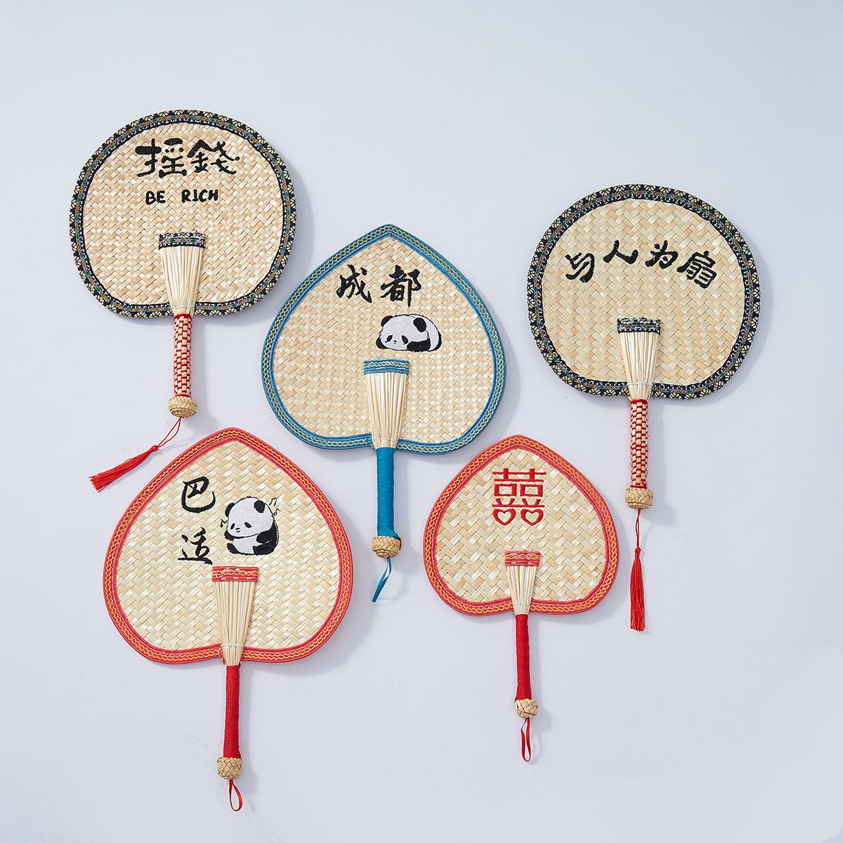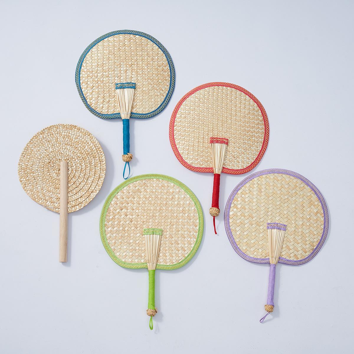 Abanico de paja de trigo tejido a mano puro verano hogar niños estilo chino abanico de paja de trigo portátil tejido abanico de plátano venta al por mayor