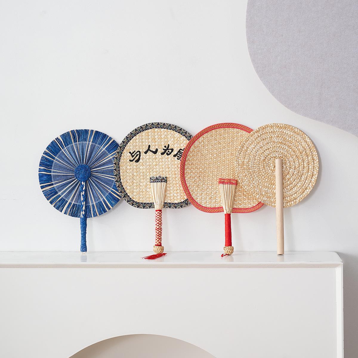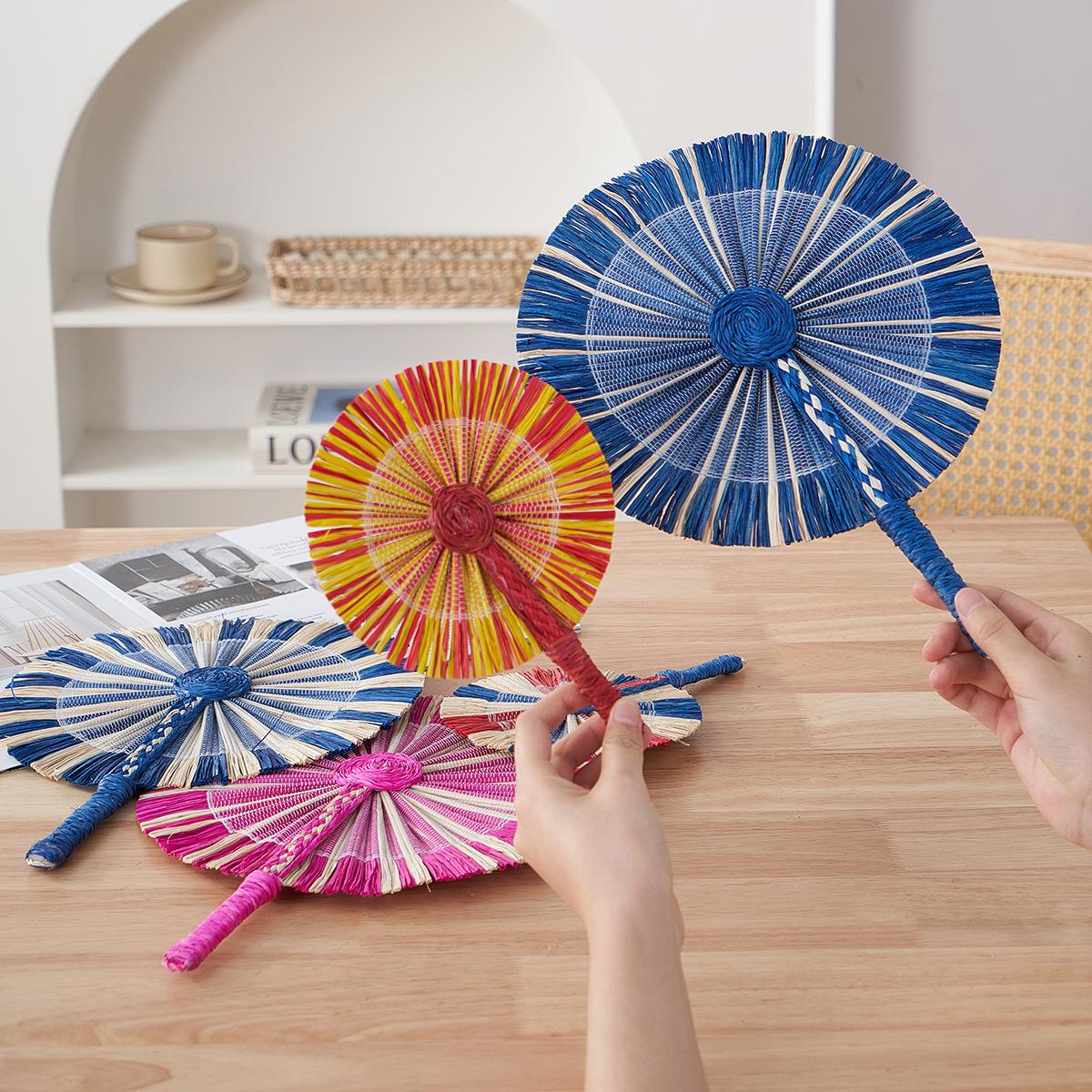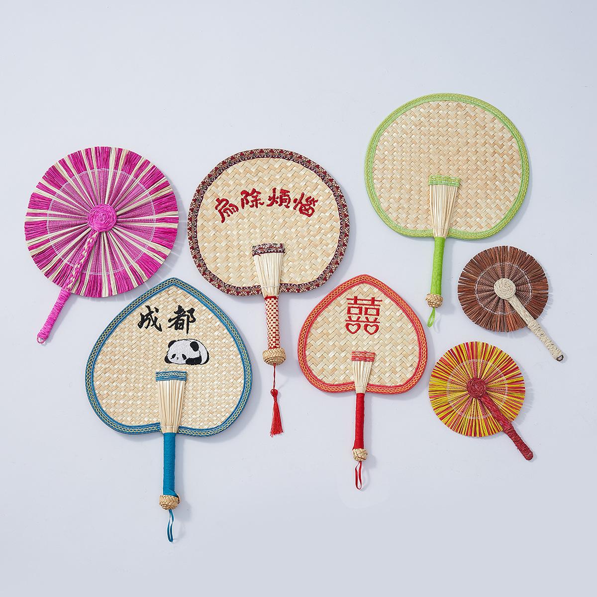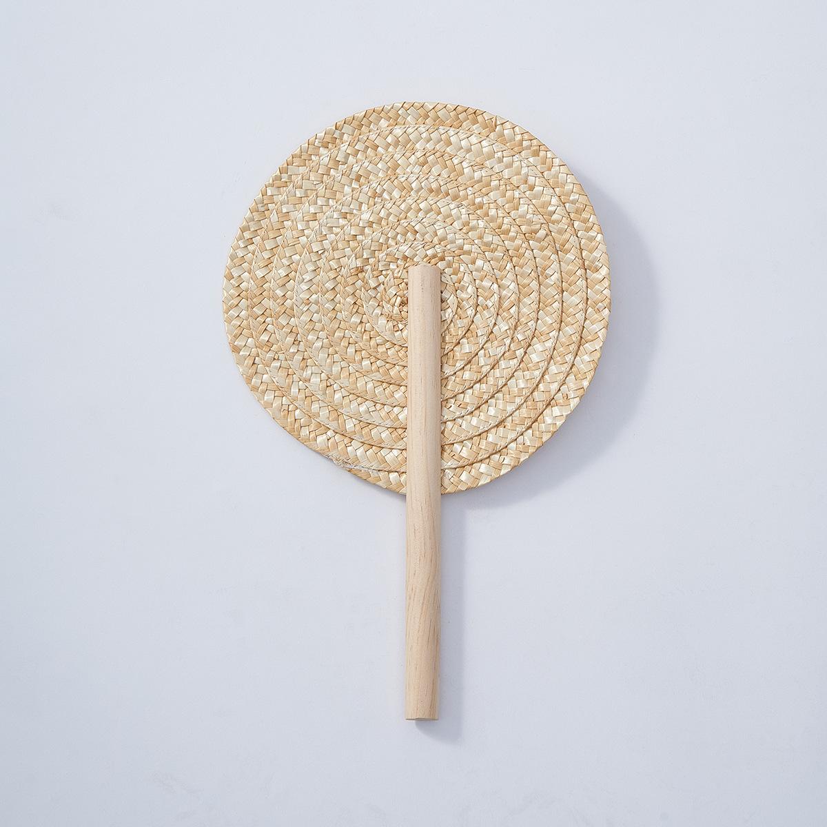 Abanico de paja de trigo tejido a mano puro verano hogar niños estilo chino abanico de paja de trigo portátil tejido abanico de plátano venta al por mayor