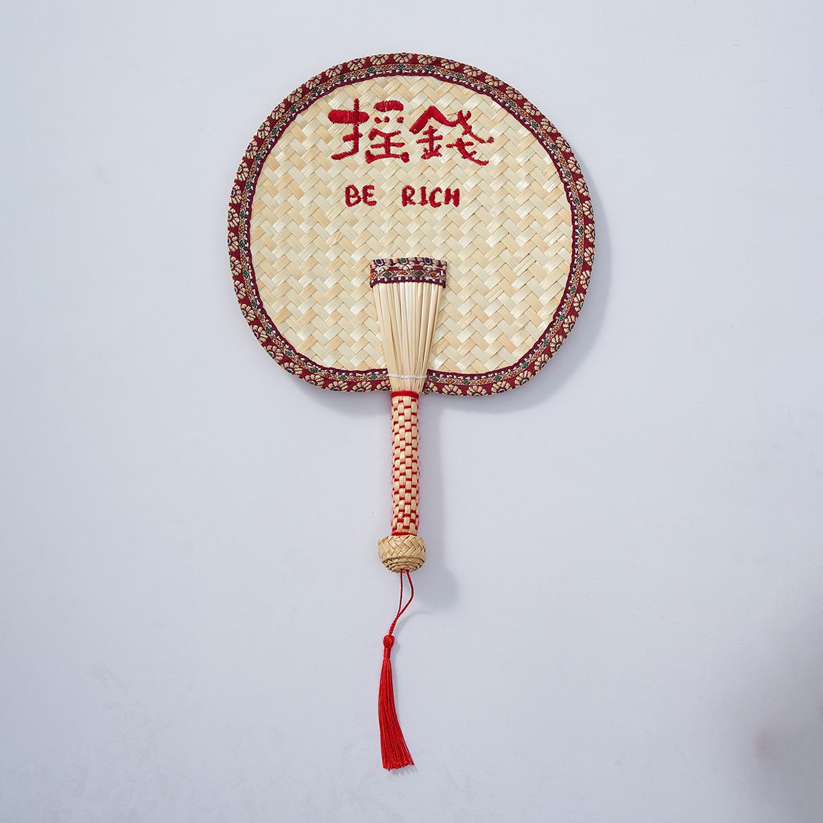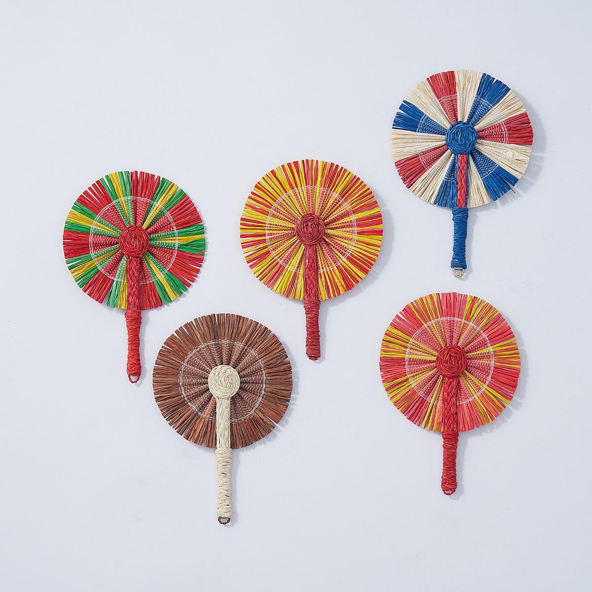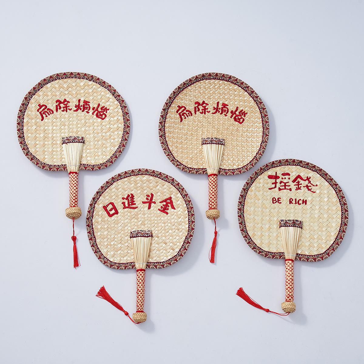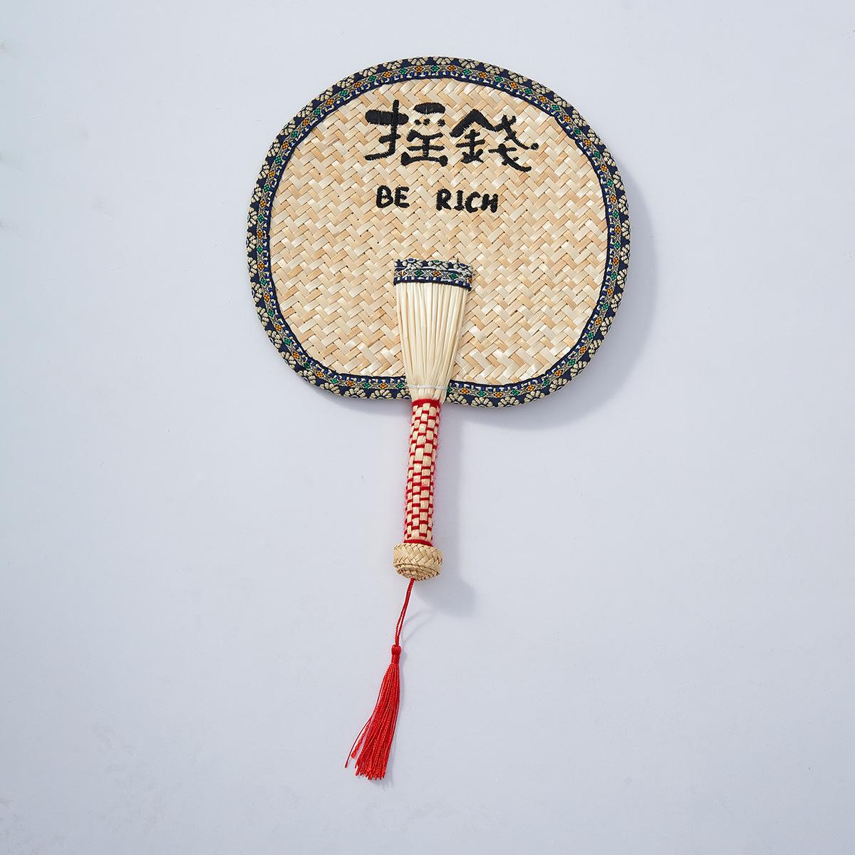 Abanico de paja de trigo tejido a mano puro verano hogar niños estilo chino abanico de paja de trigo portátil tejido abanico de plátano venta al por mayor