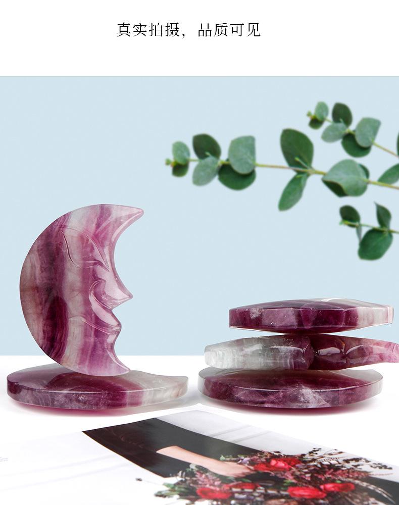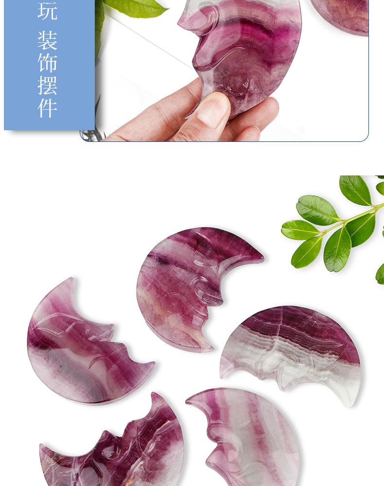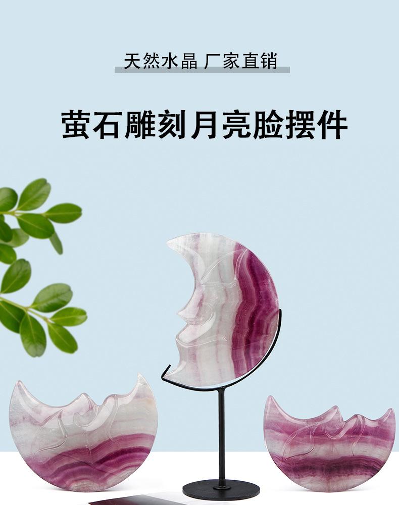 Compra Artesanía de cristal natural, fluorita púrpura tallada, adornos de cara lunar, colección de decoraciones, regalos, fábrica al por mayor al por mayor en Joom.pro