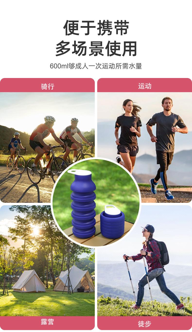 Taza plegable de silicona creativa de Amazon, tetera deportiva de silicona para viajes al aire libre, taza portátil, taza delgada para montar a caballo.