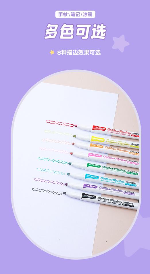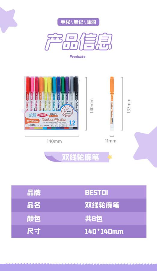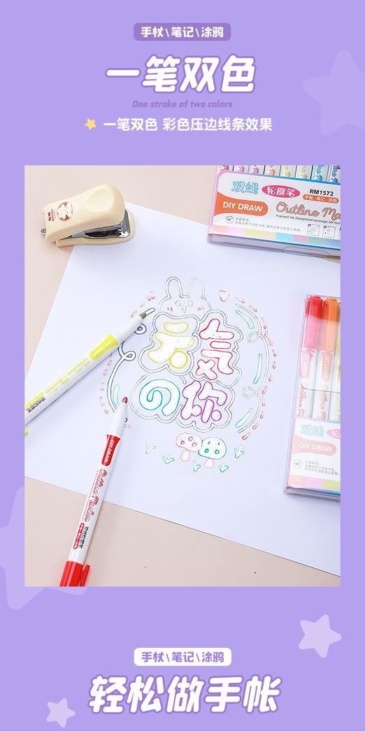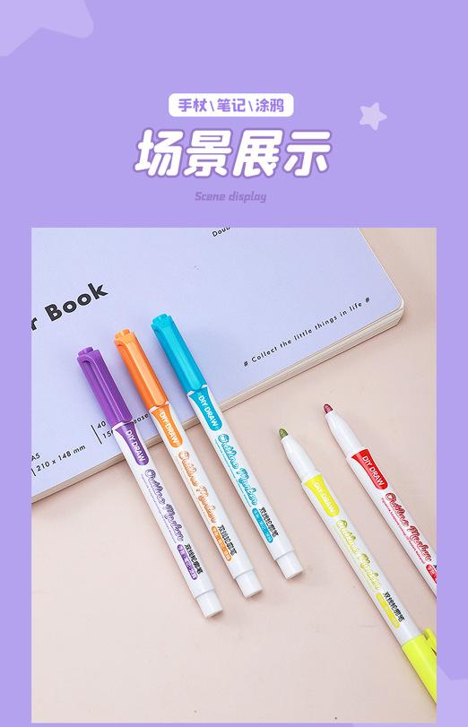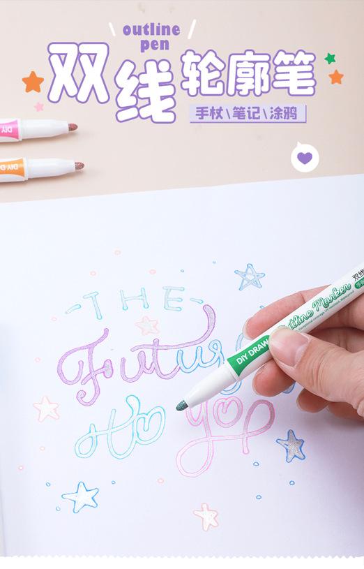 Bolígrafo de contorno de doble línea 8 colores 12 colores Set Marcador de dos colores Estudiante DIY Manual Pintura a mano Resaltador Pincel