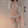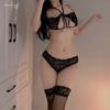 Shuo Yao ropa interior sexy encaje sexy tentación sujetador de tres puntos ropa interior para mujer pijama transparente abierto traje 1162
