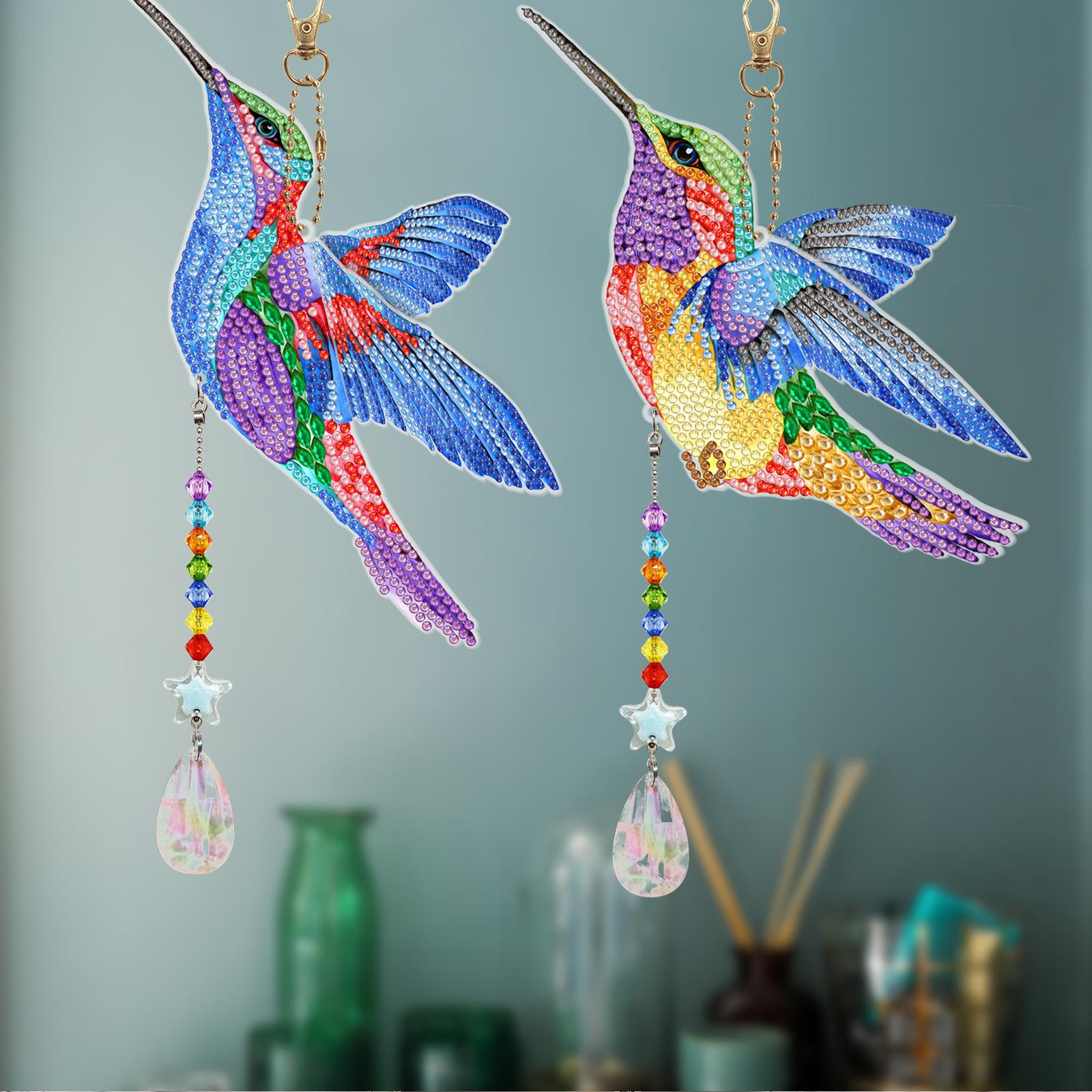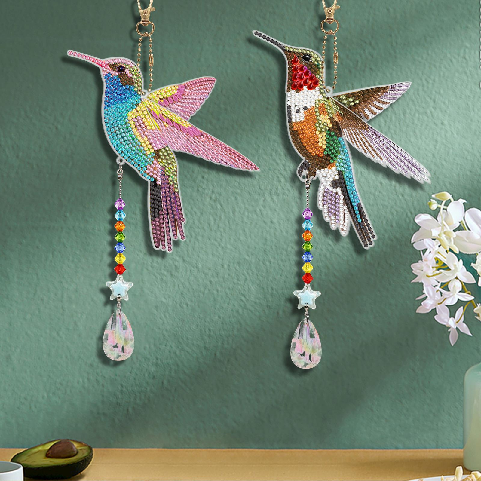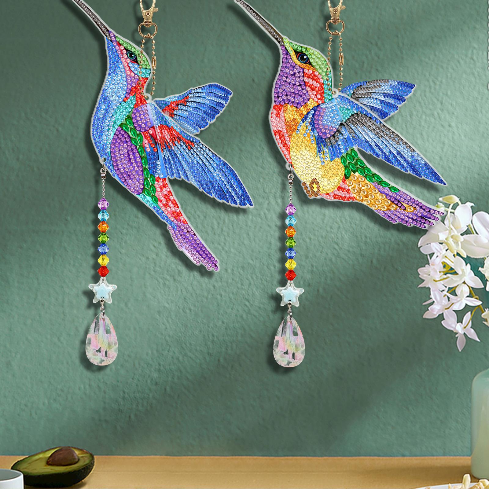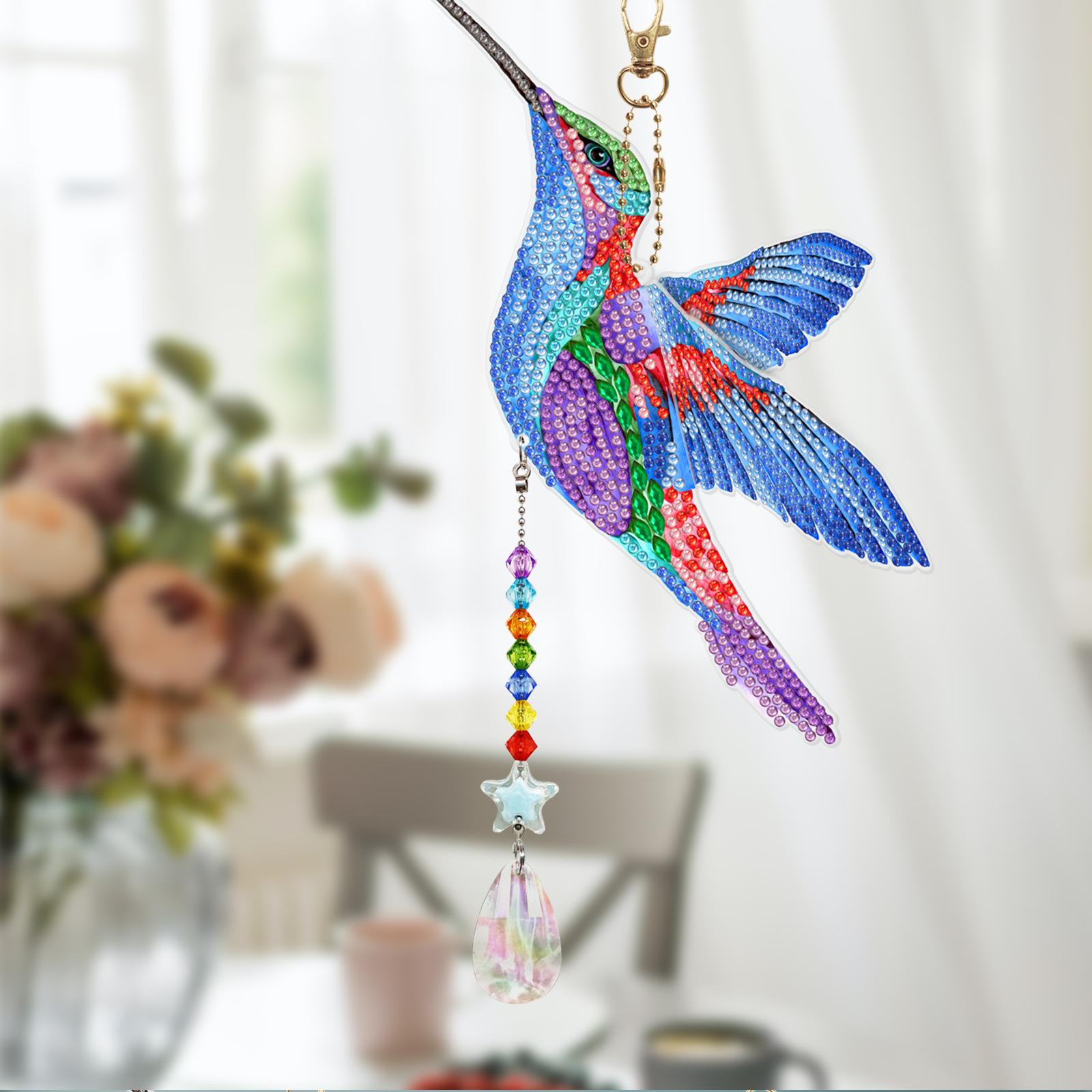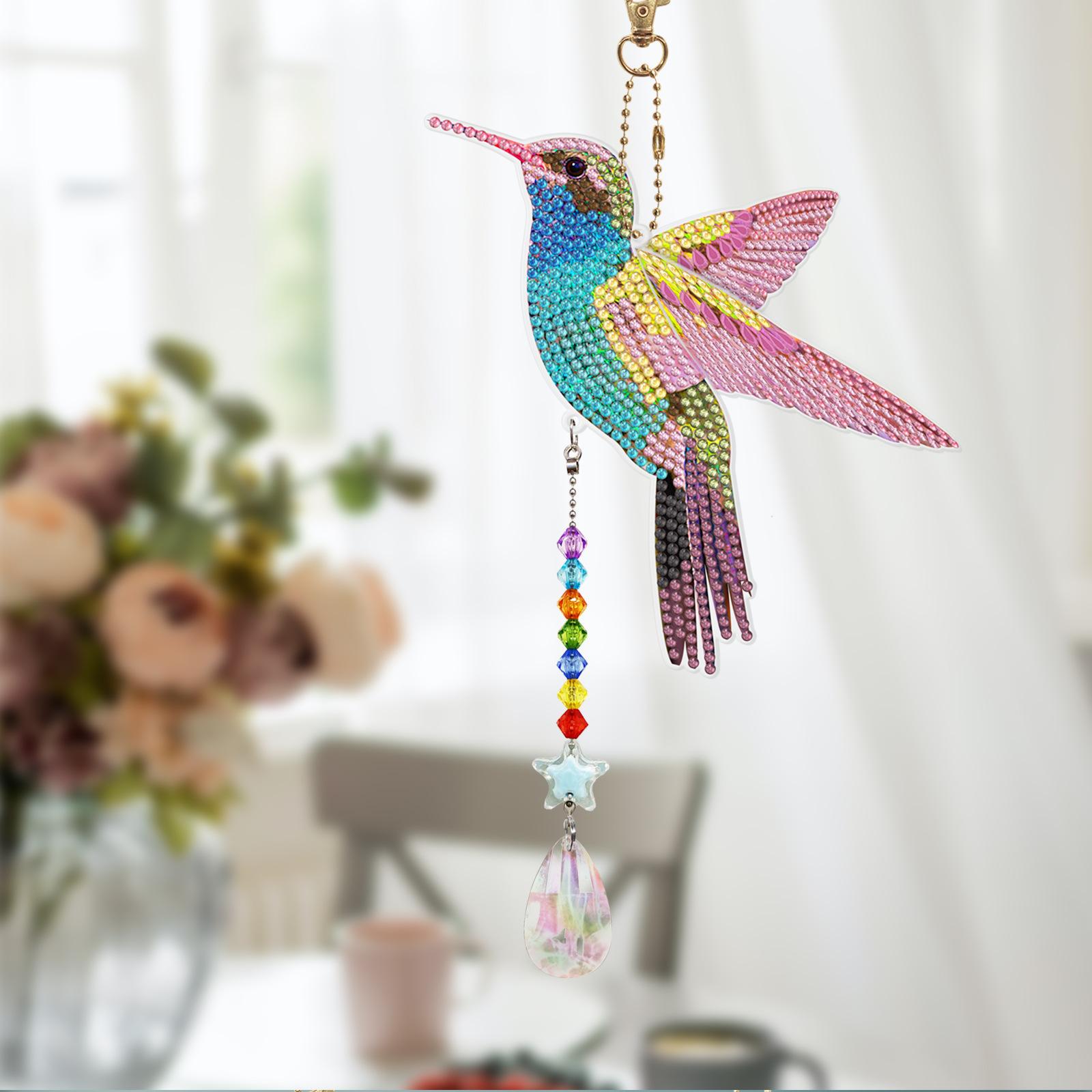 Pintura de diamantes DIY colibrí estilo animal punto diamante colgante de doble cara llavero campana de viento pintura de diamantes al por mayor