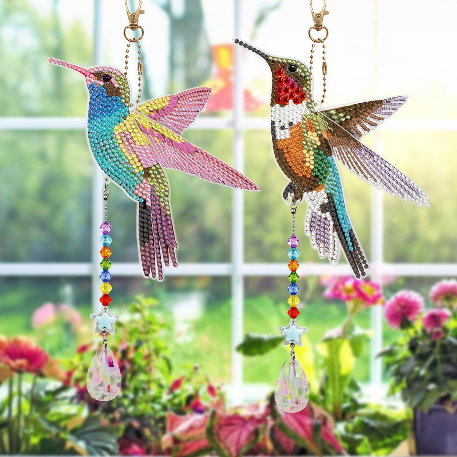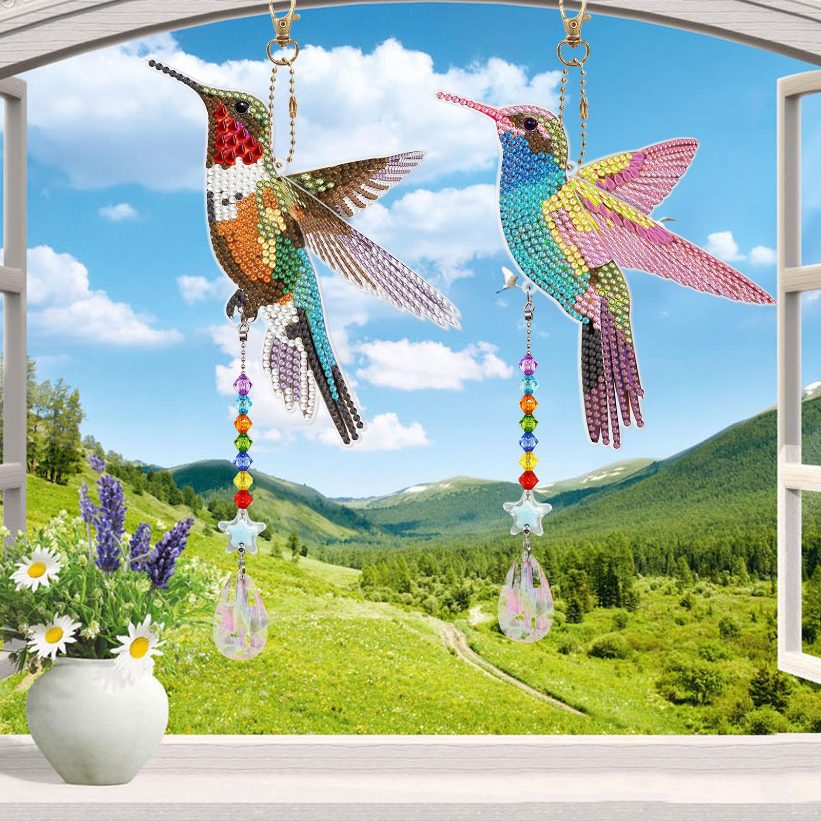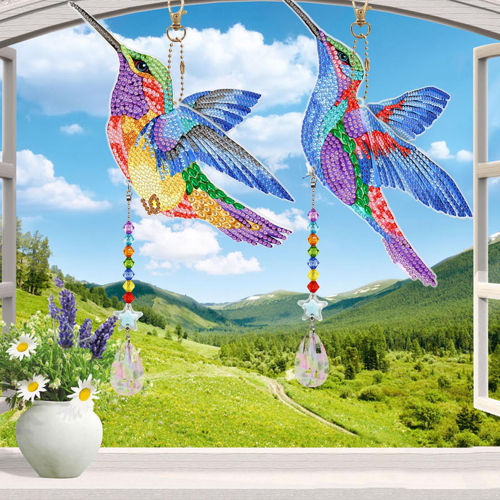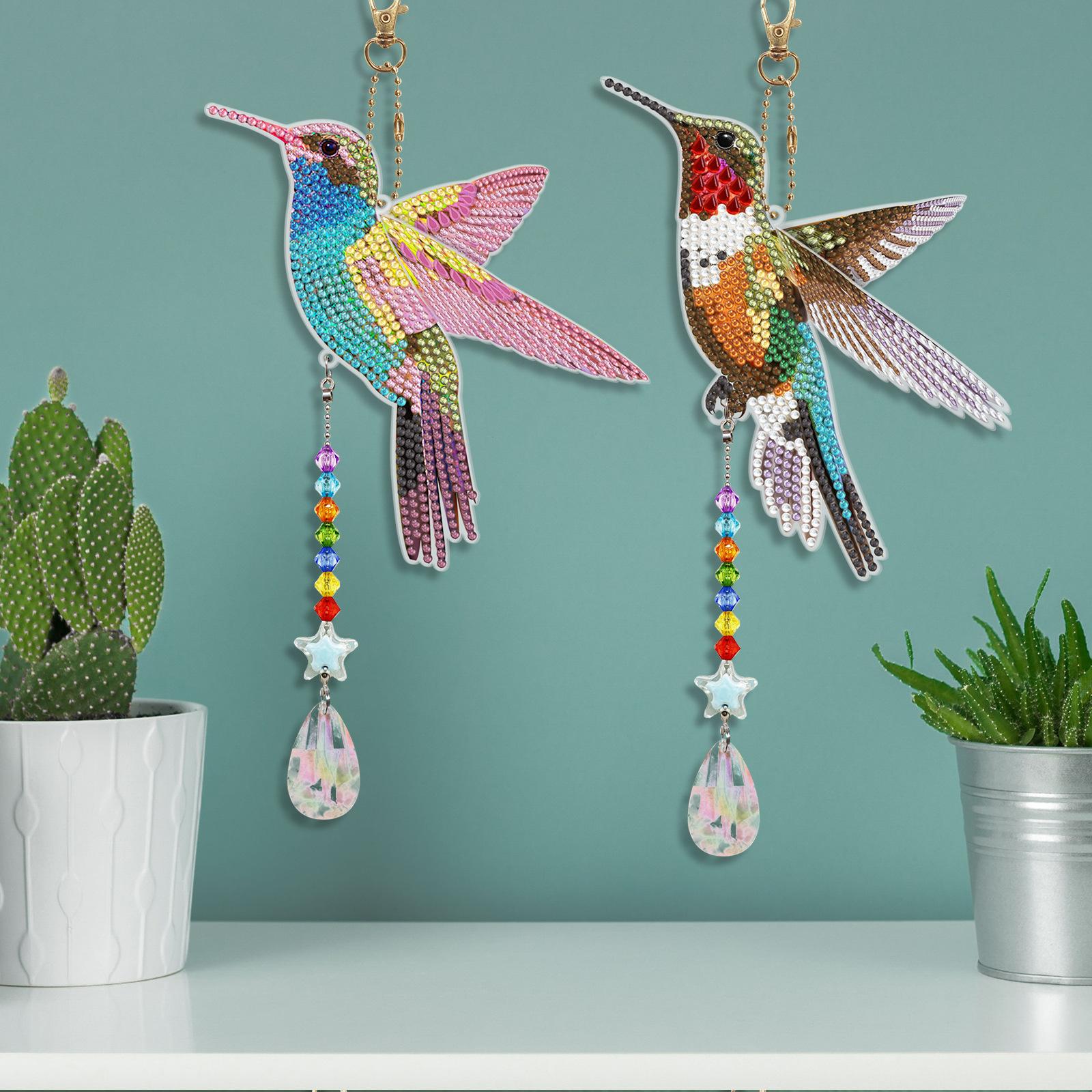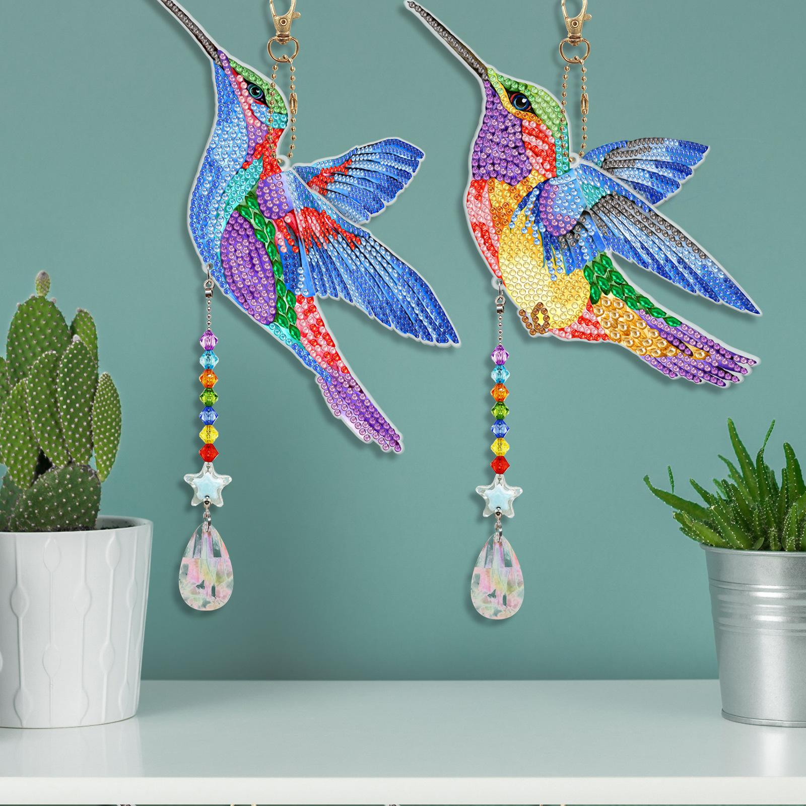 Pintura de diamantes DIY colibrí estilo animal punto diamante colgante de doble cara llavero campana de viento pintura de diamantes al por mayor