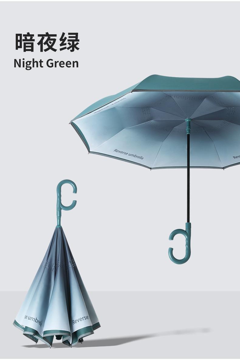 Gradient dark night green-color matching automatic reverse umbrella opening