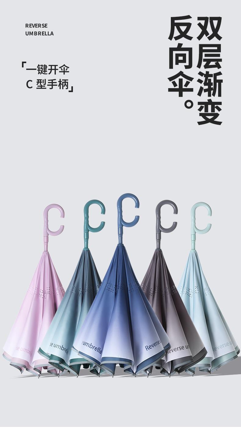 Gradient haze blue-color matching automatic reverse umbrella opening, Gradient Taro Purple-Color Matching Auto...