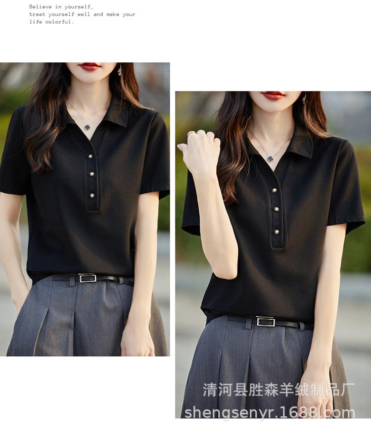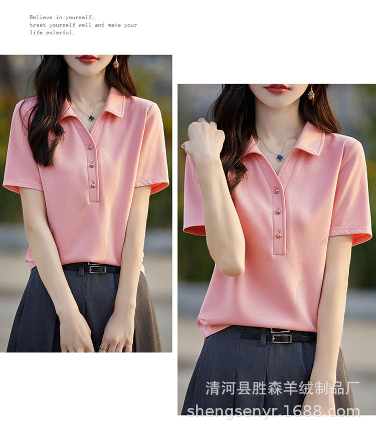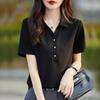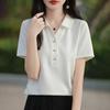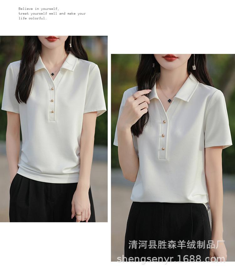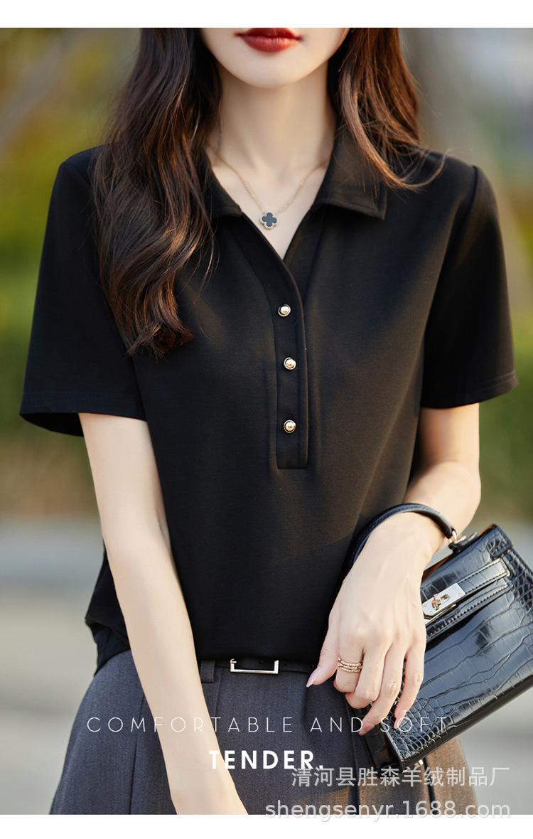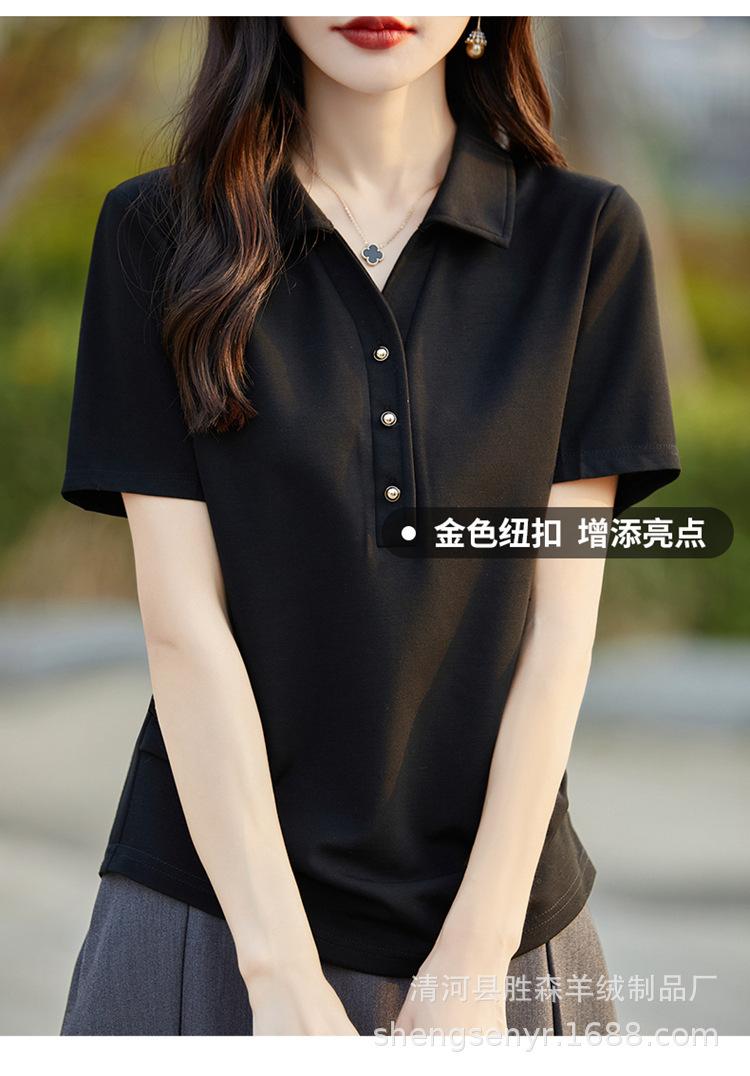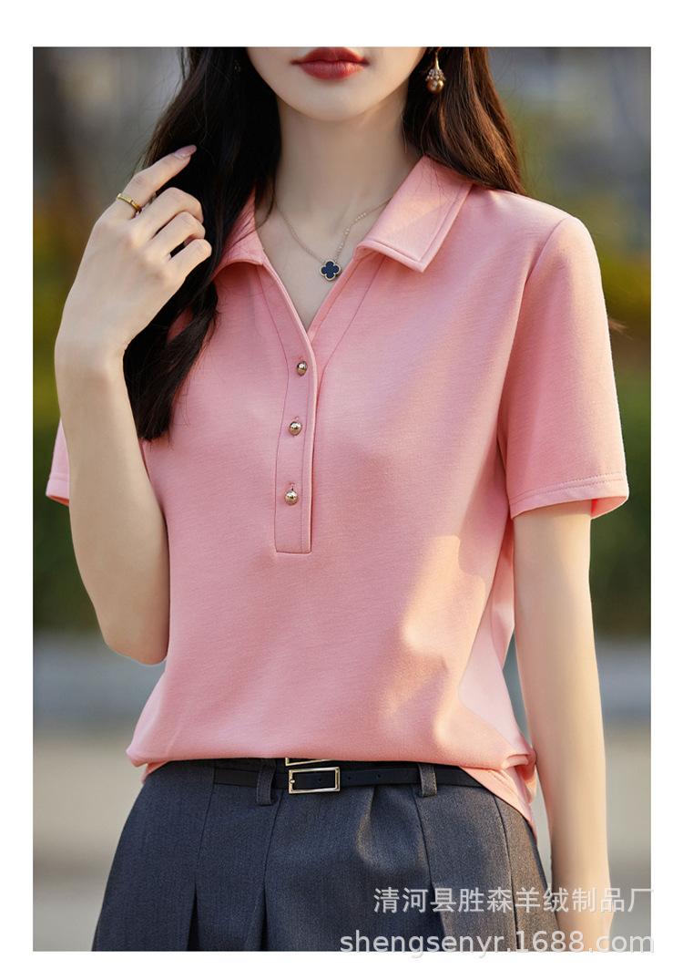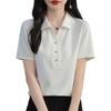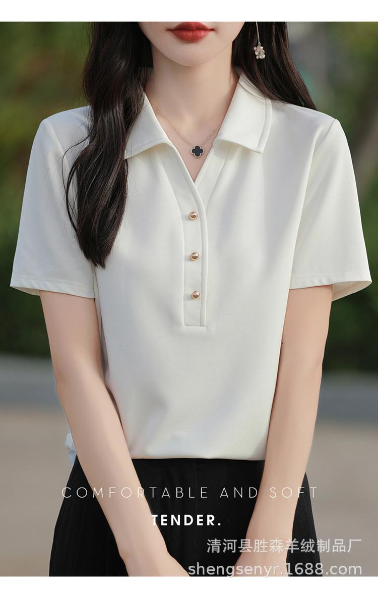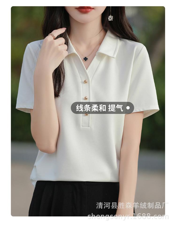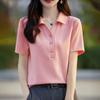 Camisa holgada de manga corta con cuello tipo polo, modal, de verano, para mujer, de color liso, combinable con todo, elegante, 24 años