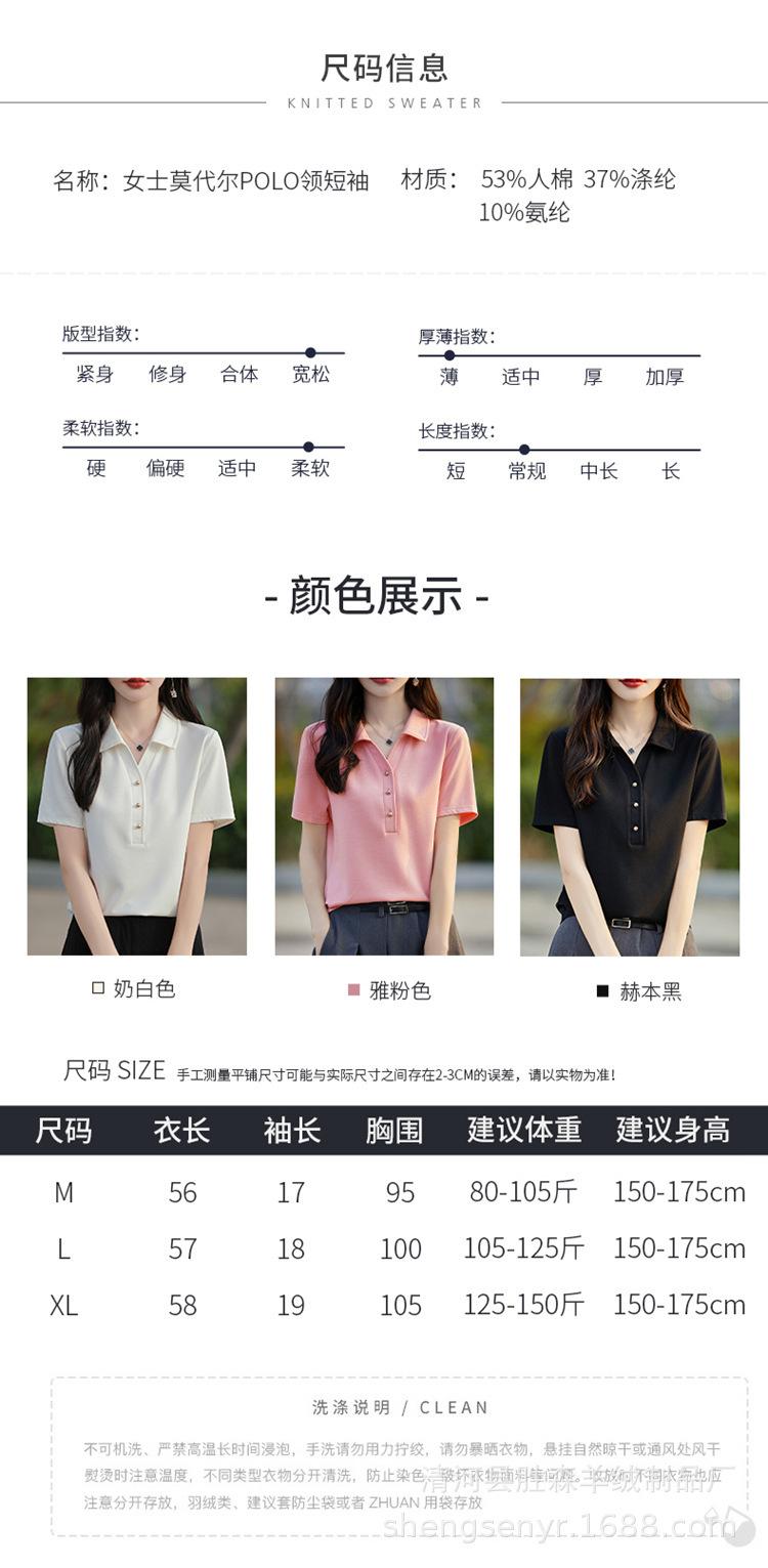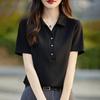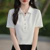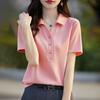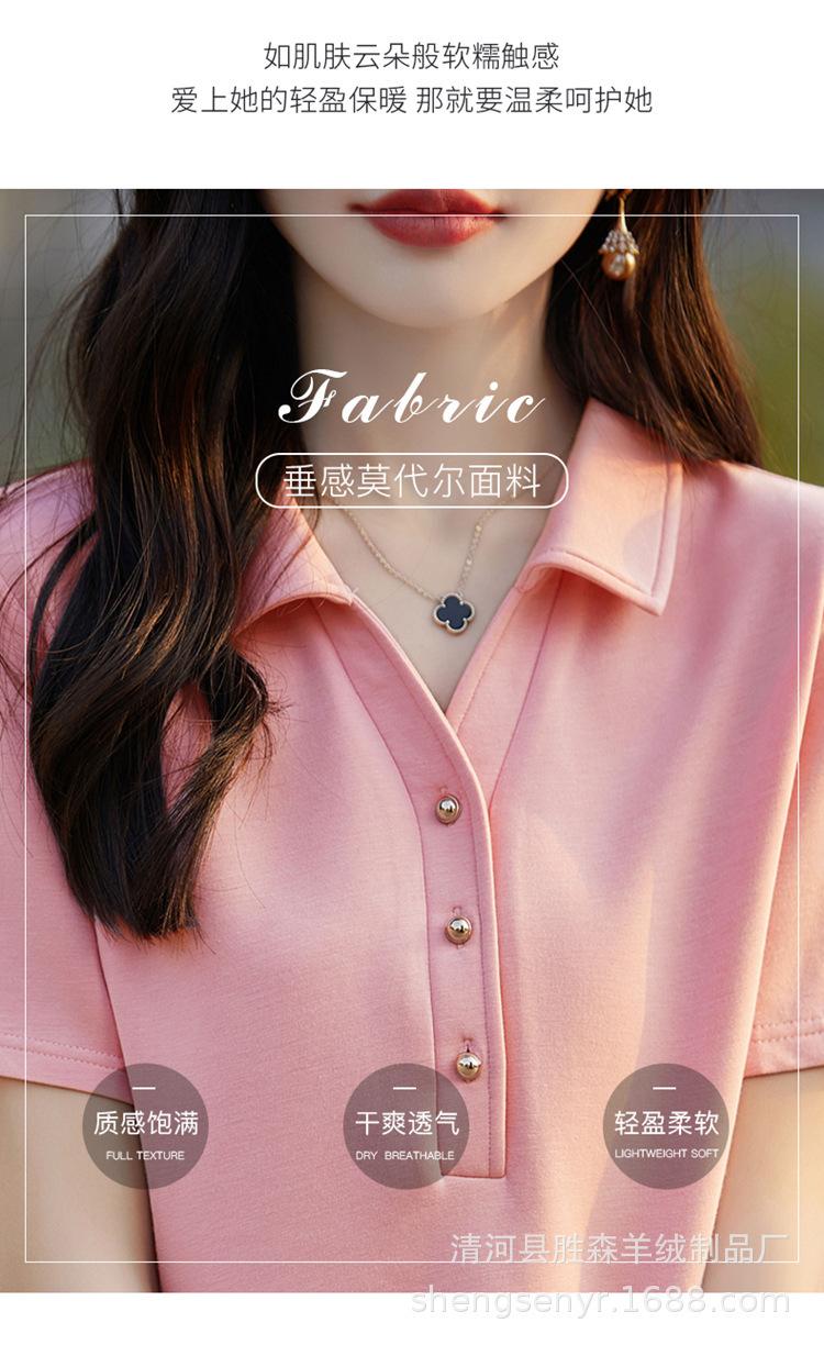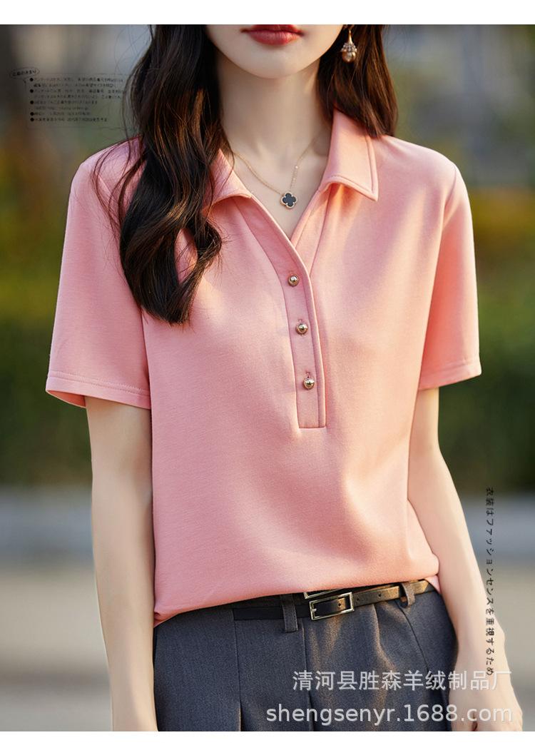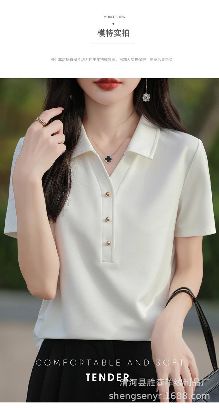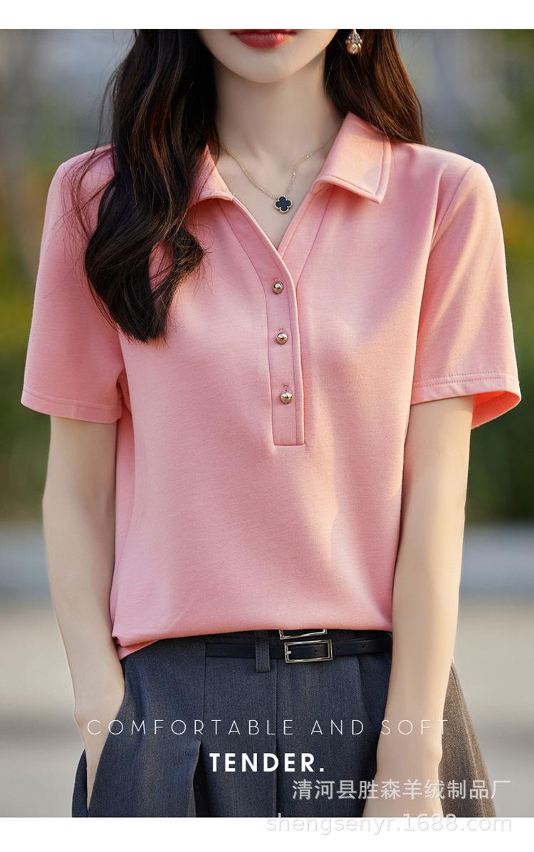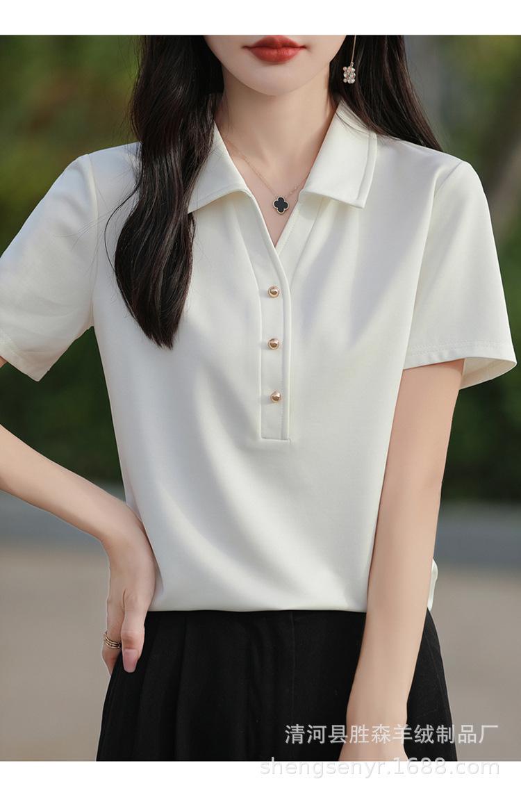 Camisa holgada de manga corta con cuello tipo polo, modal, de verano, para mujer, de color liso, combinable con todo, elegante, 24 años