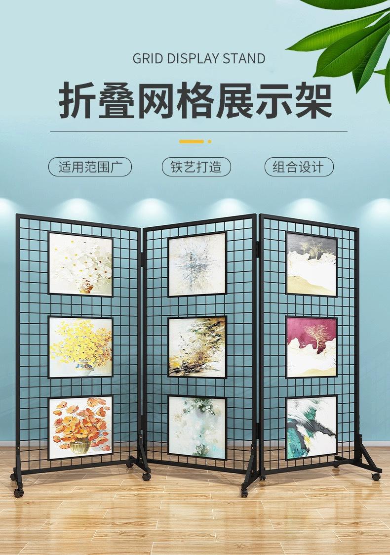 Estante de exhibición de rejilla plegable Estante de exhibición de trabajos de jardín de infantes Estante de exhibición de estudio de exhibición de arte Estante de exhibición de arte móvil para exteriores