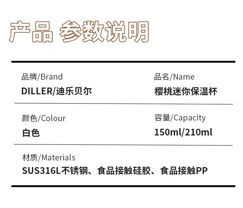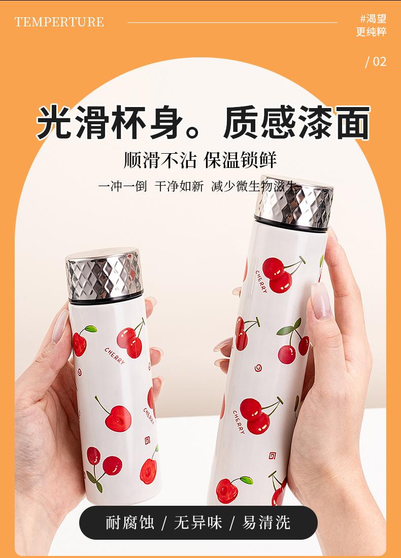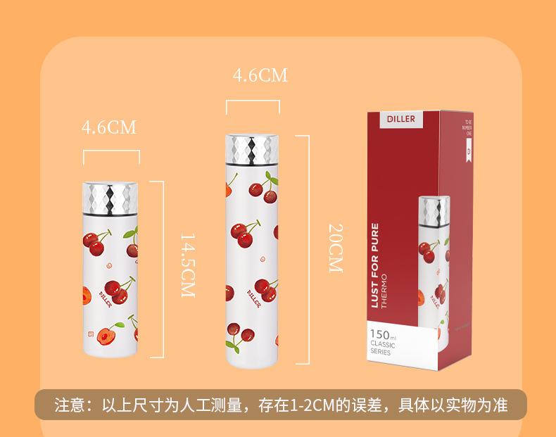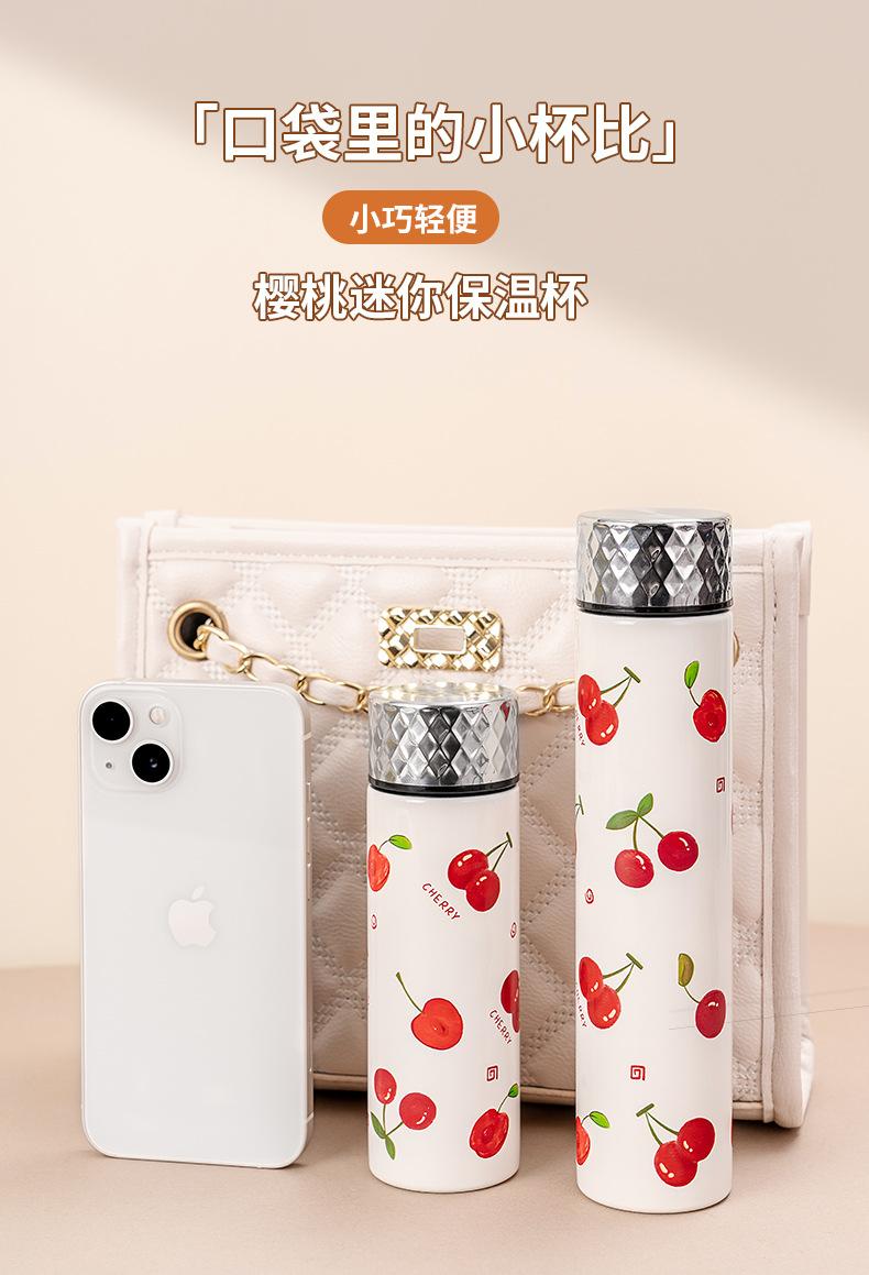 Termo portátil Cherry Mini Long Thermos de acero inoxidable 316, color rojo viento, pequeño, sellado a prueba de fugas