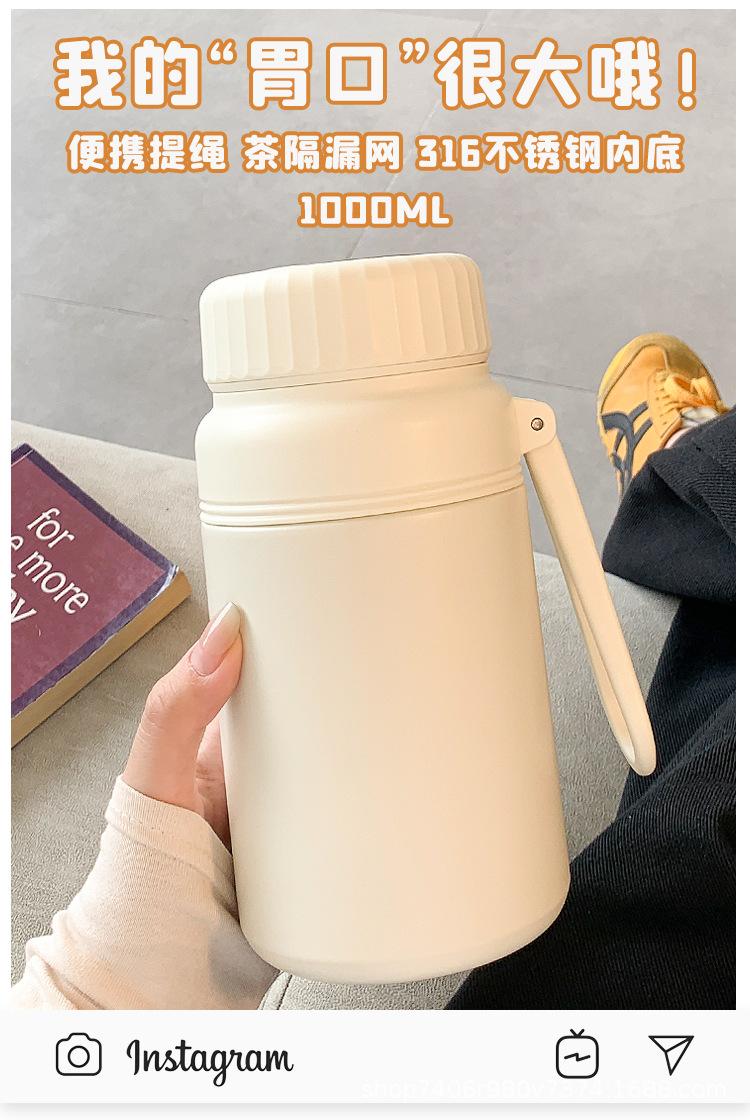 Termo simple, taza de agua de gran capacidad para mujer, color alto, con compartimento para té, taza portátil de acero inoxidable 316 para estudiantes, personalización