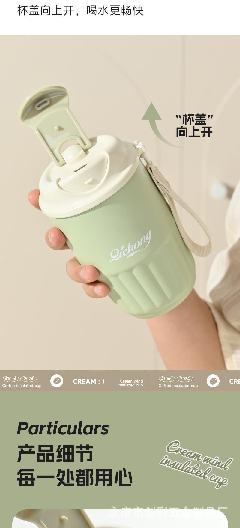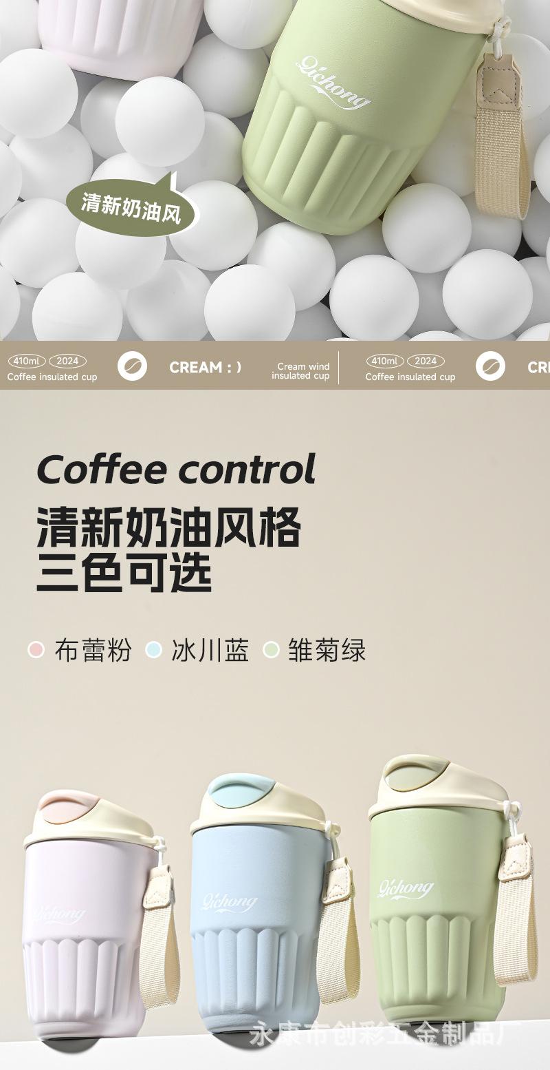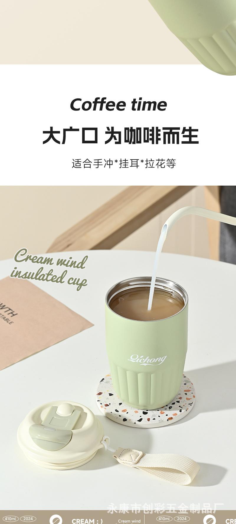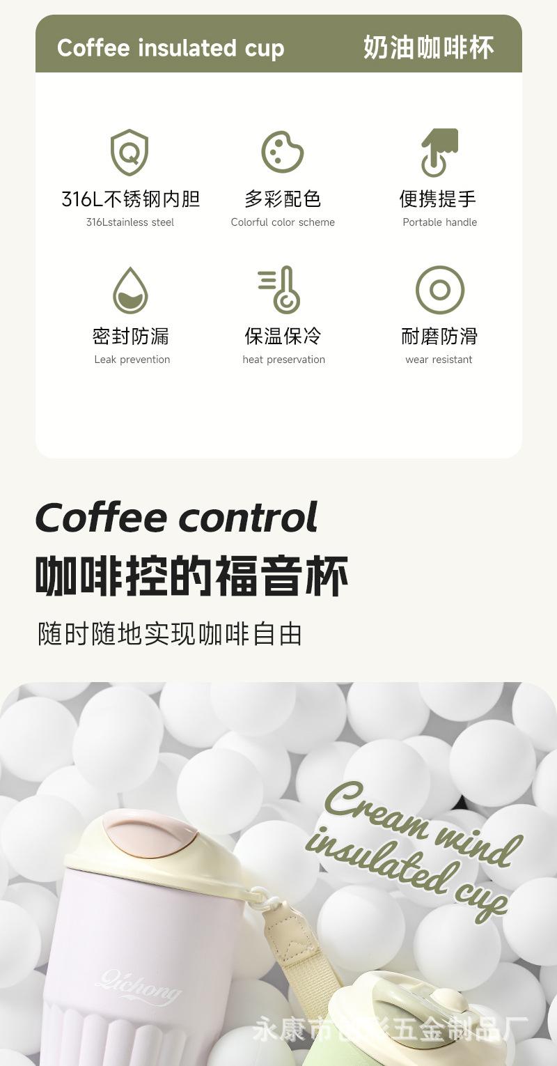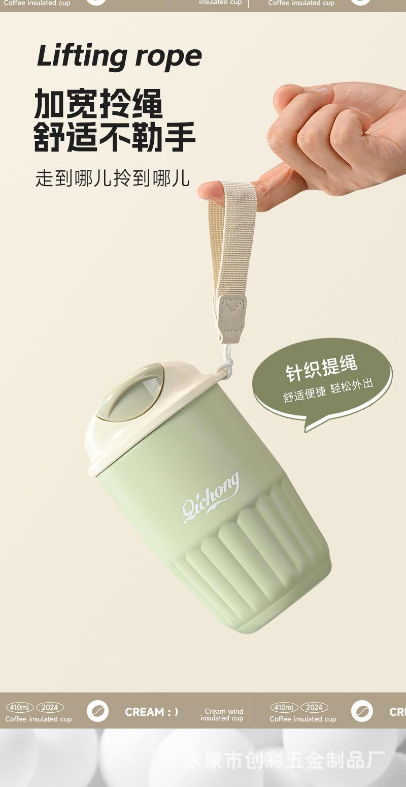 Nueva taza de café de acero inoxidable 316 de color crema, mini termo de moda, taza portátil de acompañamiento para niños y niñas.